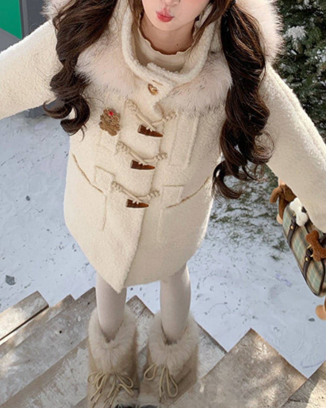 フード付き&トグルボタンのディテールが冬の可愛さを引き立ててくれる