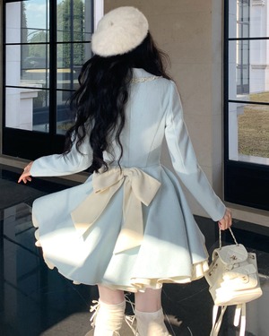 バックリボンブルーフリルフレアコート 25W08339