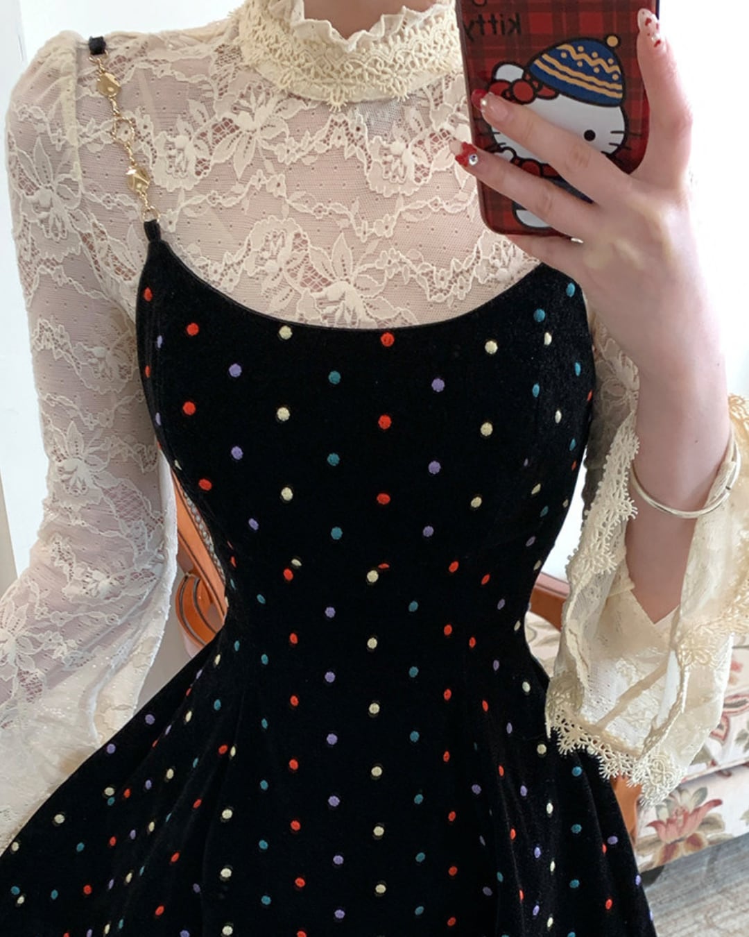 カラフルなドットがちりばめられた、フレンチガーリーなワンピース♡