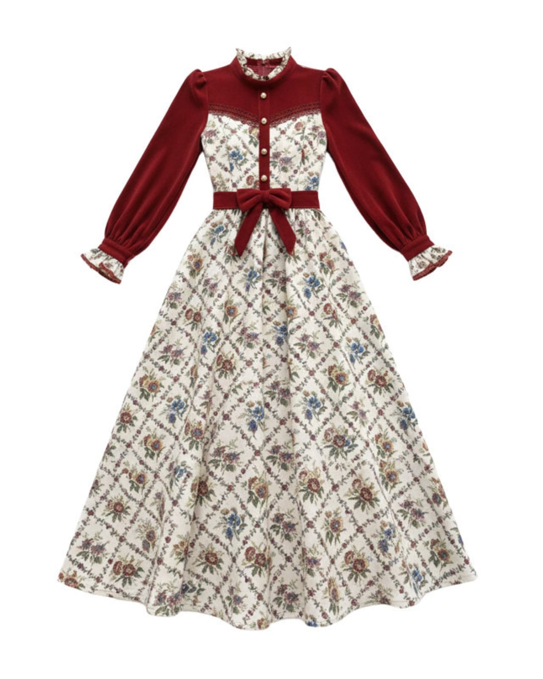 ヴィンテージレッドフレンチフラワーワンピース 25W08350