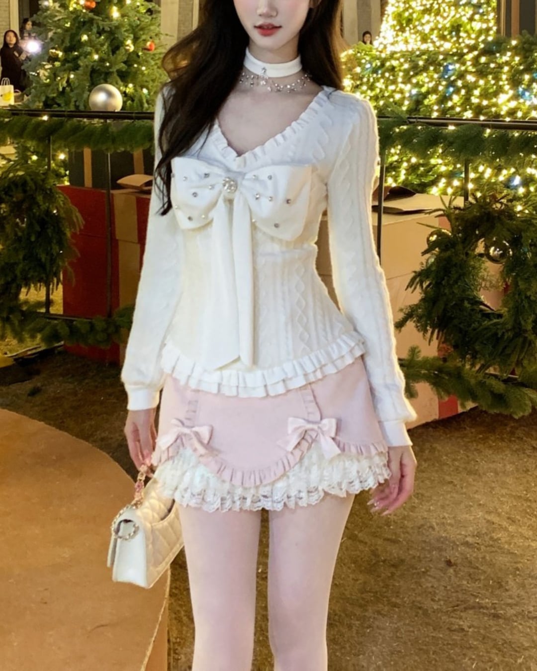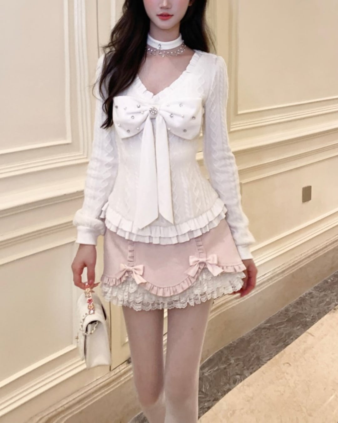立体感のあるビッグリボンとビジューが主役のニットトップス♡
