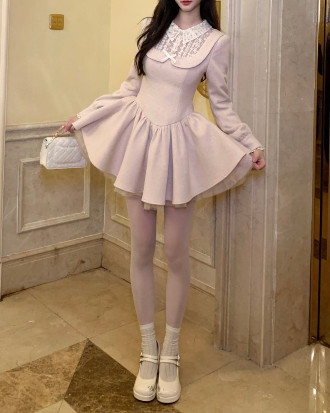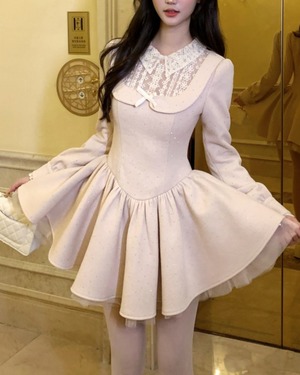 レース襟とピンクカラーがとびきり甘いドーリーなワンピース♡