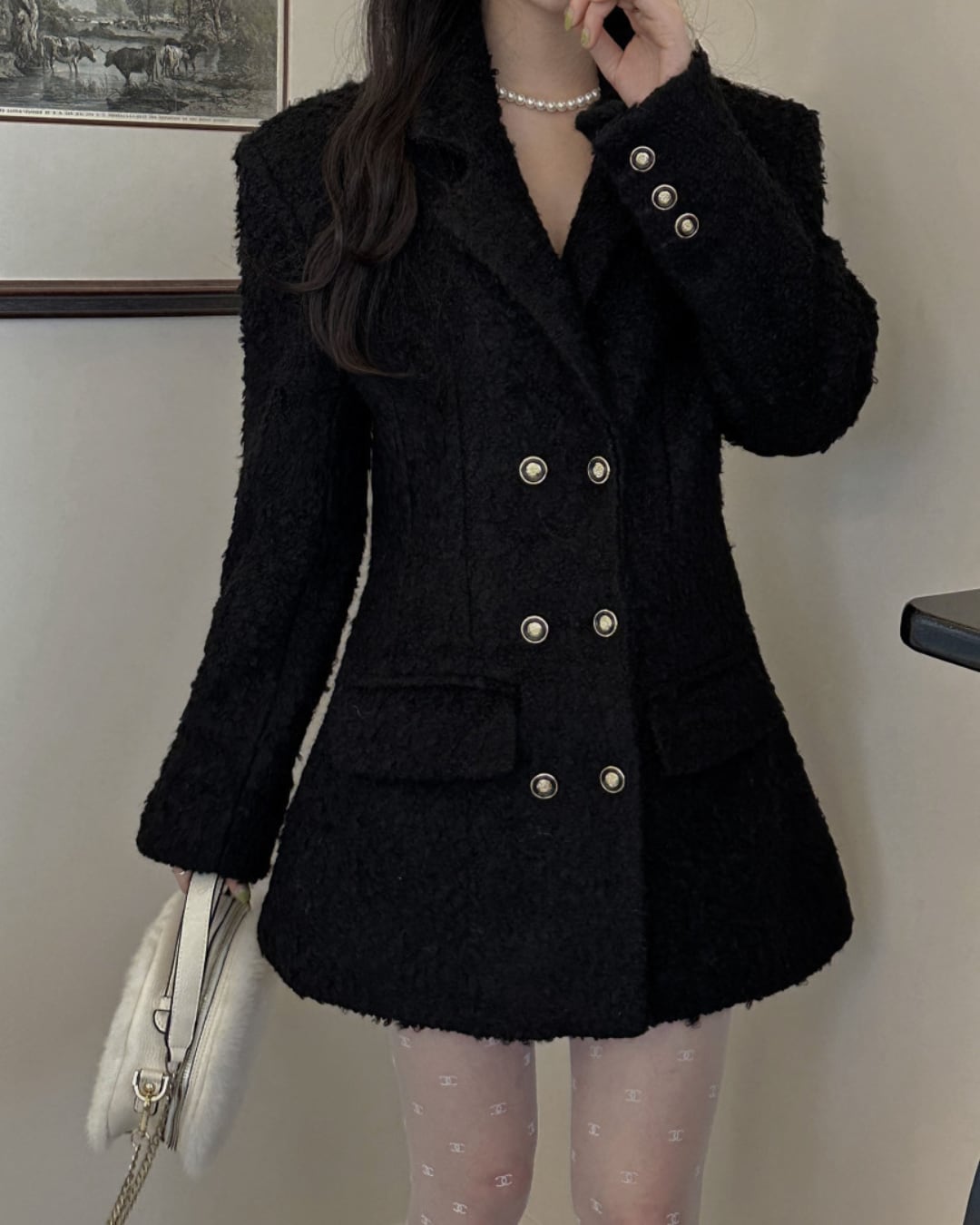 ダブルボタンとウエストシェイプデザインがポイントなジャケットコート⑅⃛