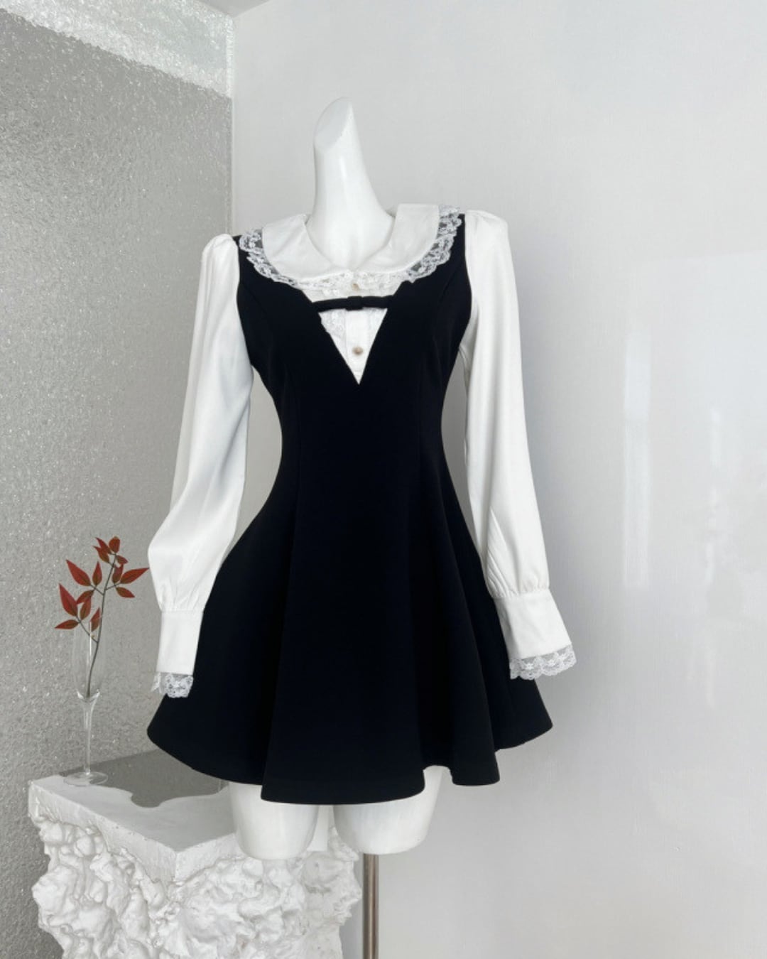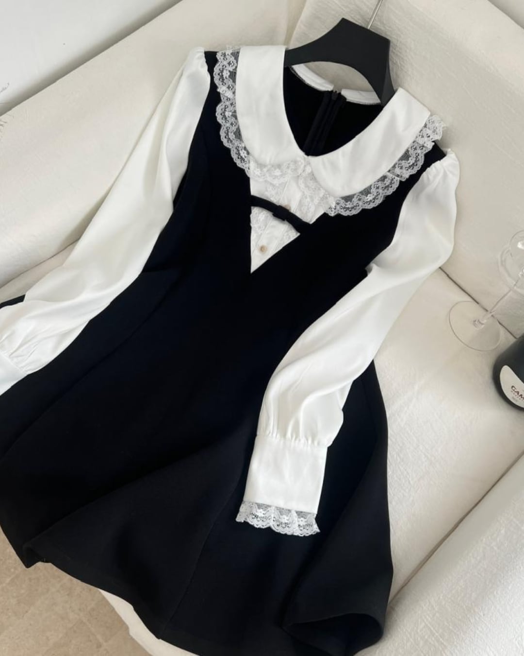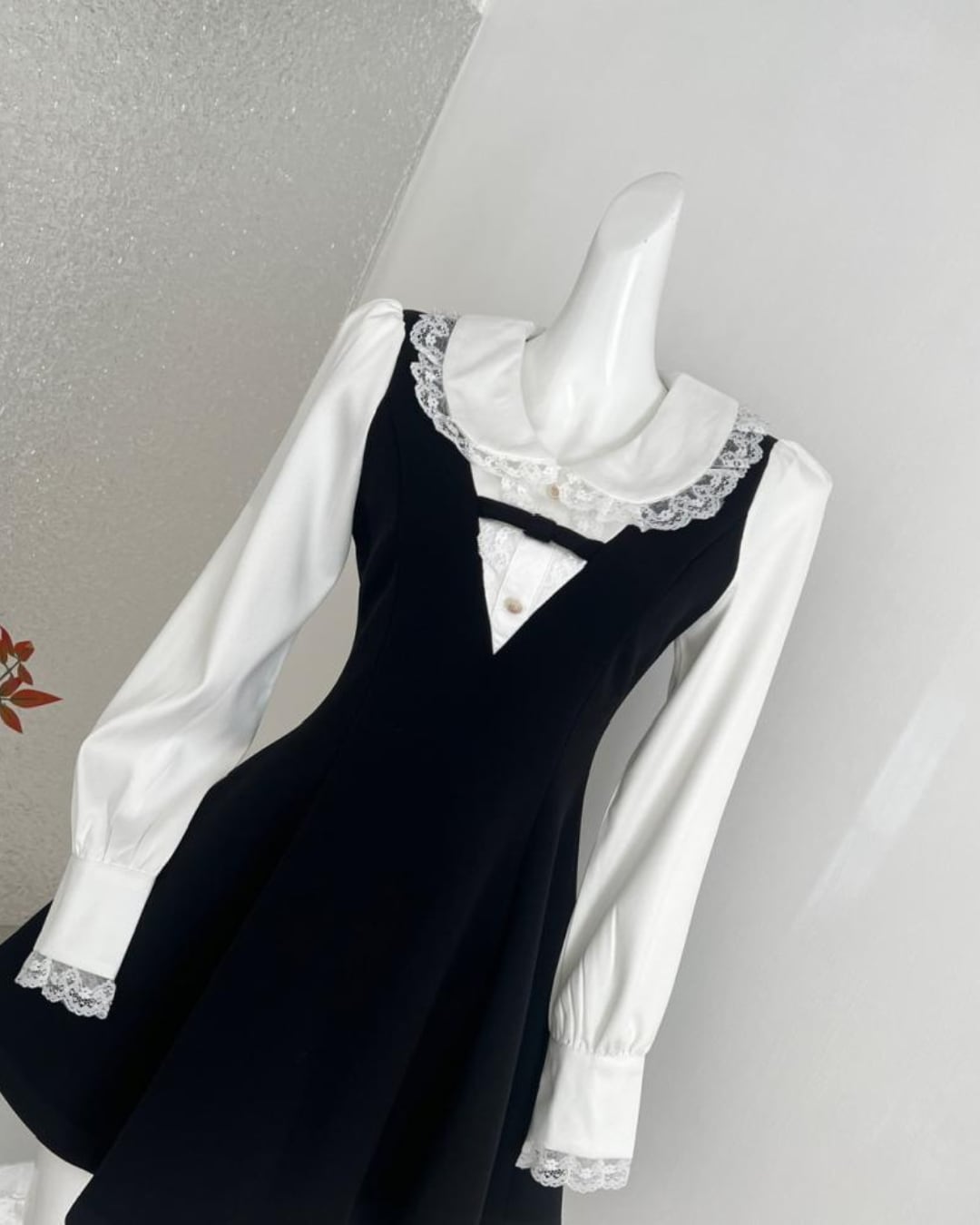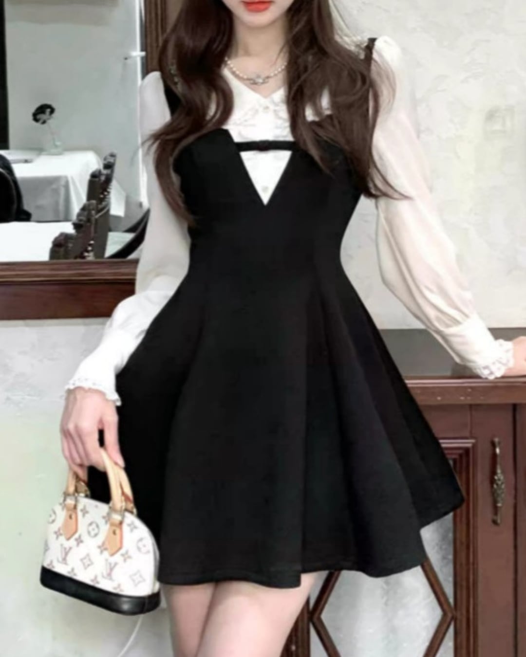 Vネックラインブラックドールワンピース 25W08360