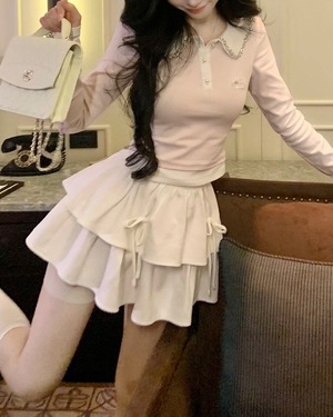 ダブルリボンがポイントのガーリーフリルスカート♡