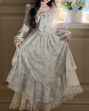 ふんわりとした花柄シフォンが優雅に揺れる、幻想的なワンピース♡