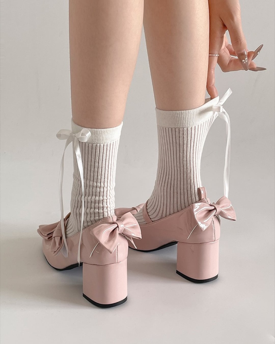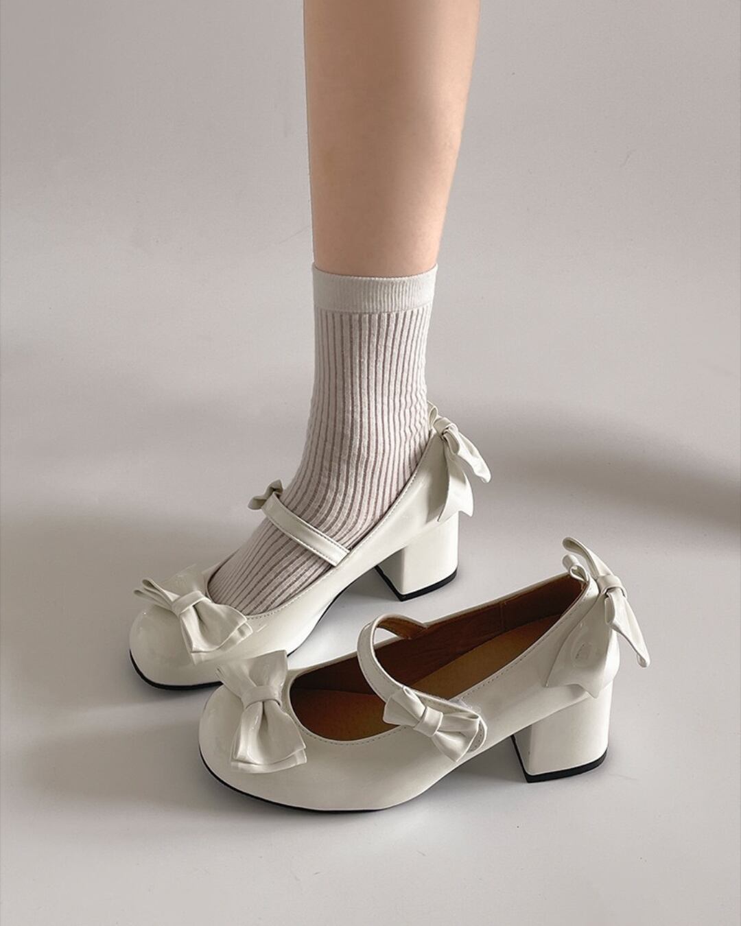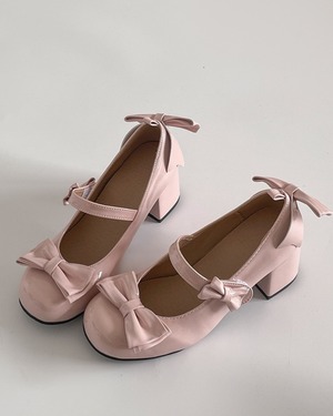 トリプルベビーリボンエナメルパンプス(2 colors) 25W08398