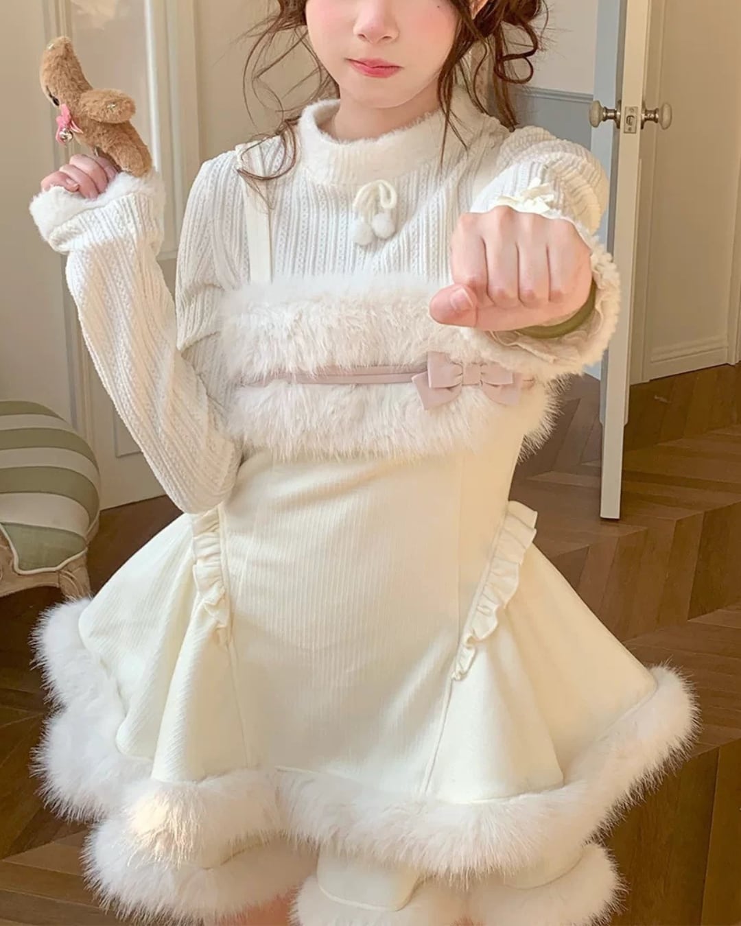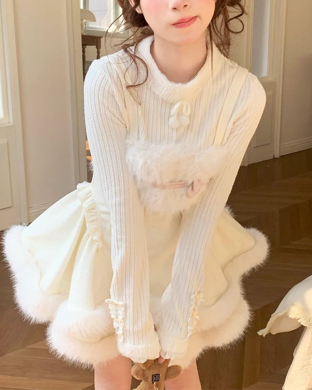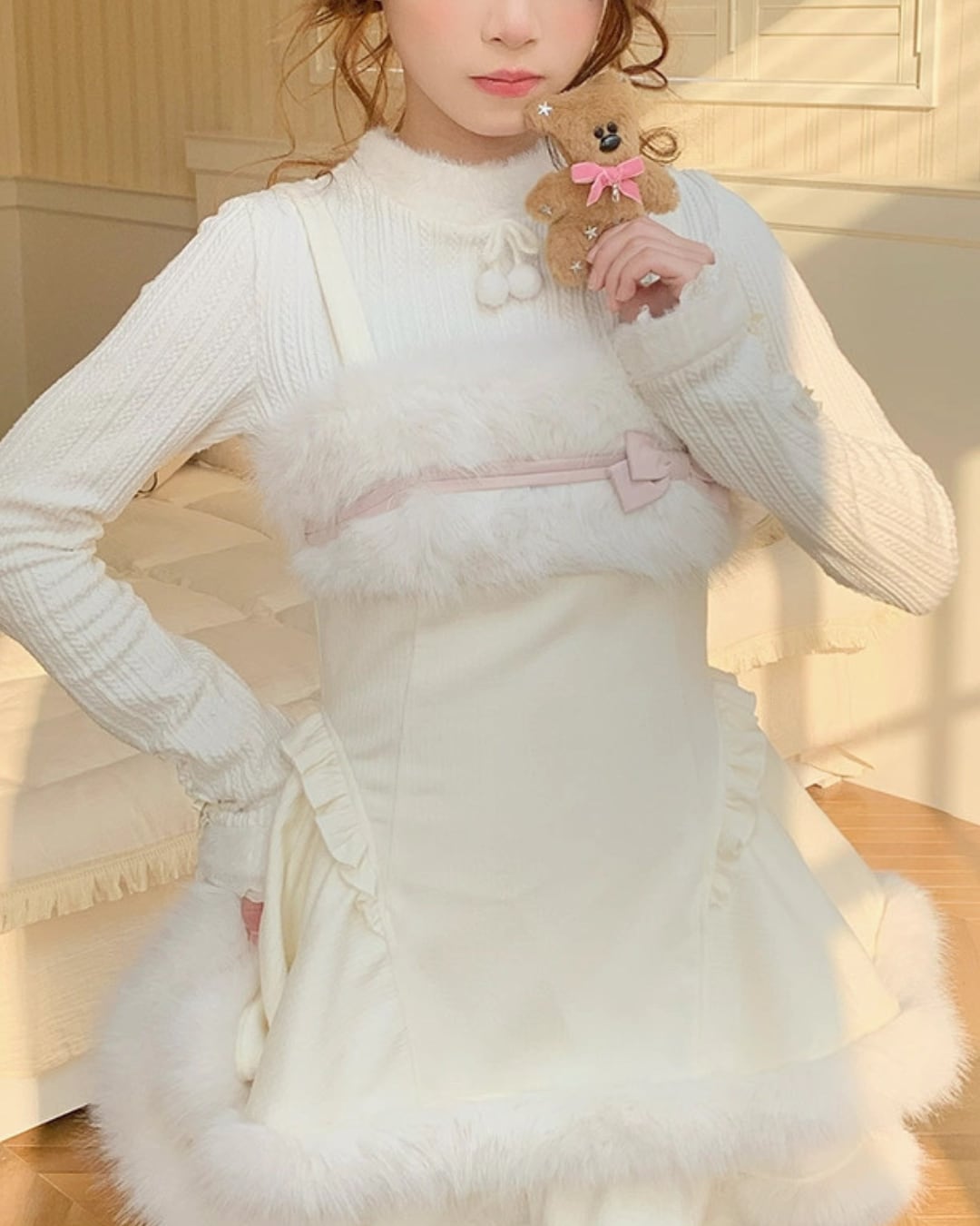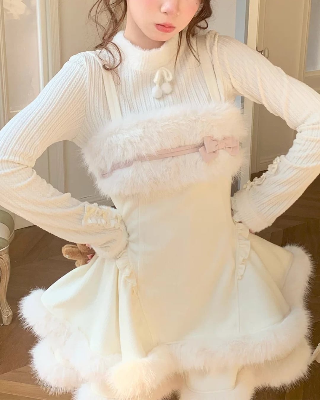 首元と袖口にあしらったやわらかなファーが、やさしく華やかな印象に⑅⃛