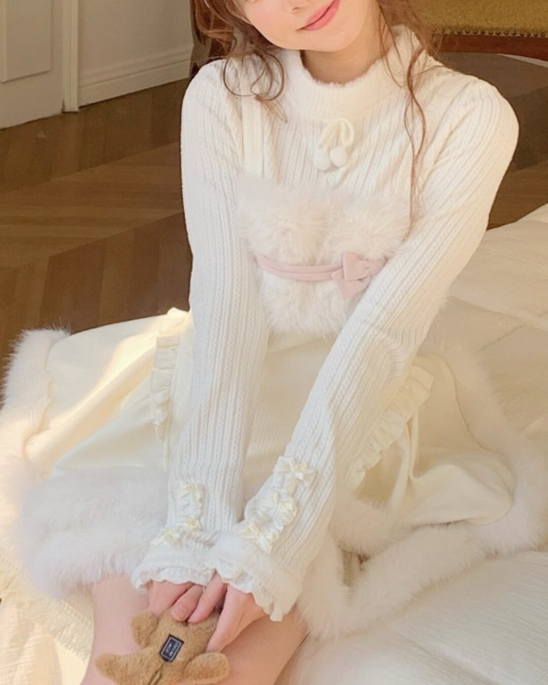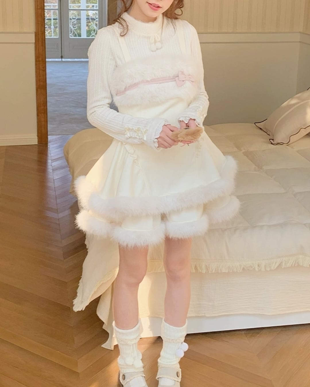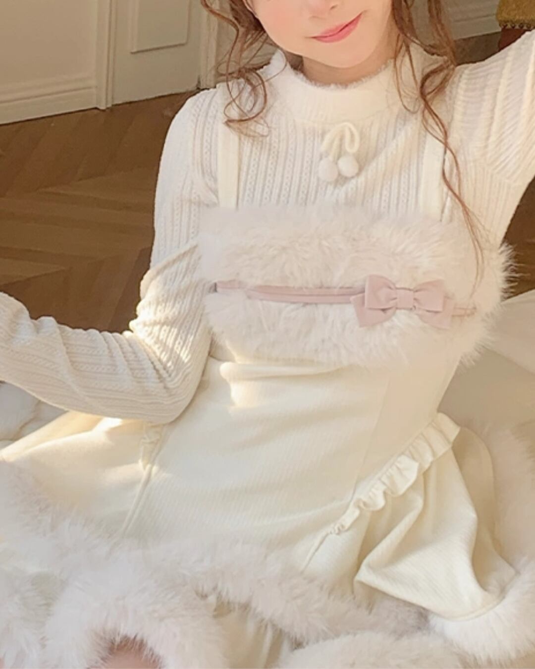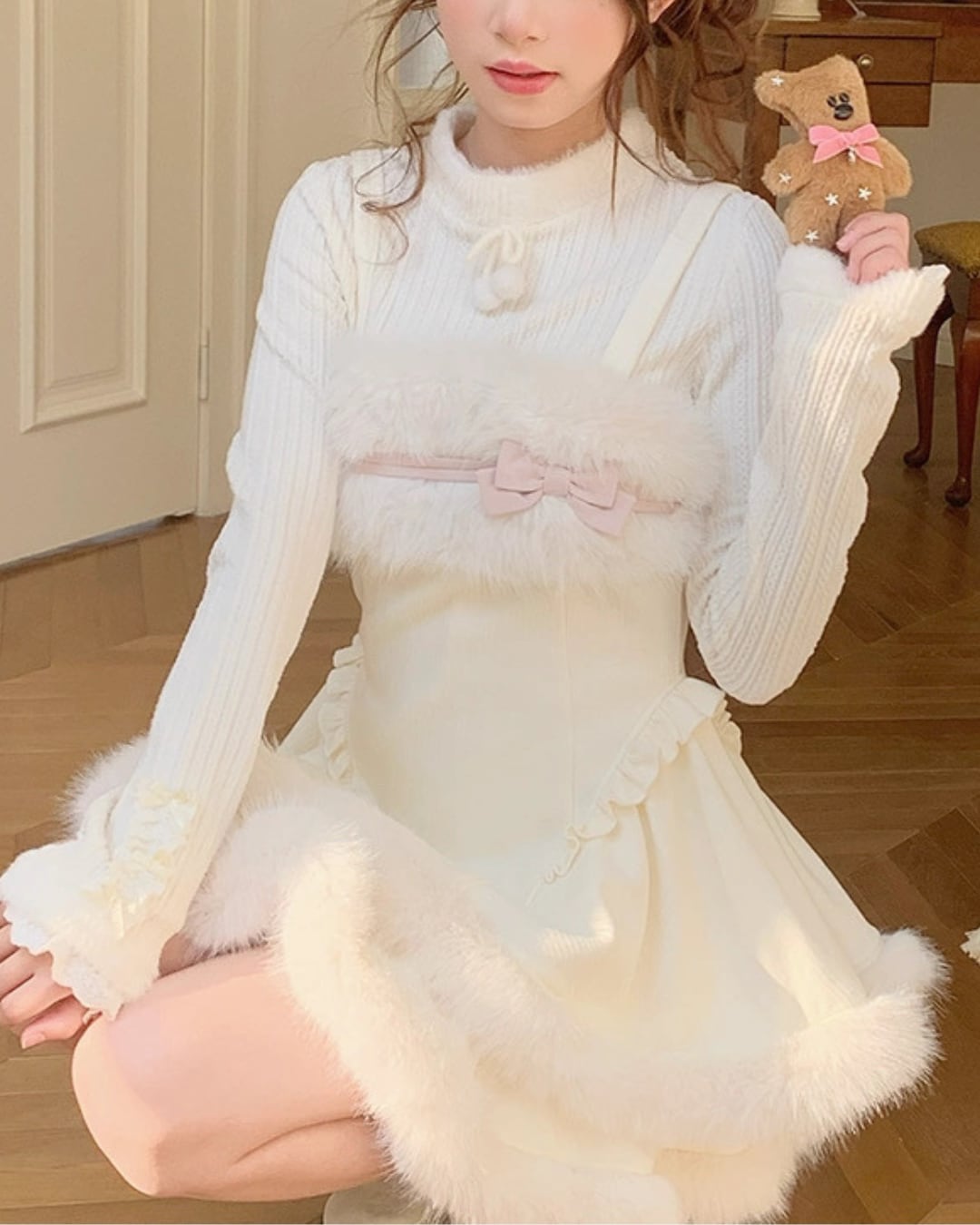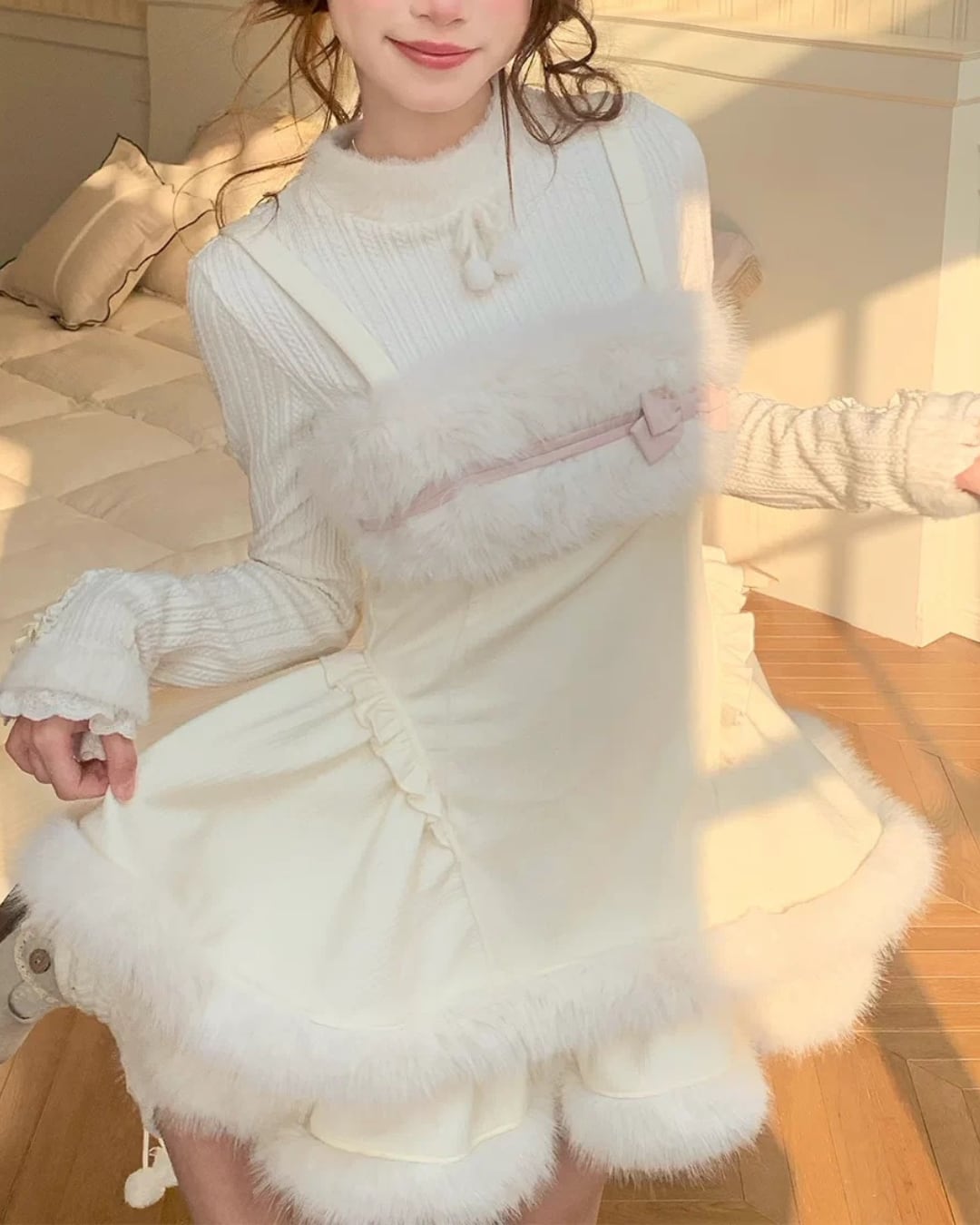 首元と袖口にあしらったやわらかなファーが、やさしく華やかな印象に⑅⃛