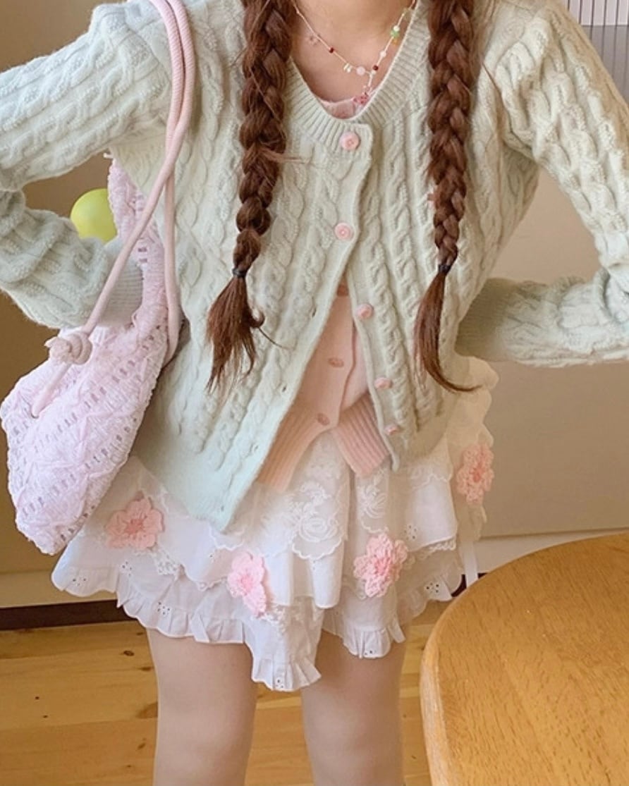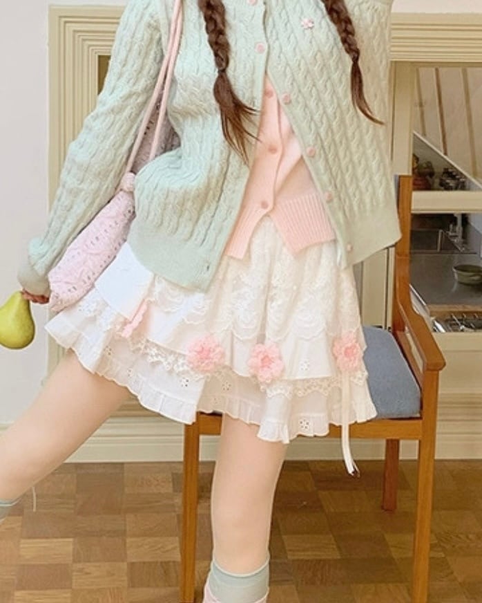 ふんわり重なるレースとフラワーモチーフが愛らしいスカート♡