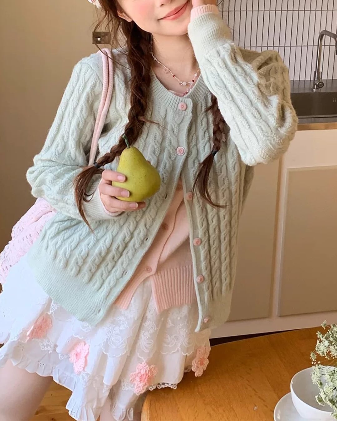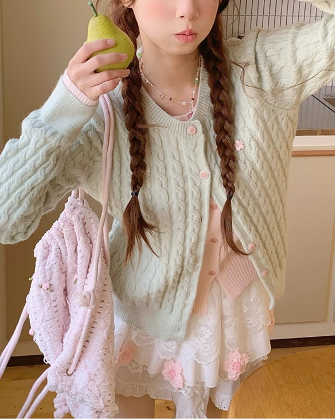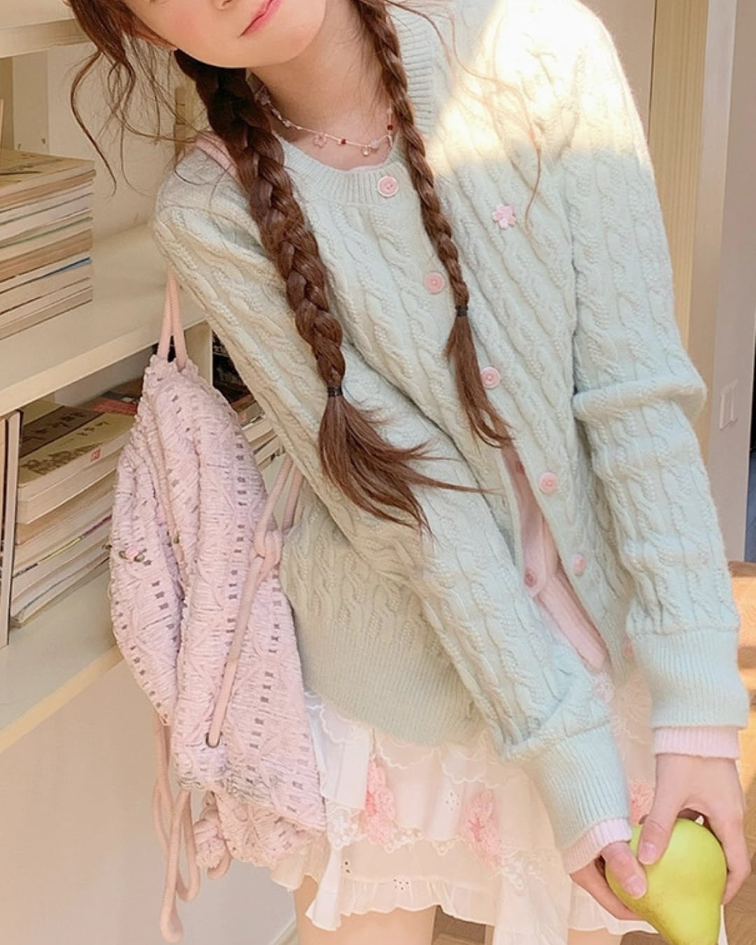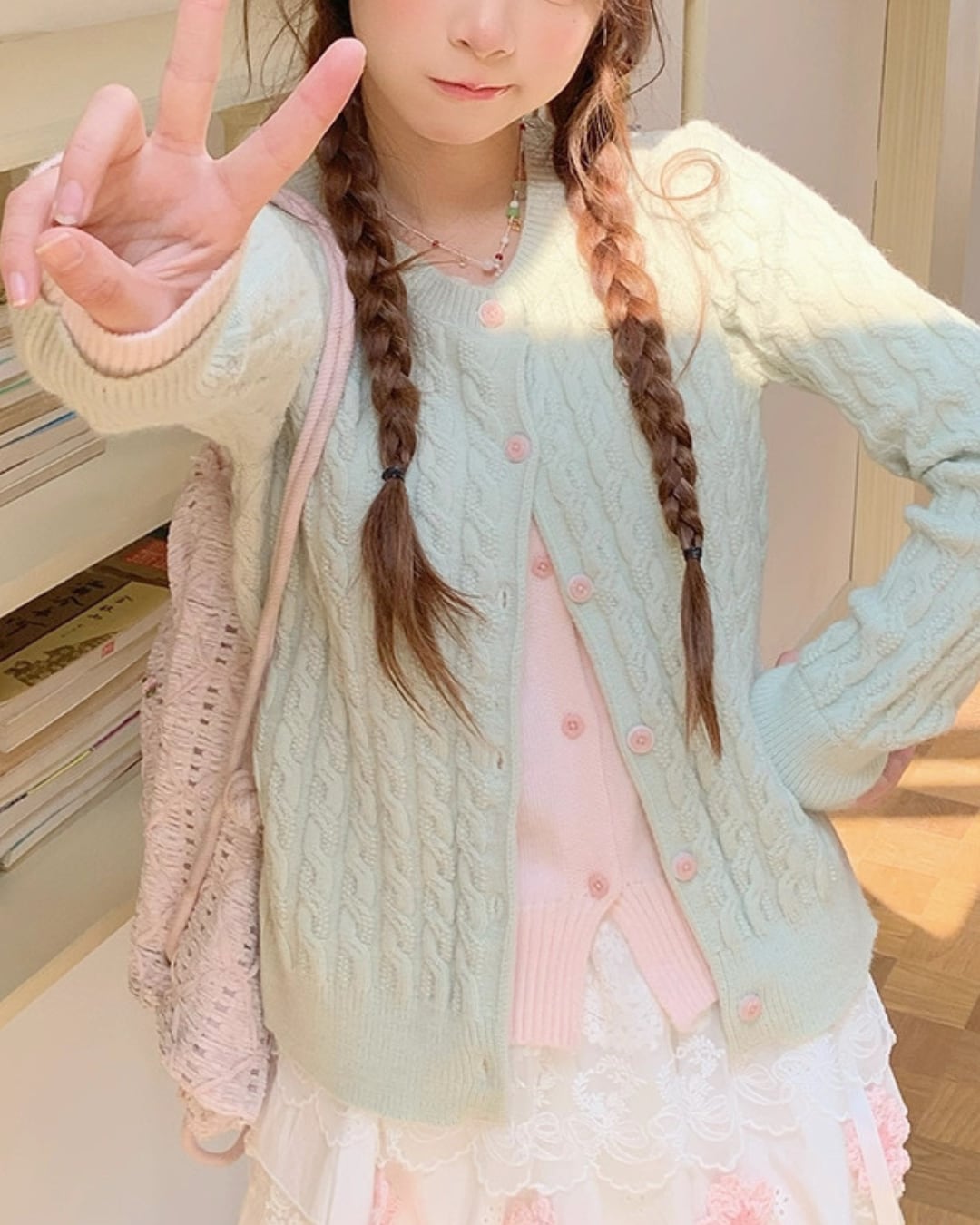 レースにはリボンをあしらった繊細なディテールが施され、さりげない甘さをプラス⑅⃛