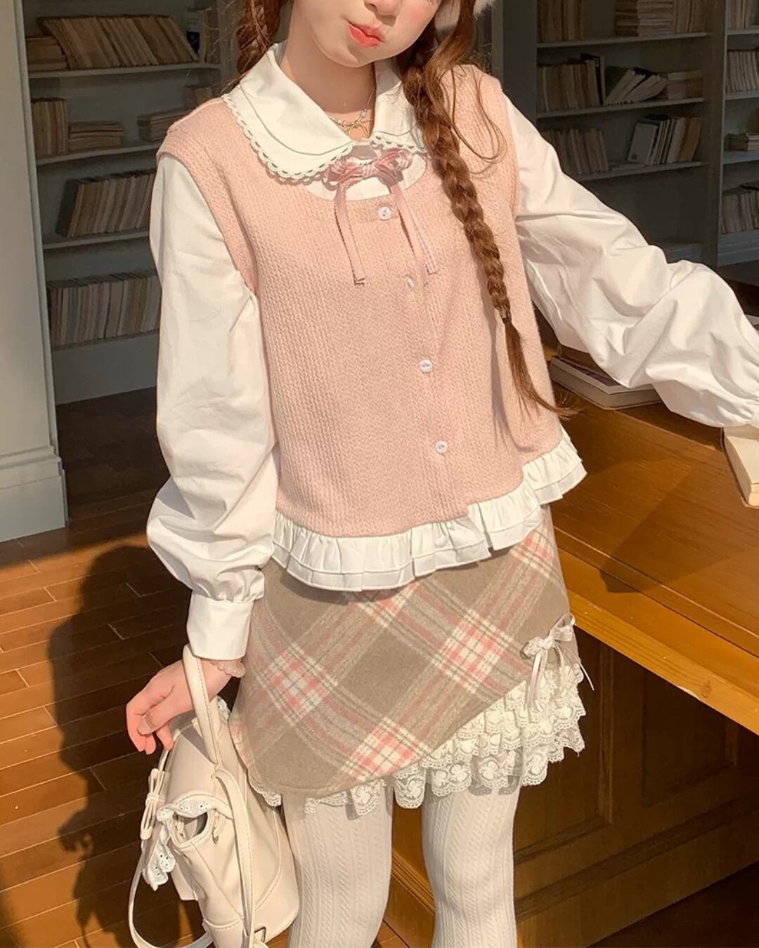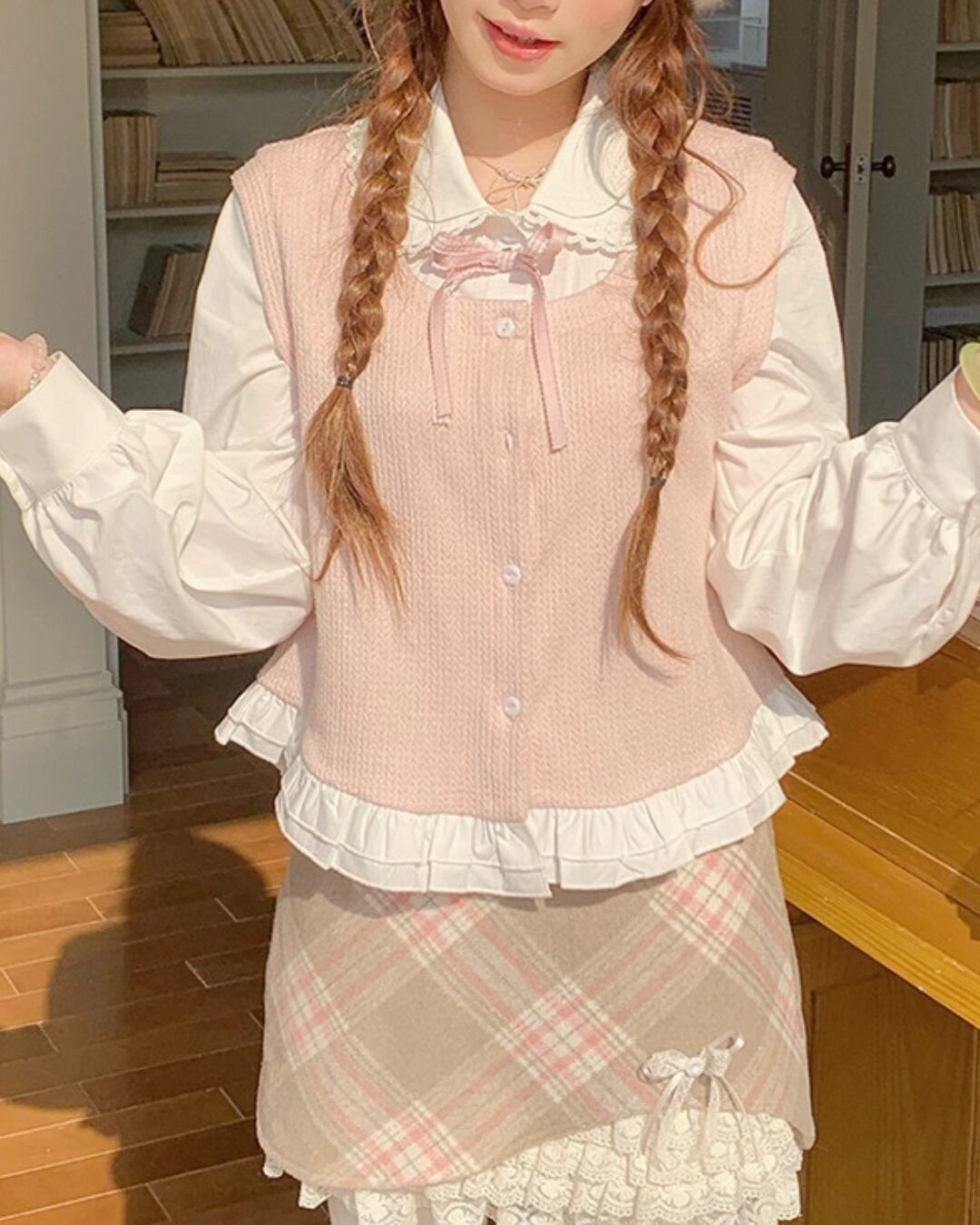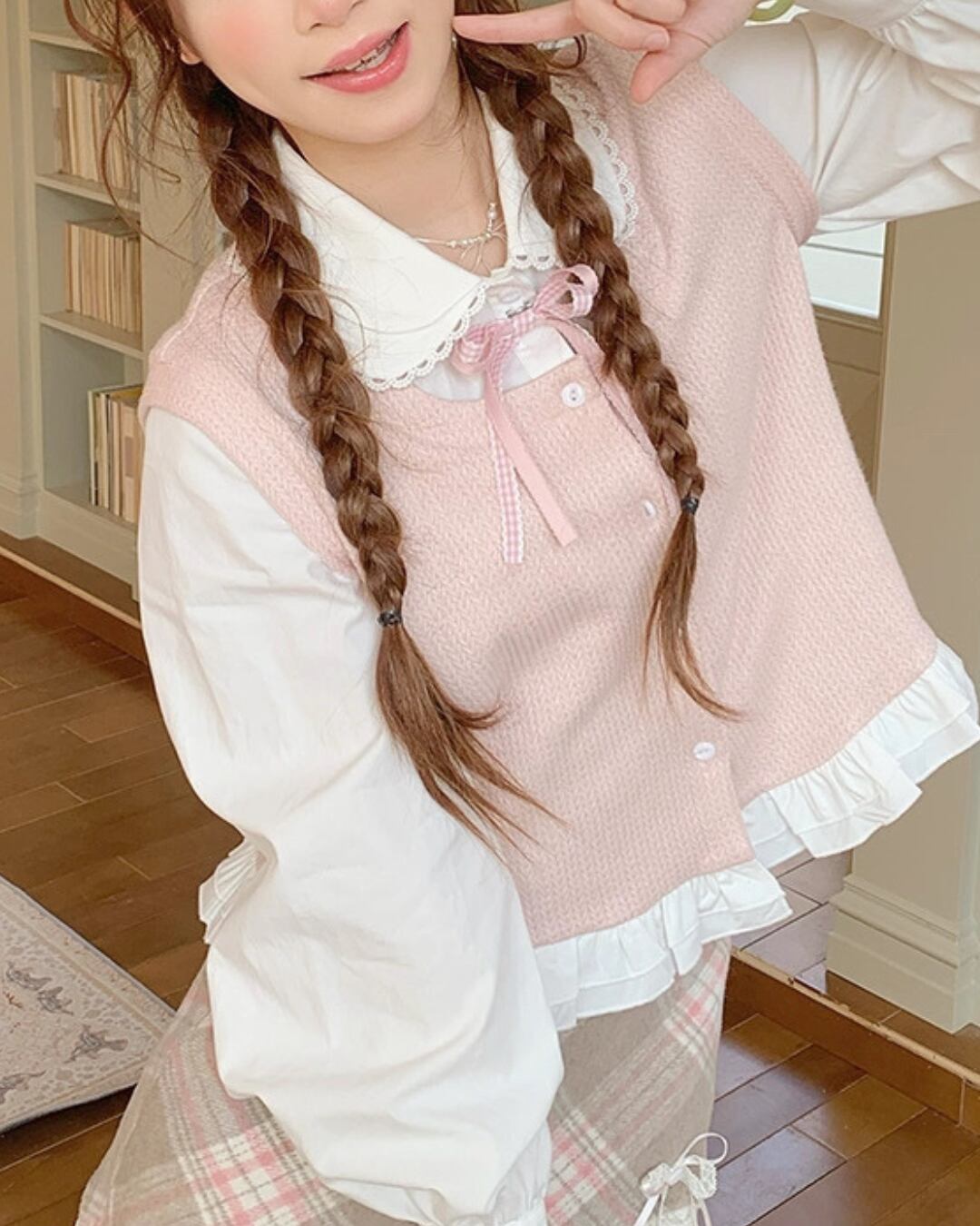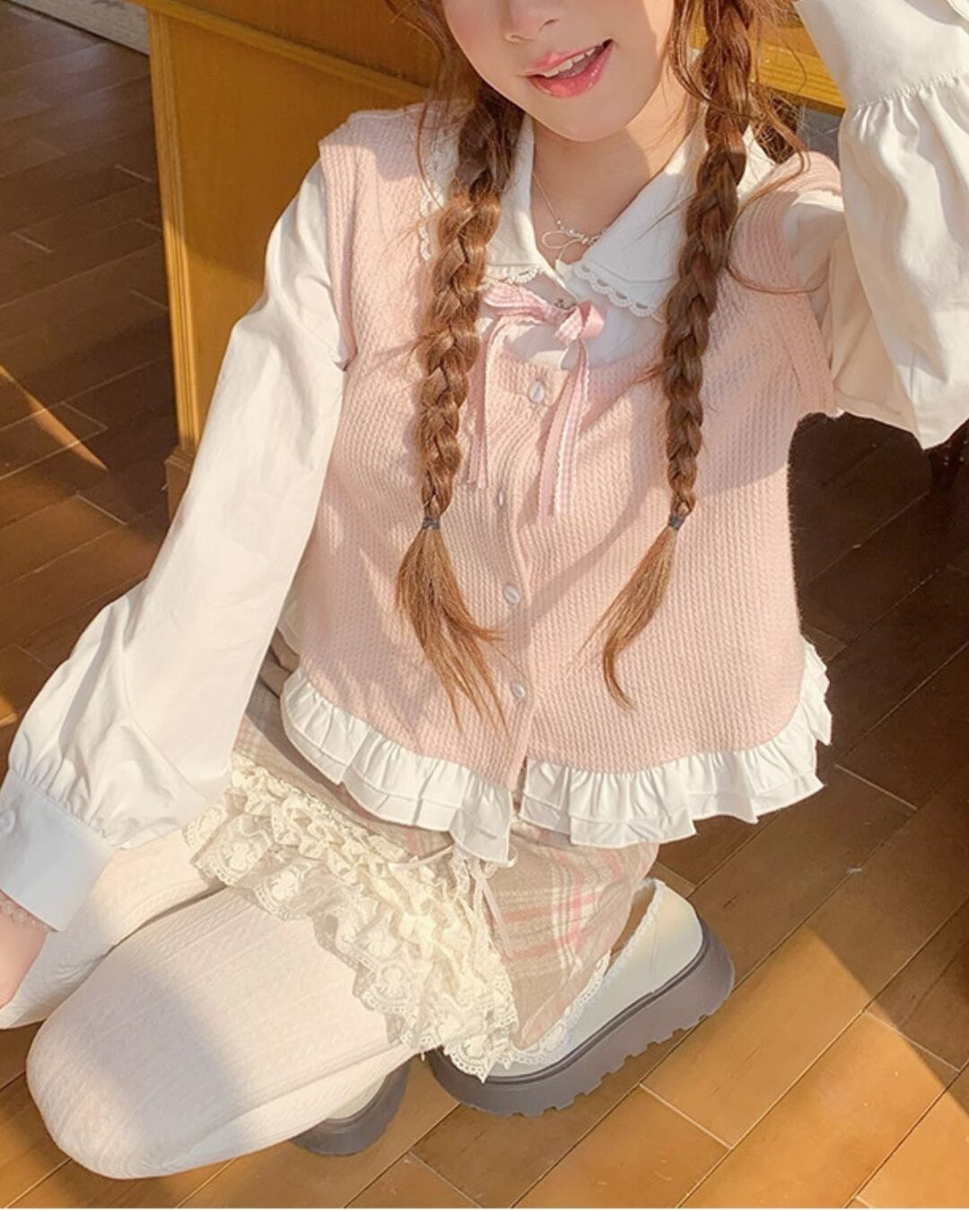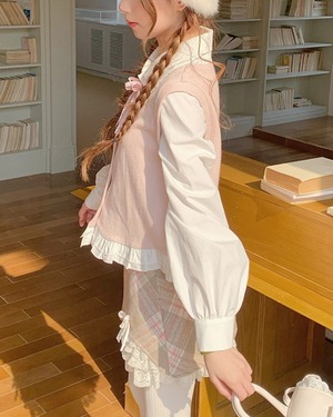 シャツとベストがレイヤードされたようなデザインのトップス♡