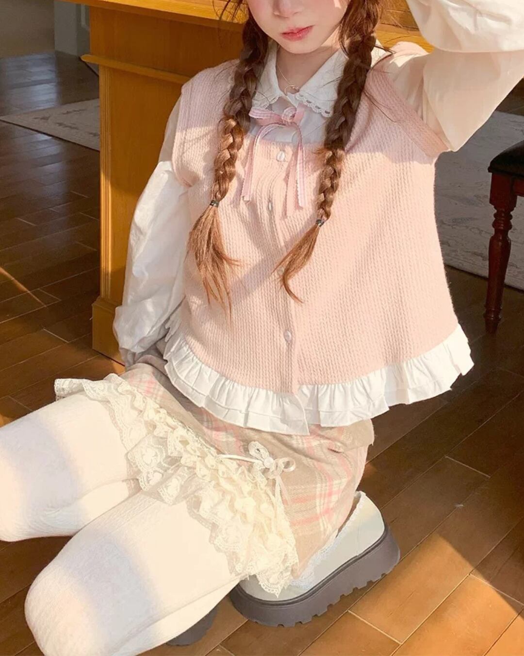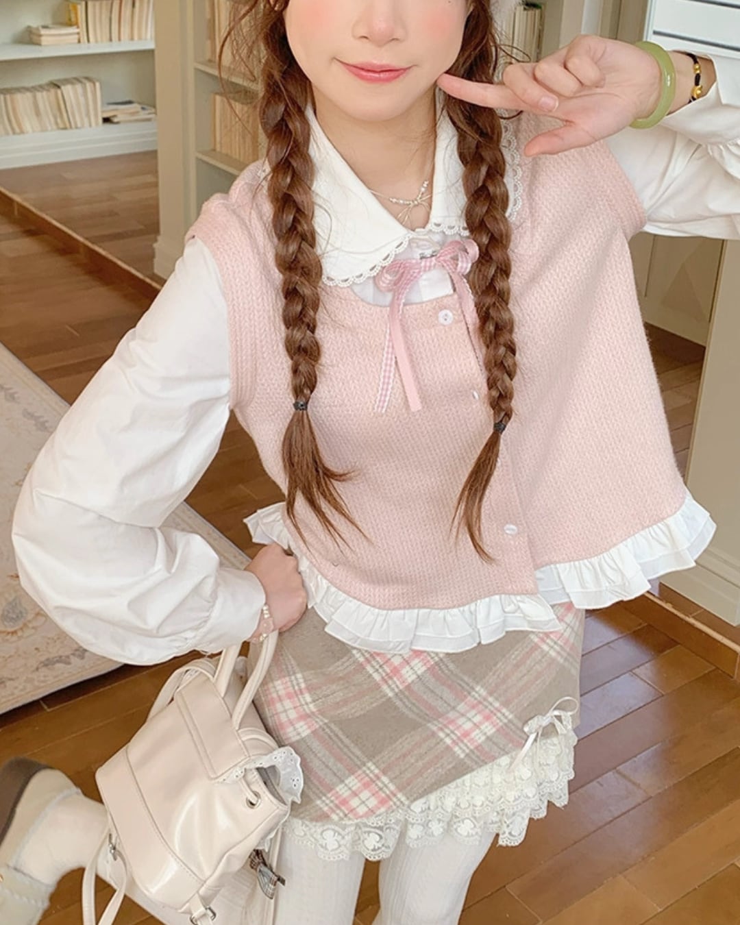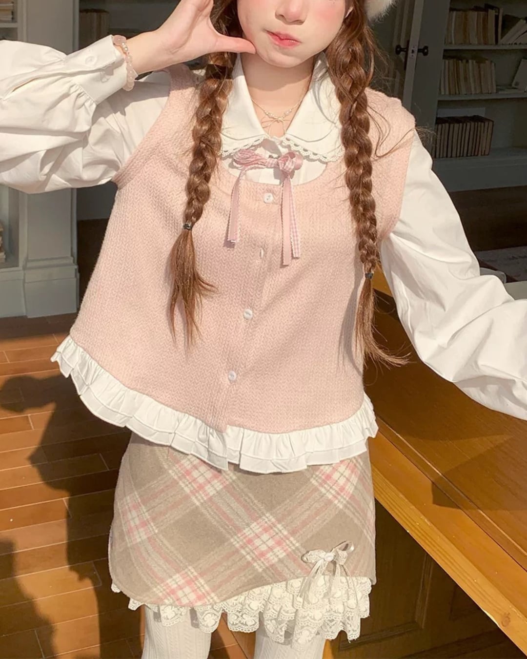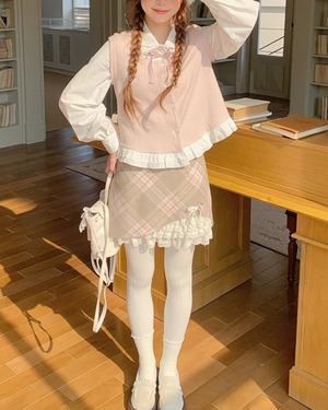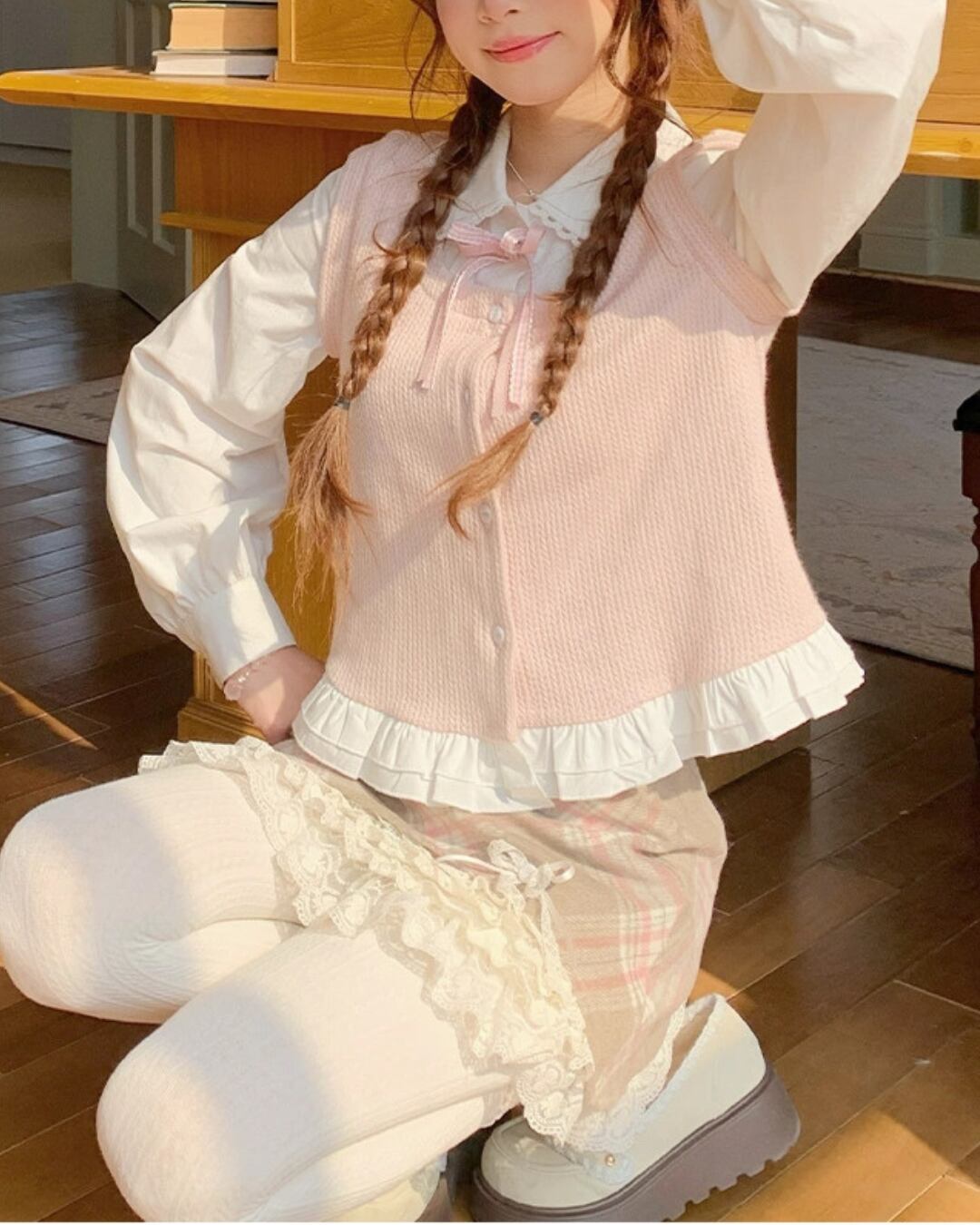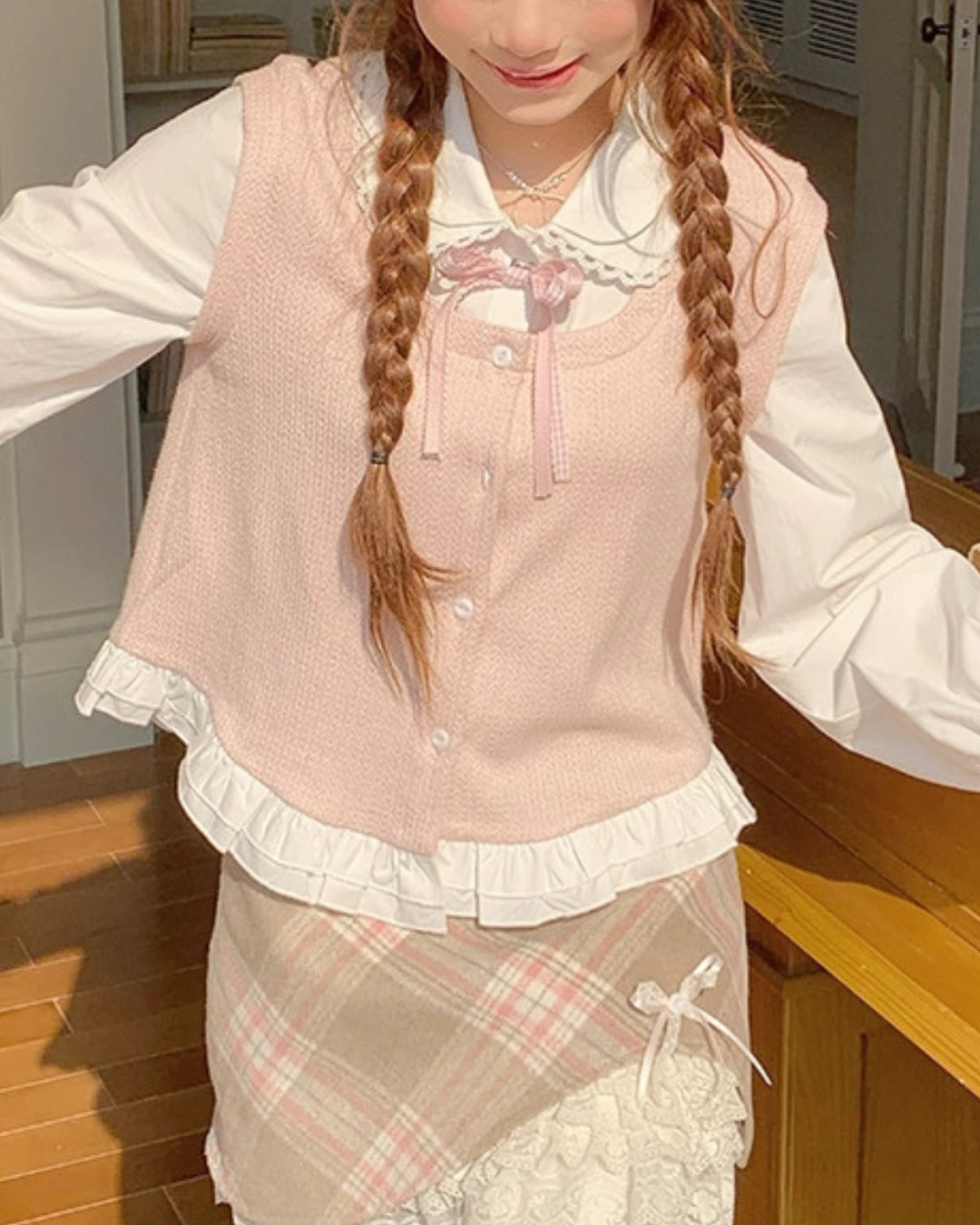 シャツとベストがレイヤードされたようなデザインのトップス♡