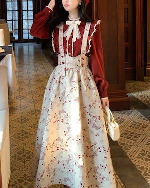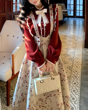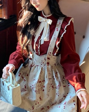 フリルハートリボンレッドブラウス 25W08425