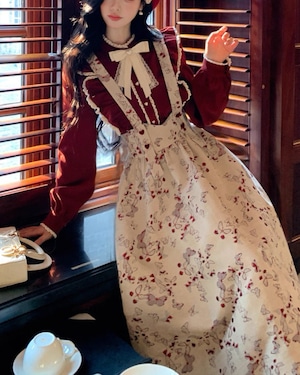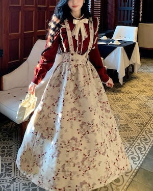 クラシカルな花柄が目を惹くガーリーなジャンパースカート♡