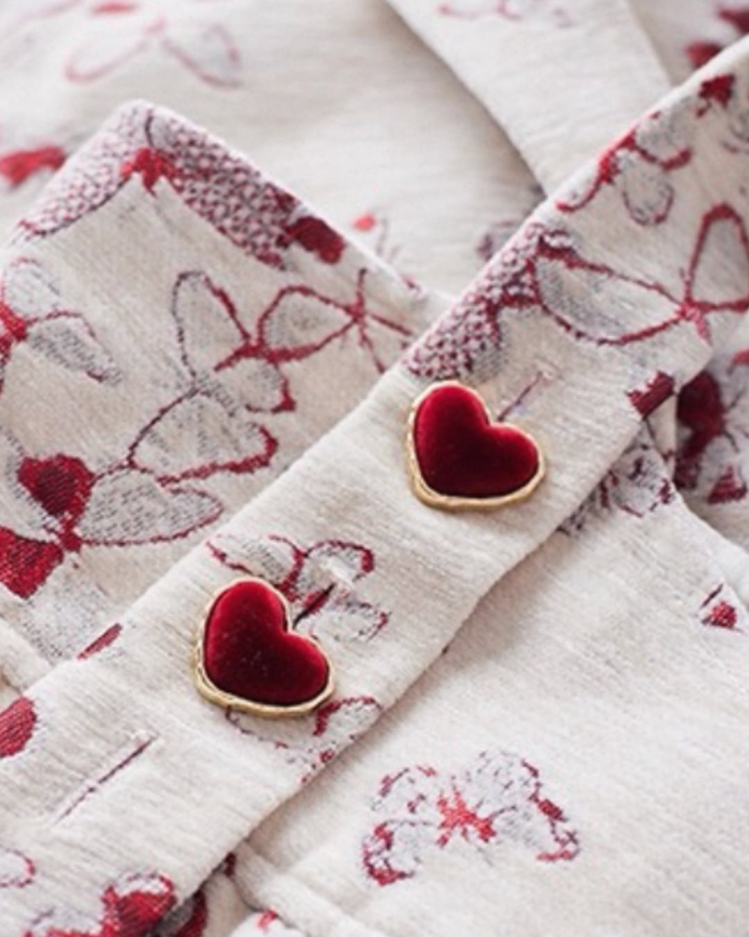 フロントのフリルとハートボタンが甘くロマンティックな印象に