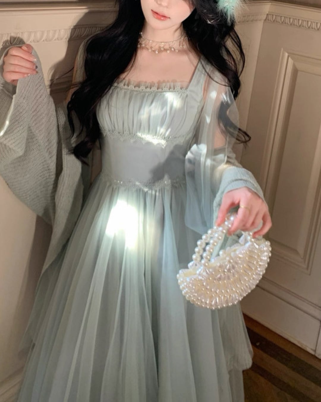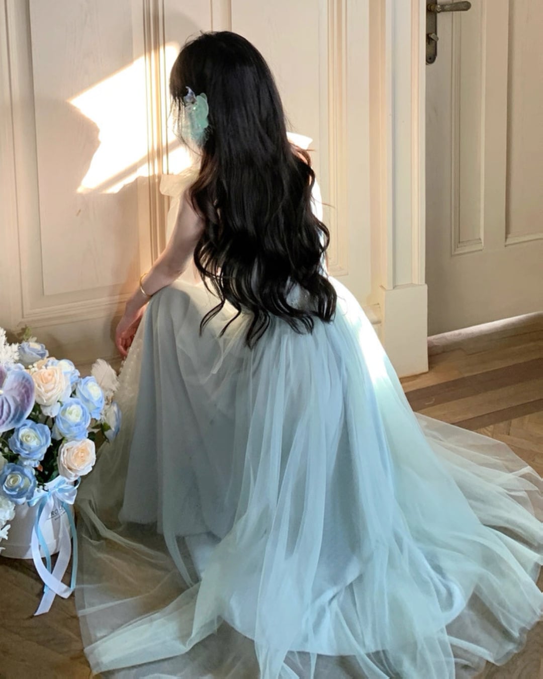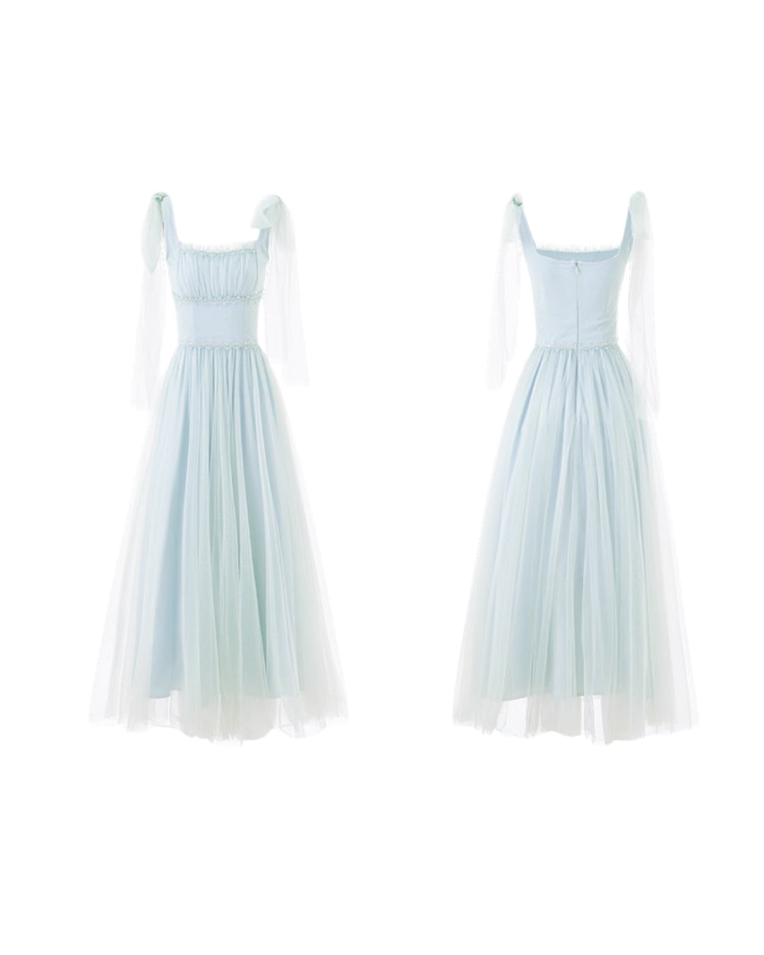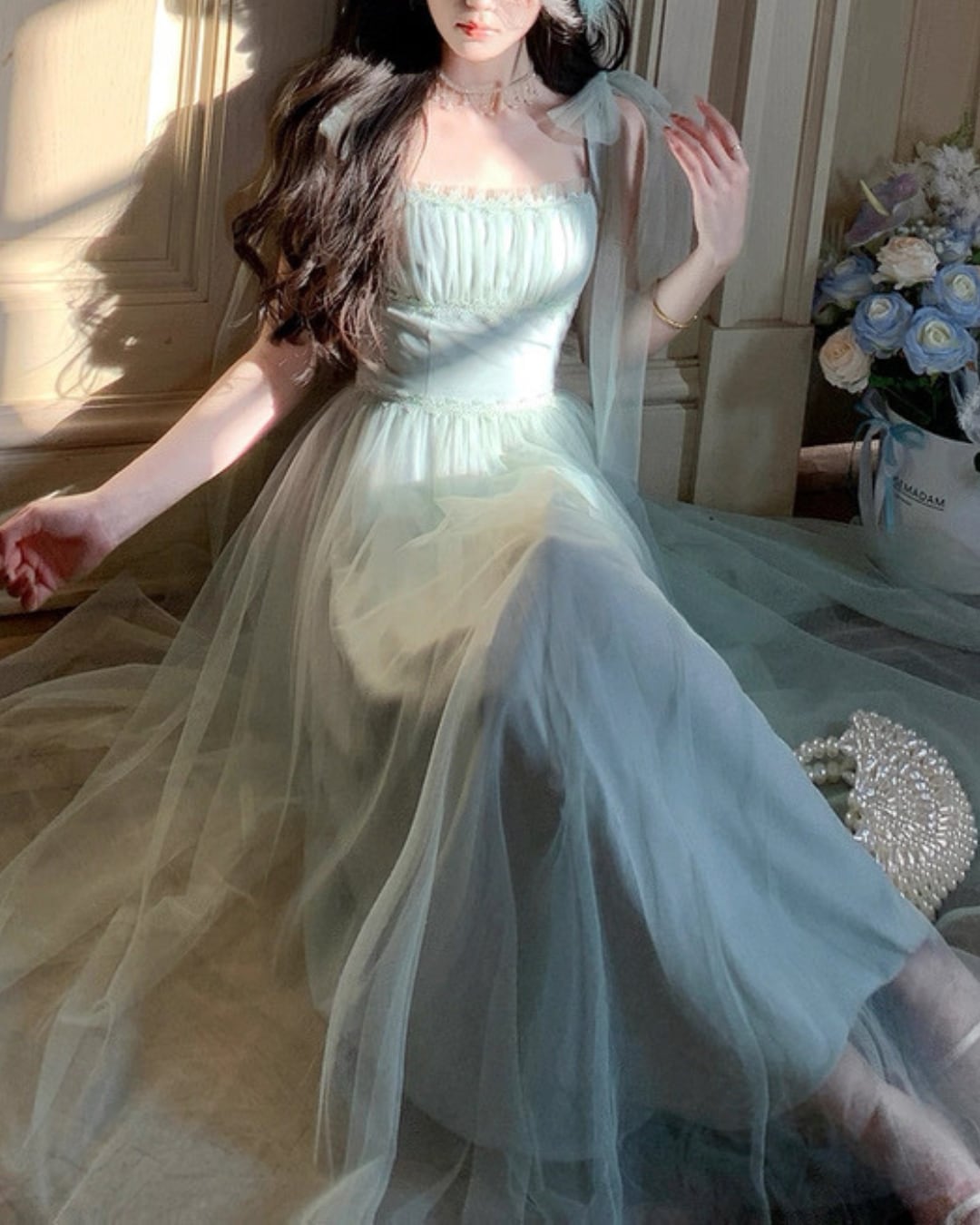 肩のリボンデザインが儚くロマンティックな雰囲気を演出します.*・゚