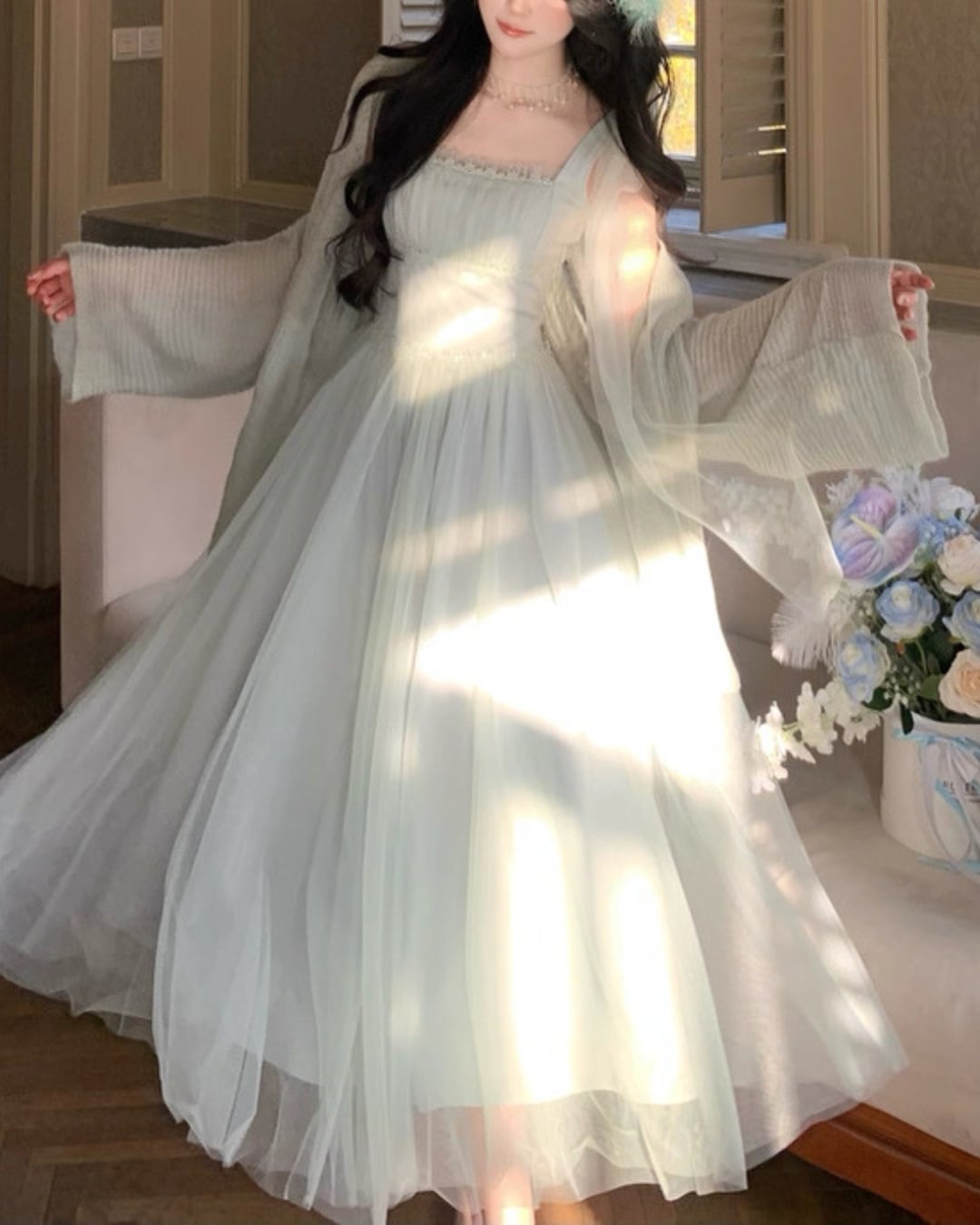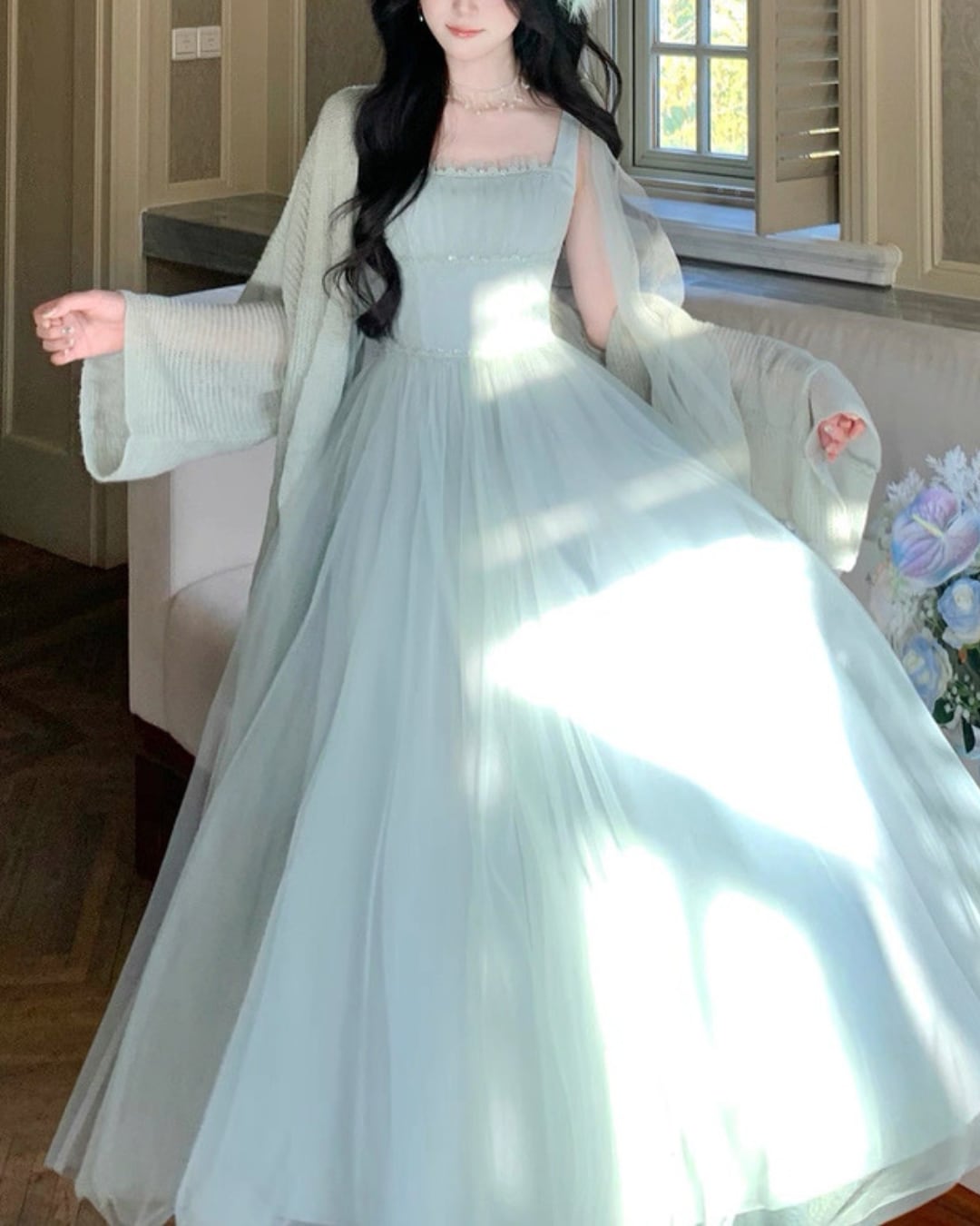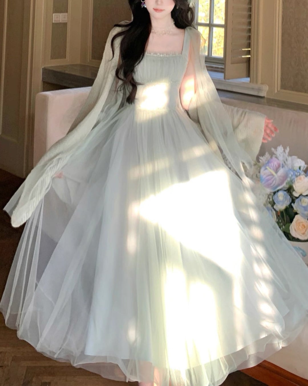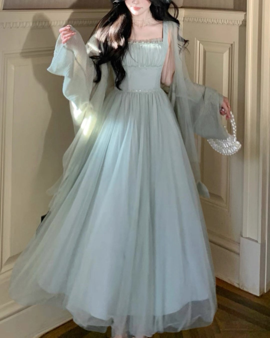 肩のリボンデザインが儚くロマンティックな雰囲気を演出します.*・゚