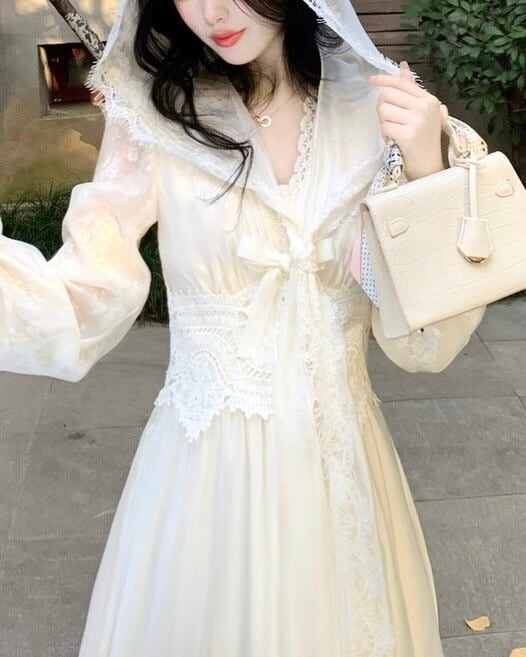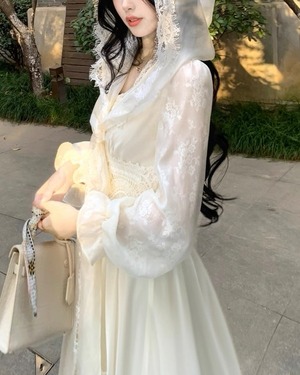 レースフードが乙女心くすぐるガーリーなワンピース♡