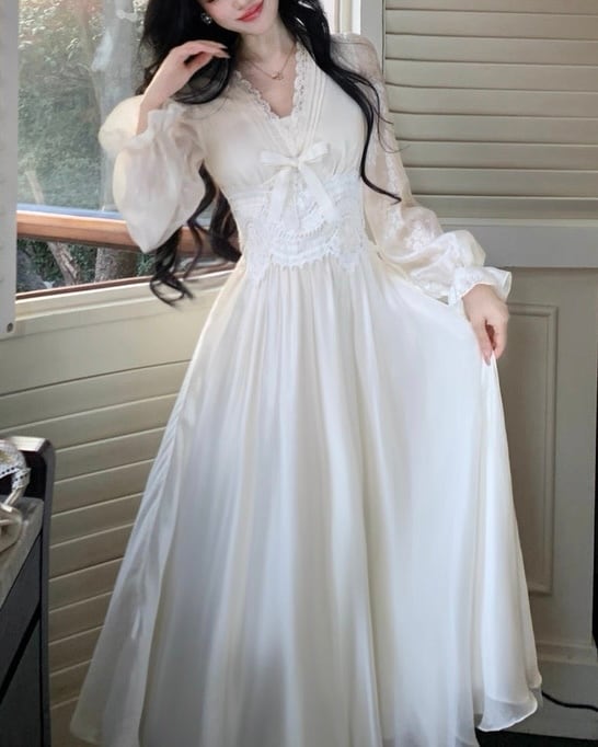 フードデザインシフォンレースワンピース 25W08431