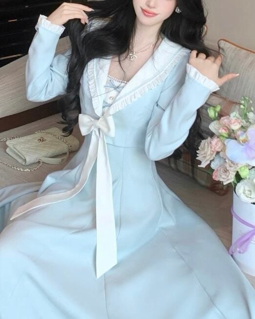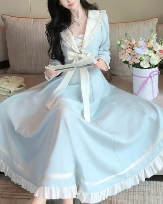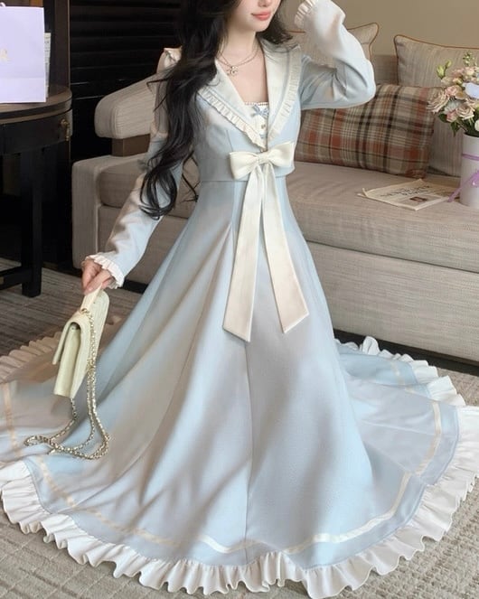 ブルーセーラーロングフレアワンピース 25W08432