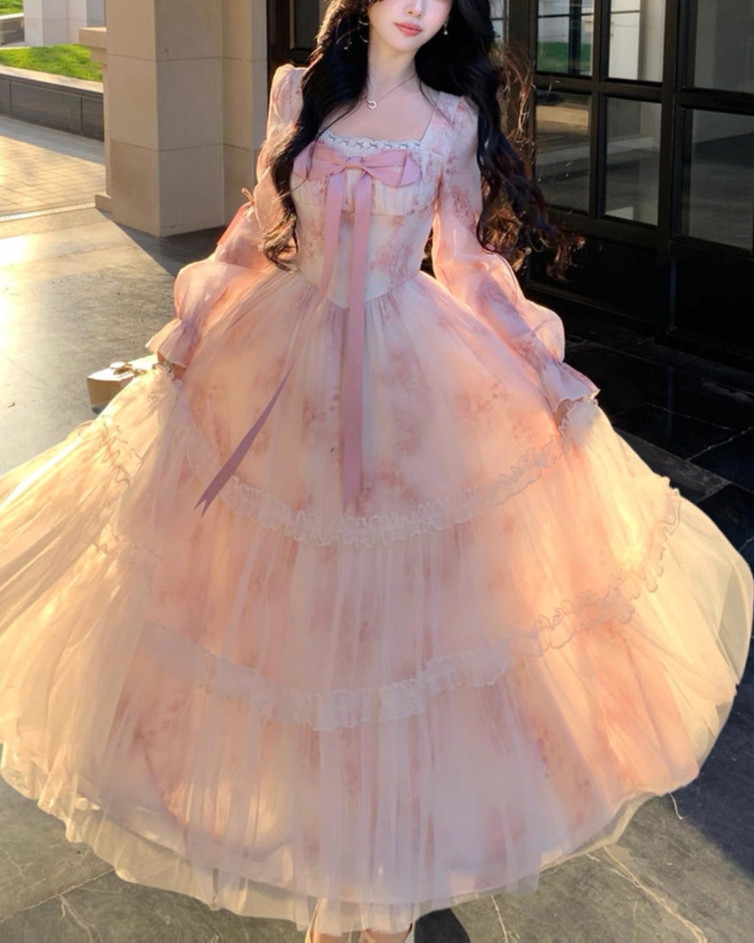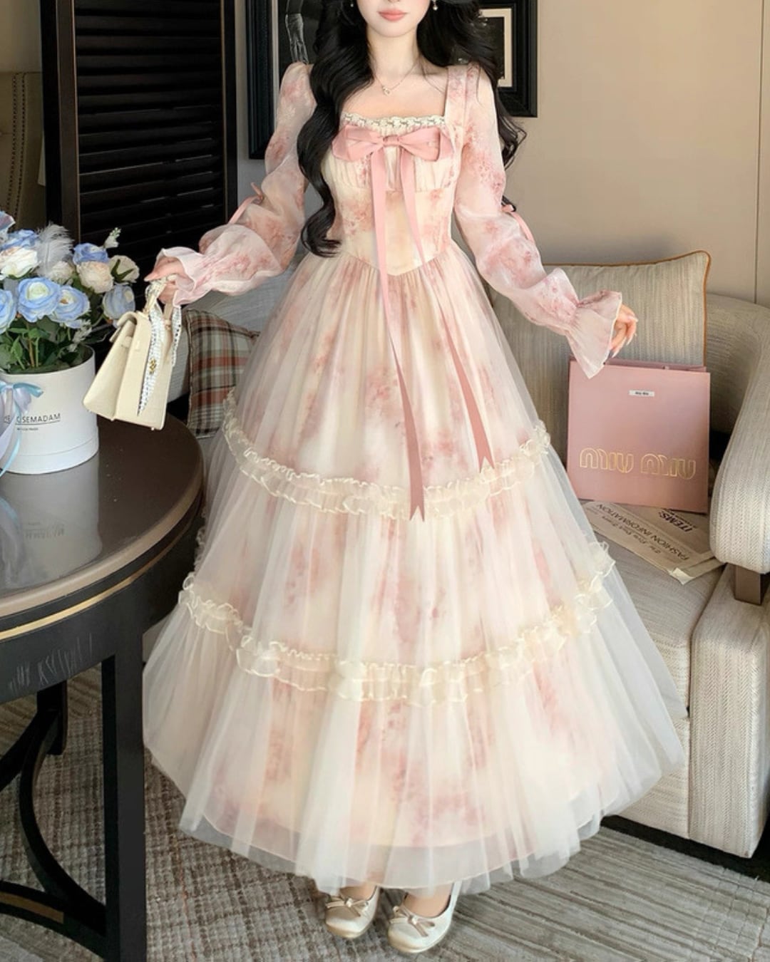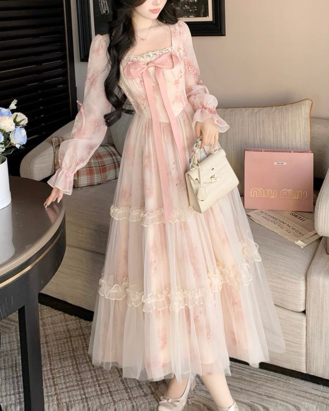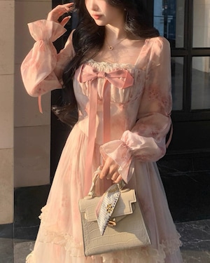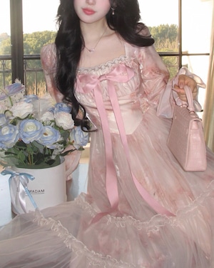 胸元リボンが存在感を放ち、お姫様のような気分にさせてくれる一着です.*・゚