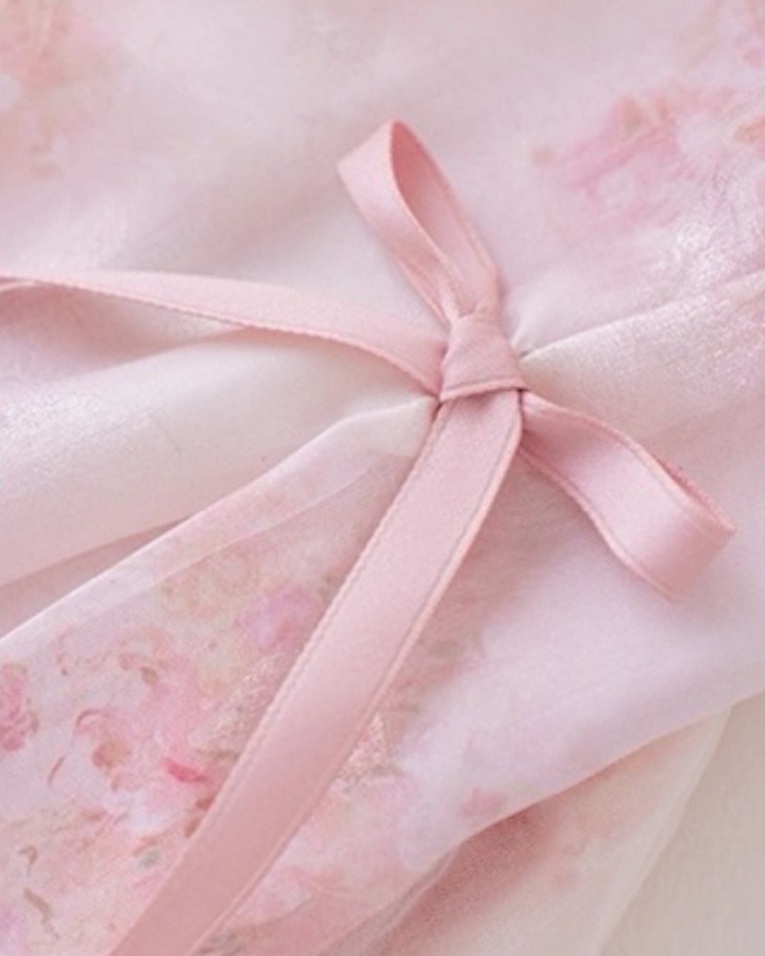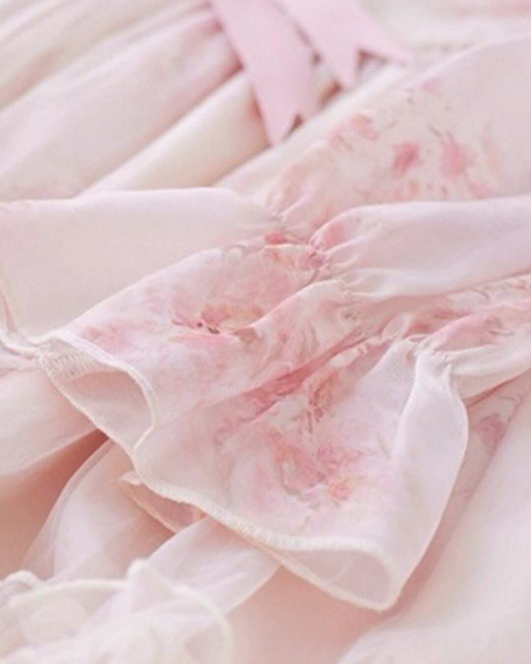 やさしいピンクの花柄とレースが重なり