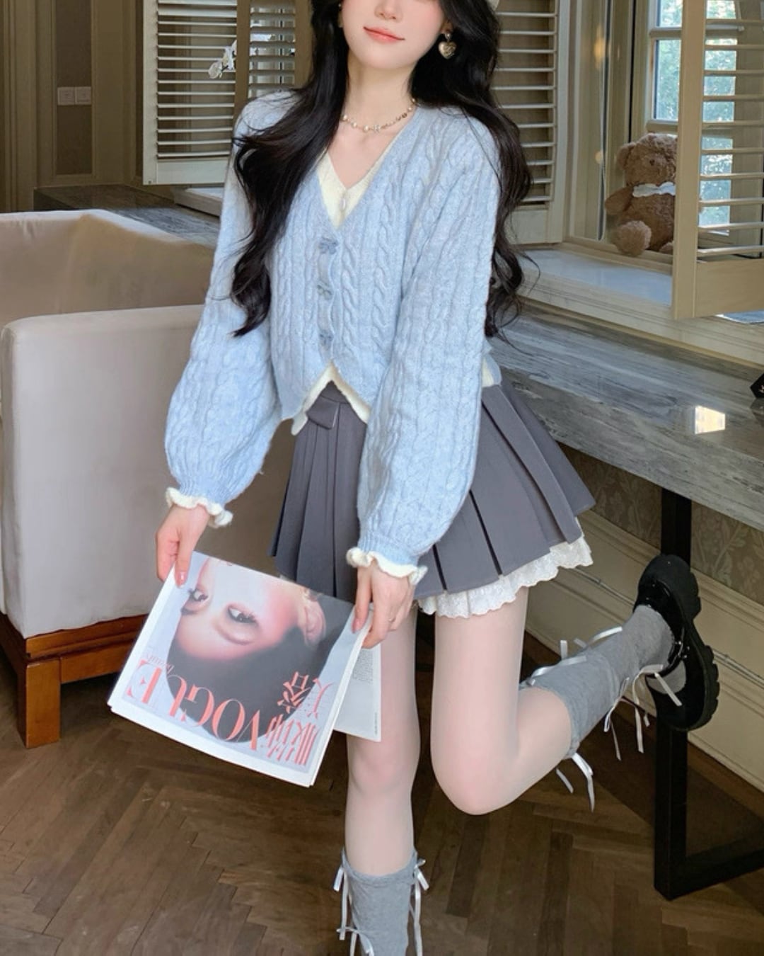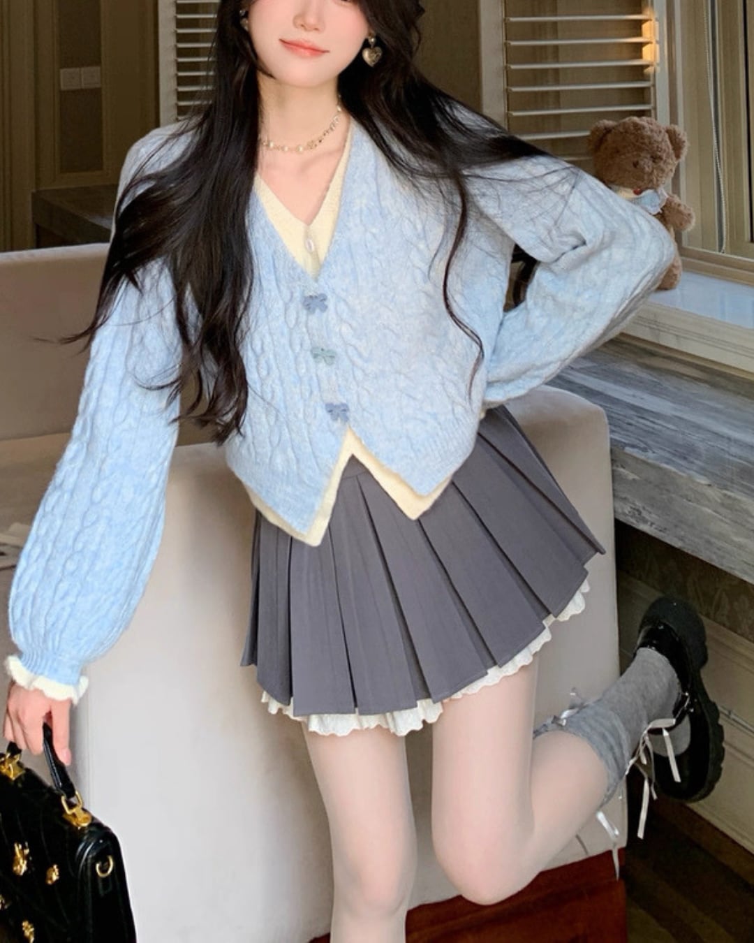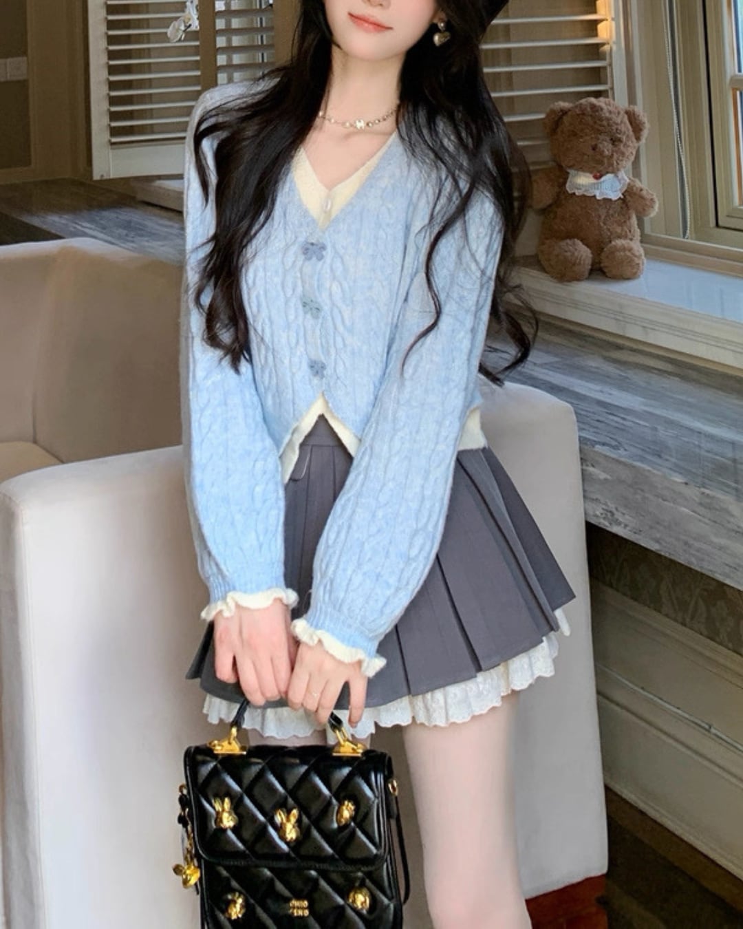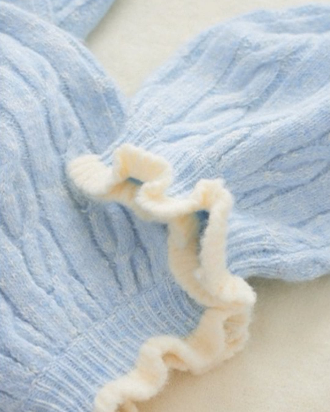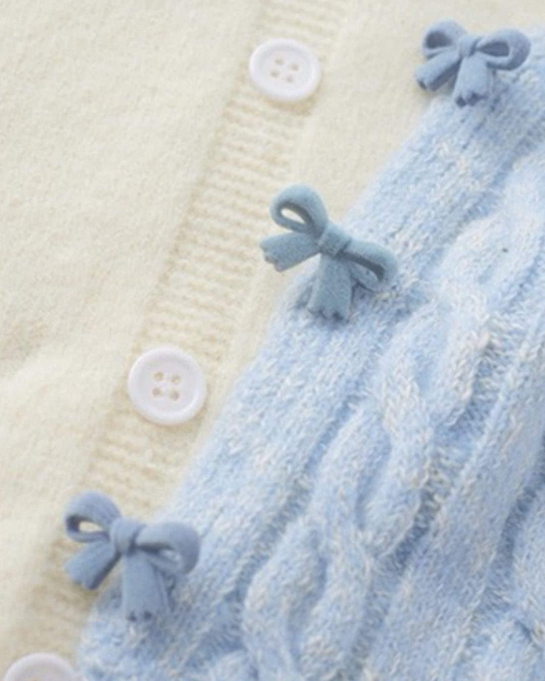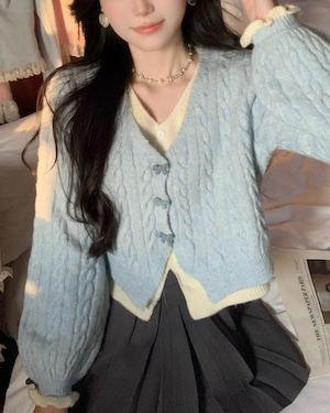 淡いブルーのケーブル編みが可愛らしいカーディガン♡