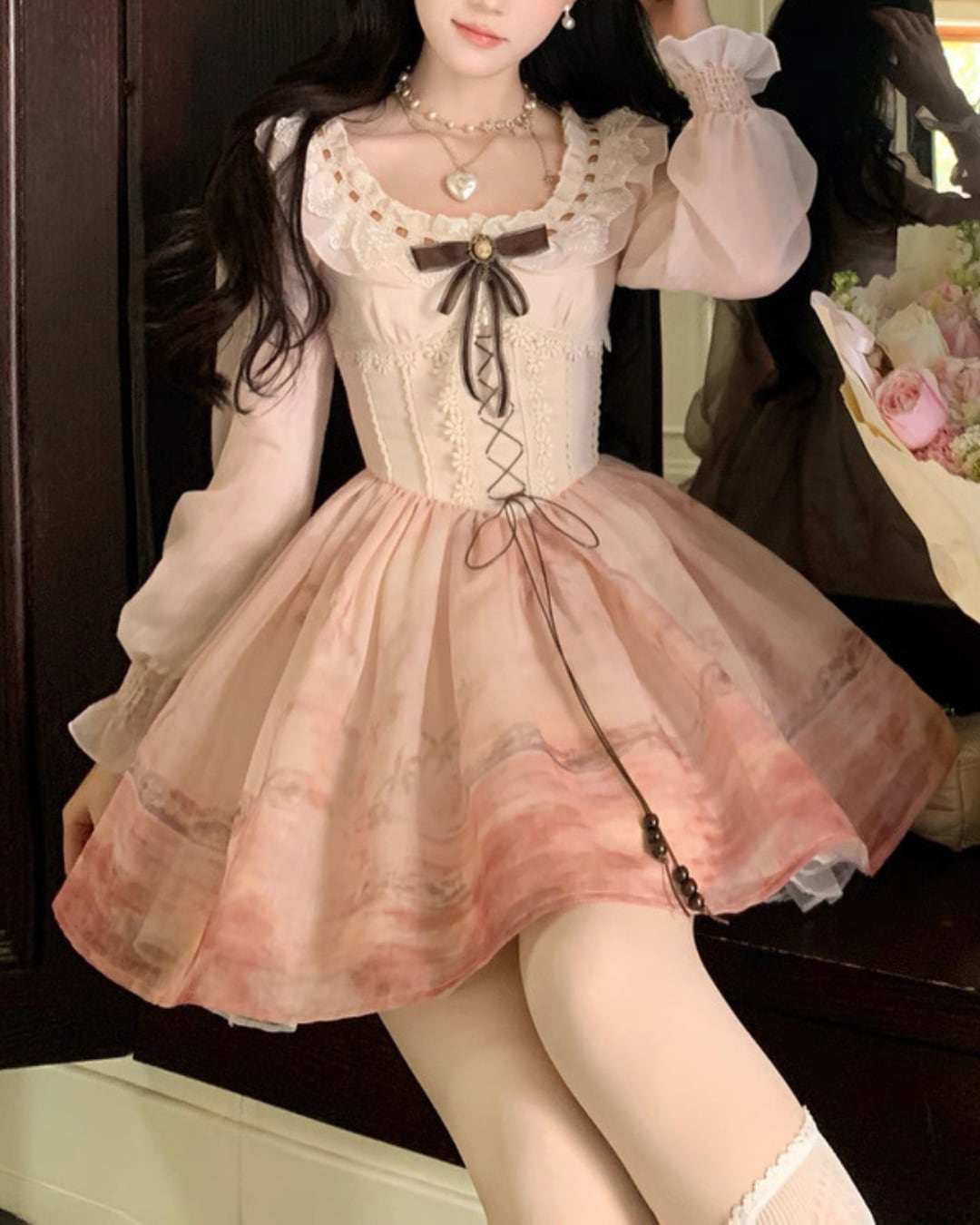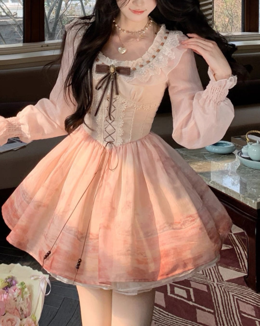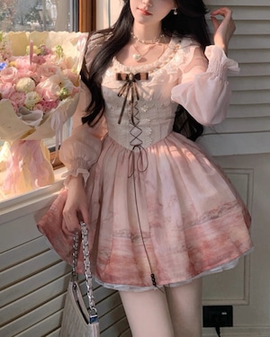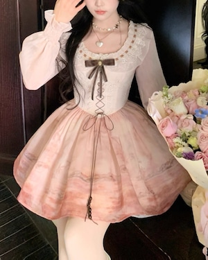 サンセットグラデーションレースアップワンピース 25W08438