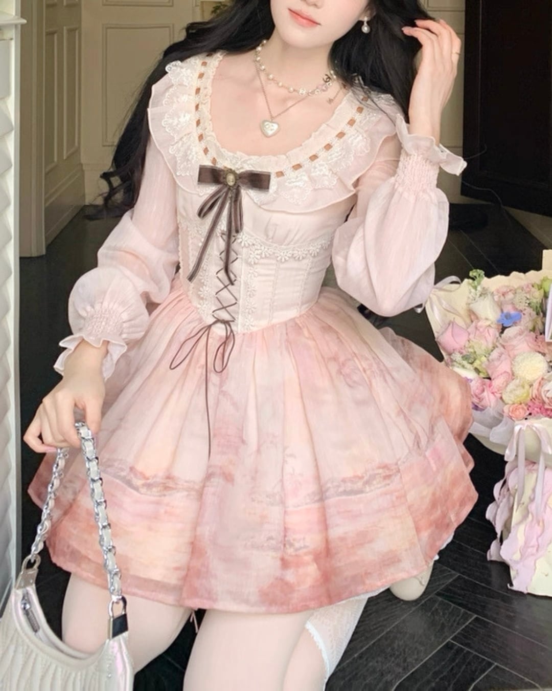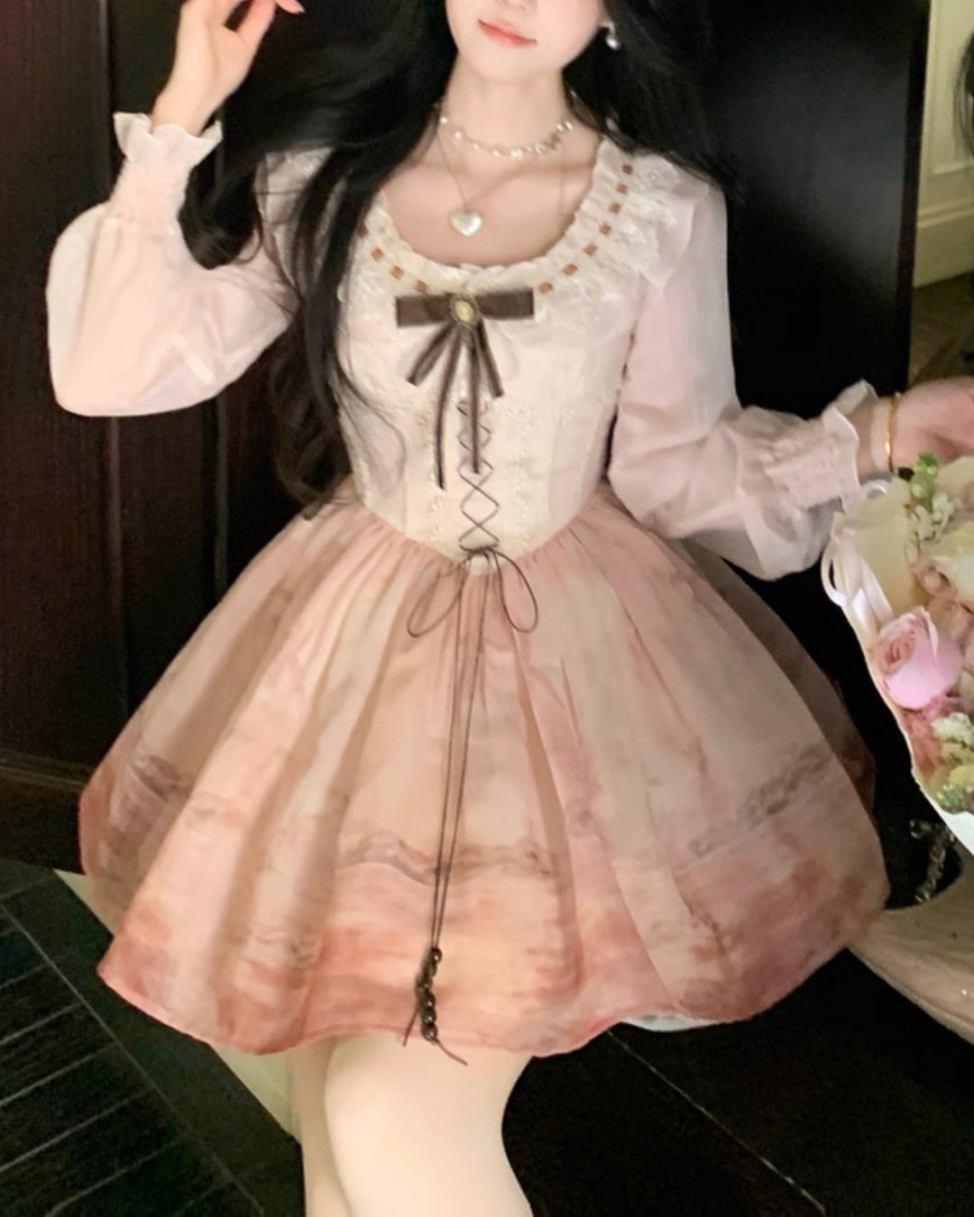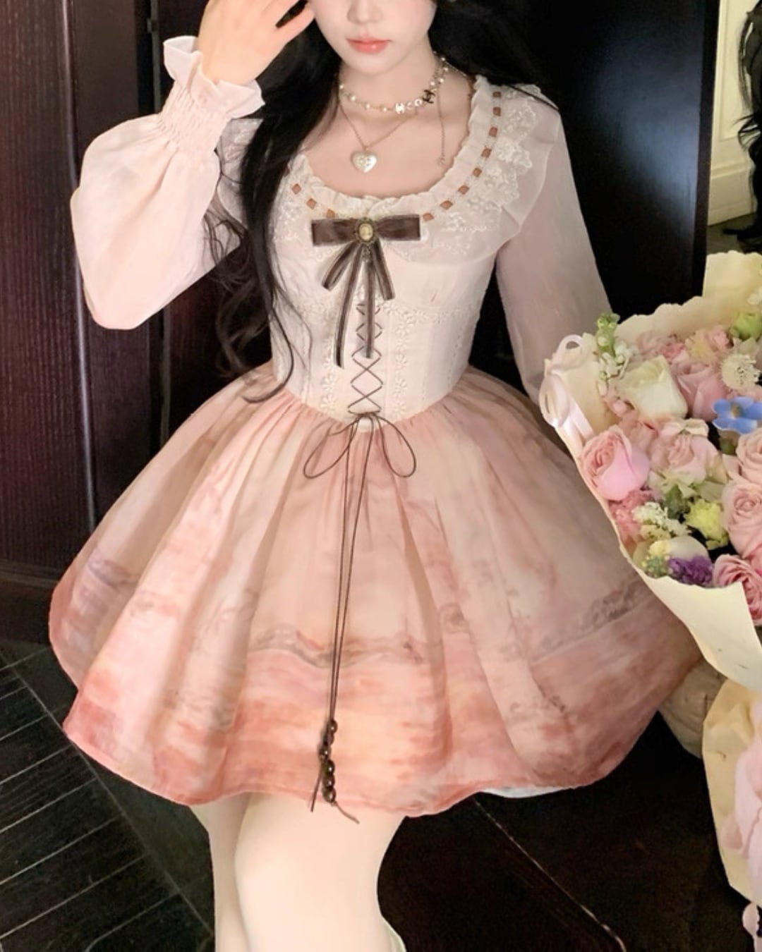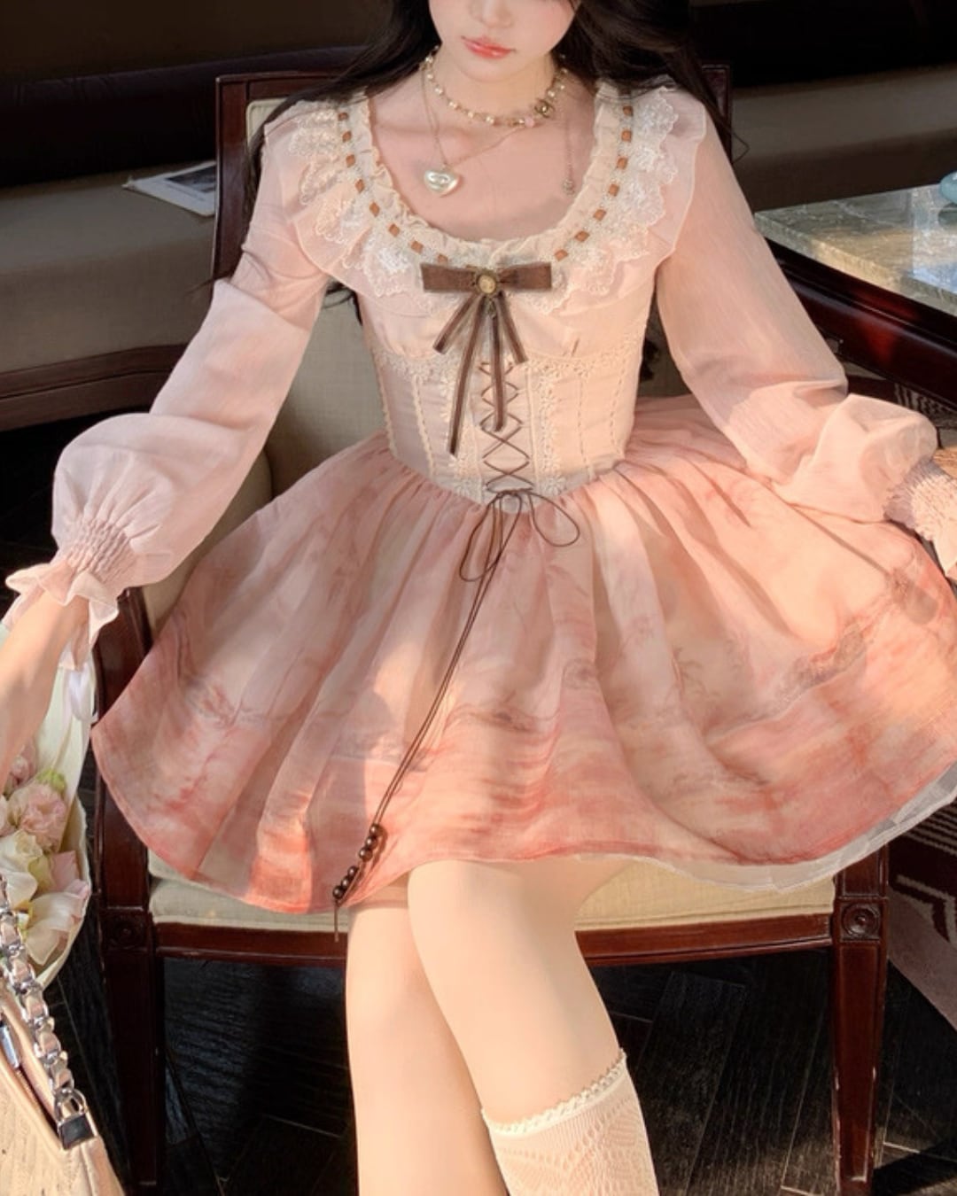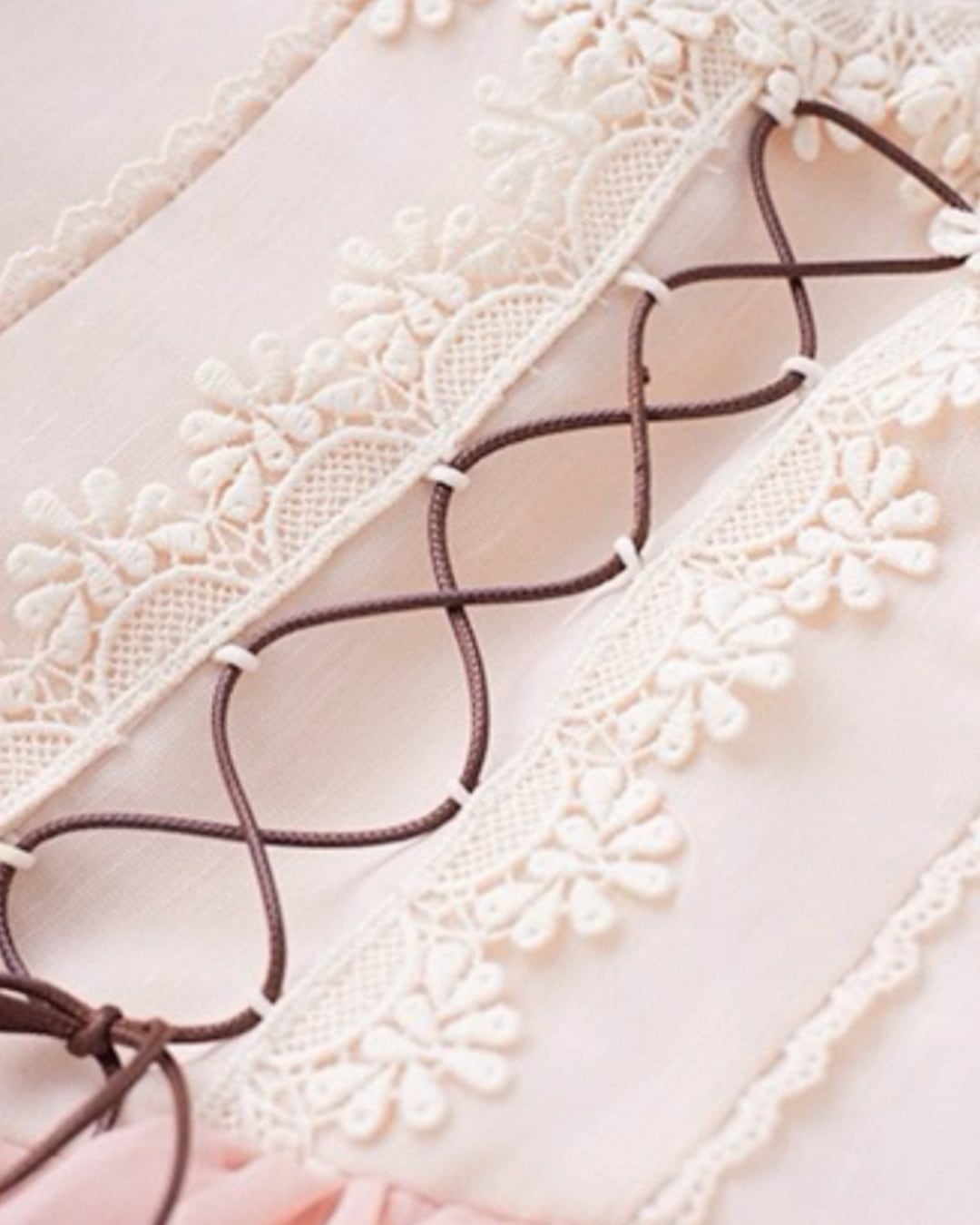 コルセット風の編み上げデザインと、胸元のレースデザインがポイント⑅⃛
