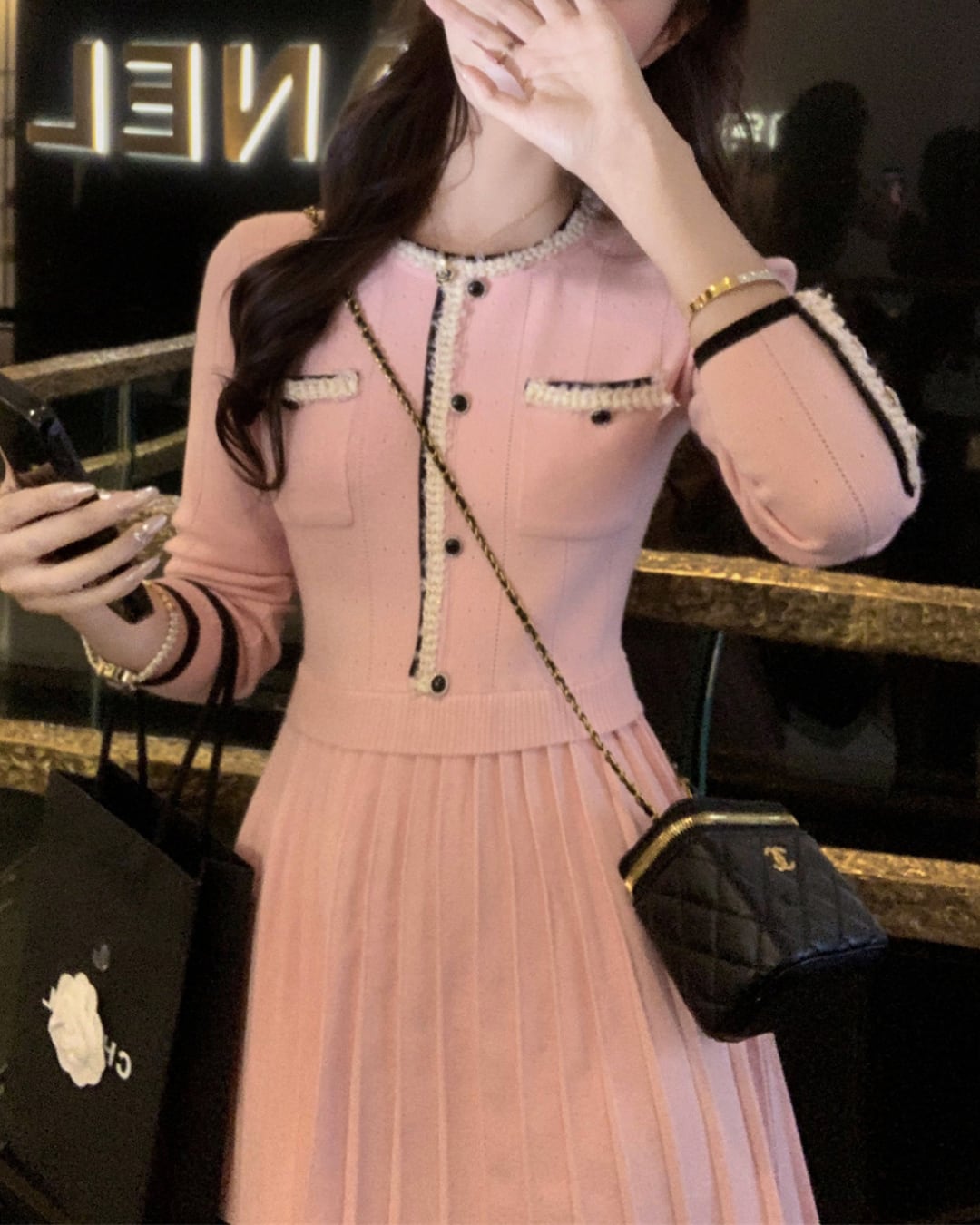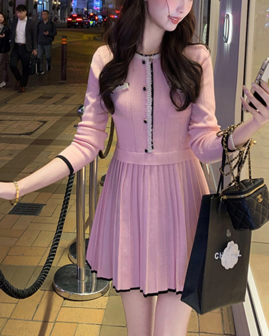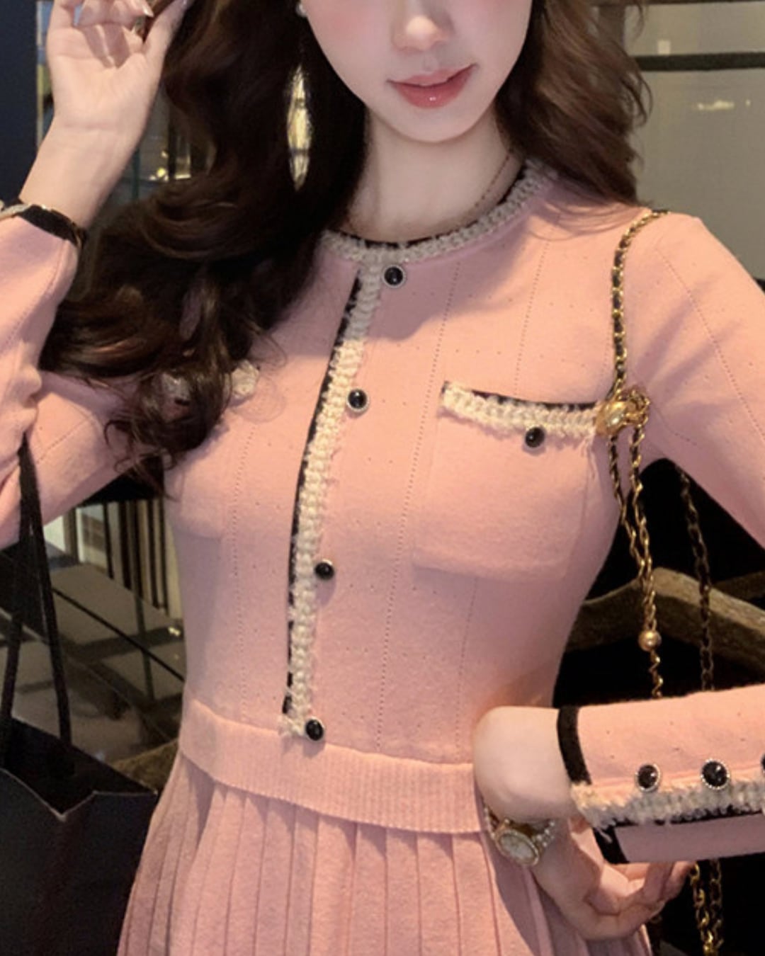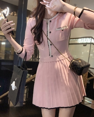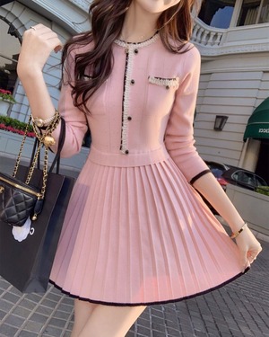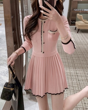 バイカラーパイピングプリーツニットワンピース 25W08441