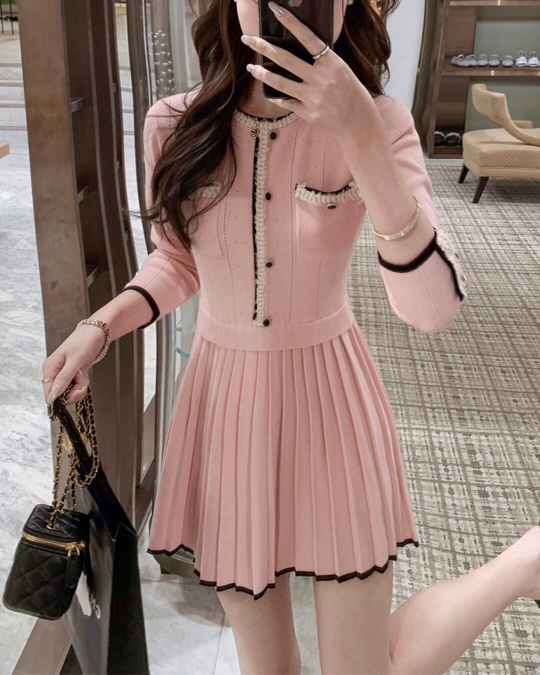 すっきりとしたトップスラインと広がるプリーツスカートが女性らしさを演出してくれます⑅⃛