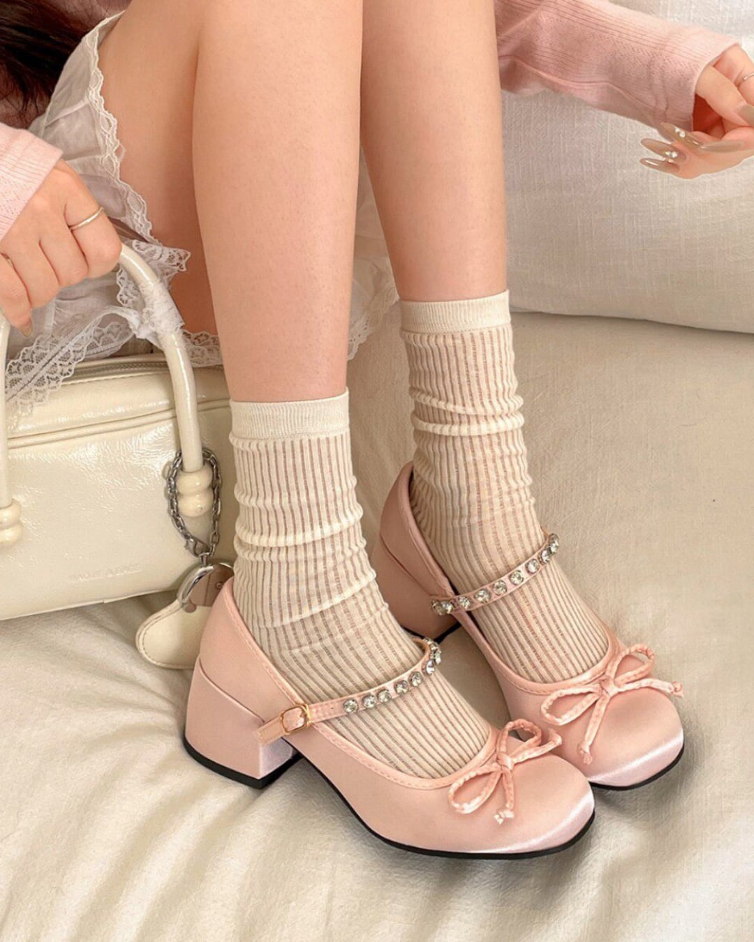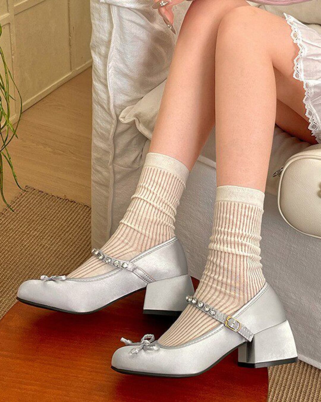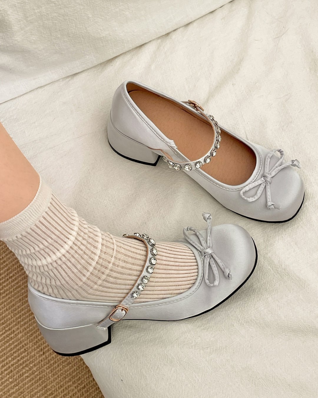 サテンストラップビジューパンプス(2 colors) 25W08449