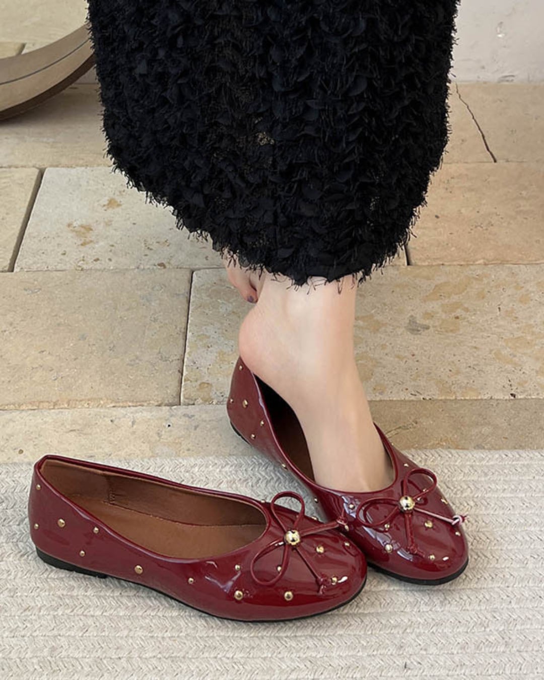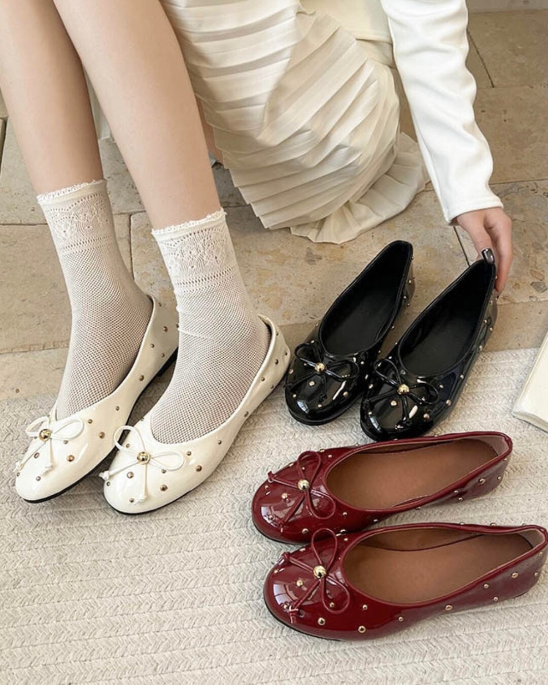 ゴールドスタッズエナメルフラットシューズ(3 colors) 25W08450