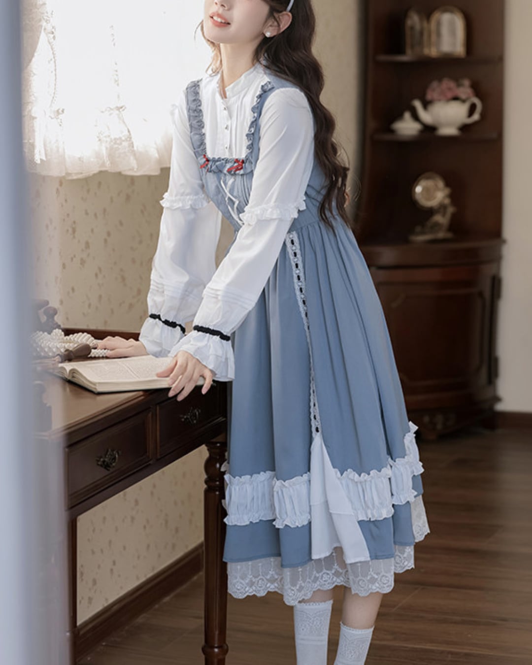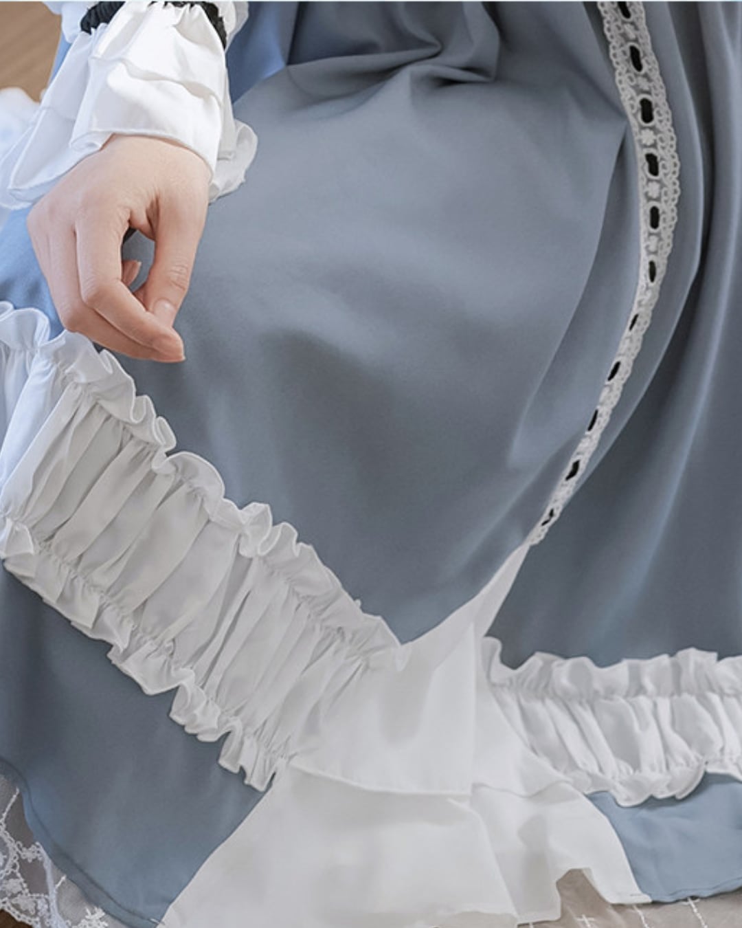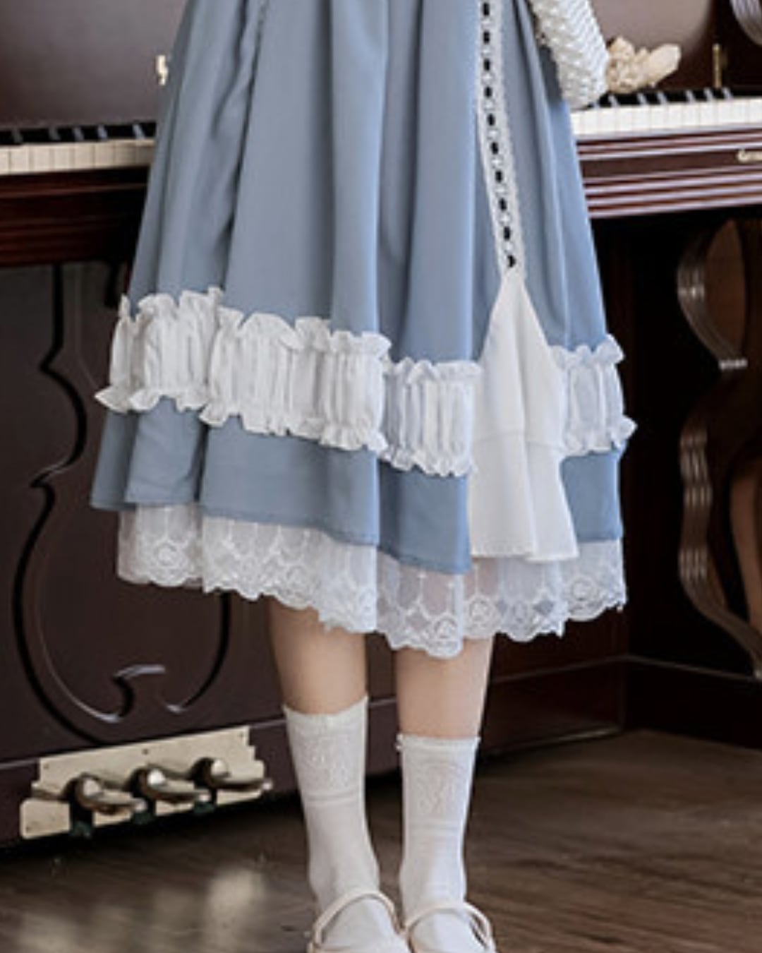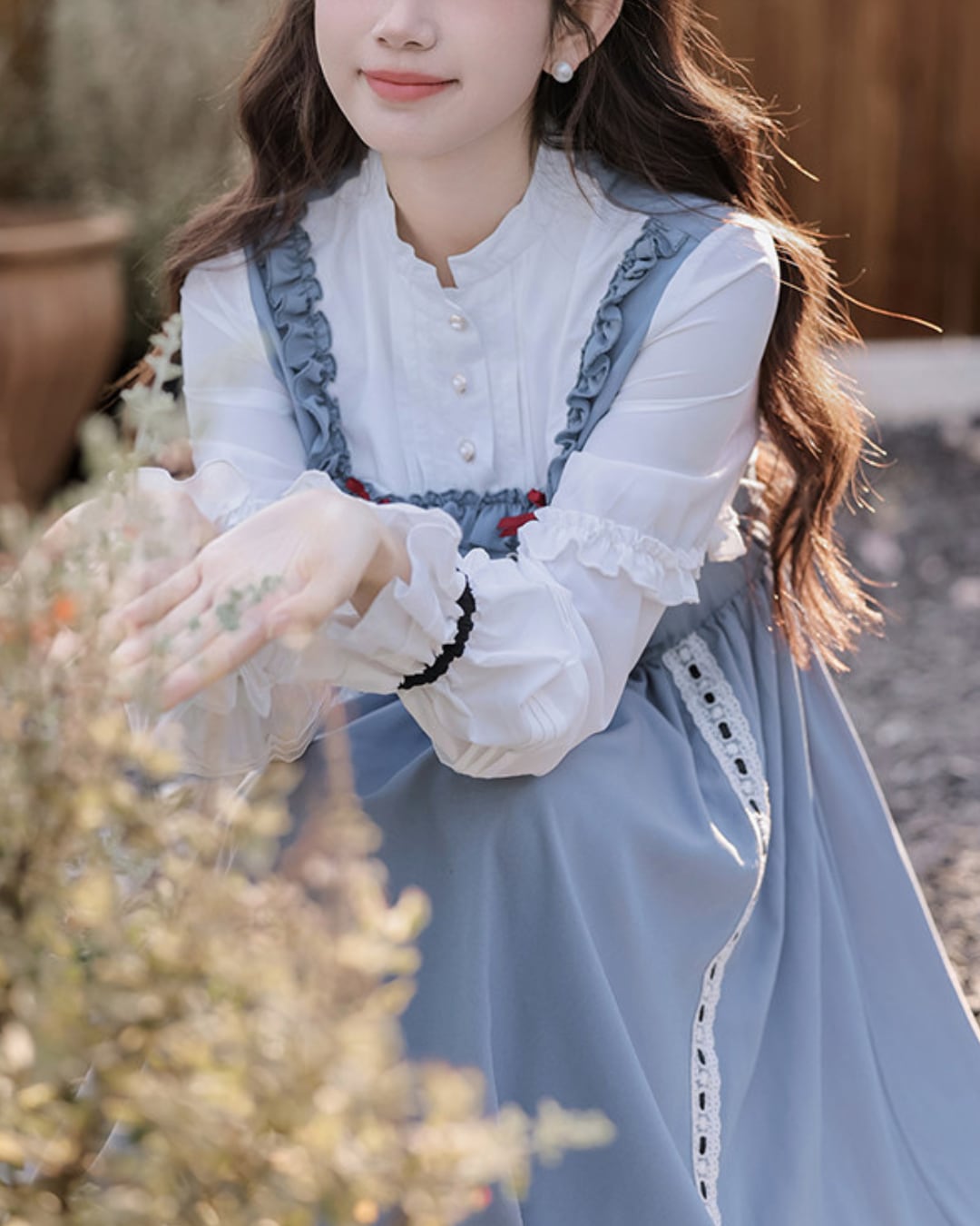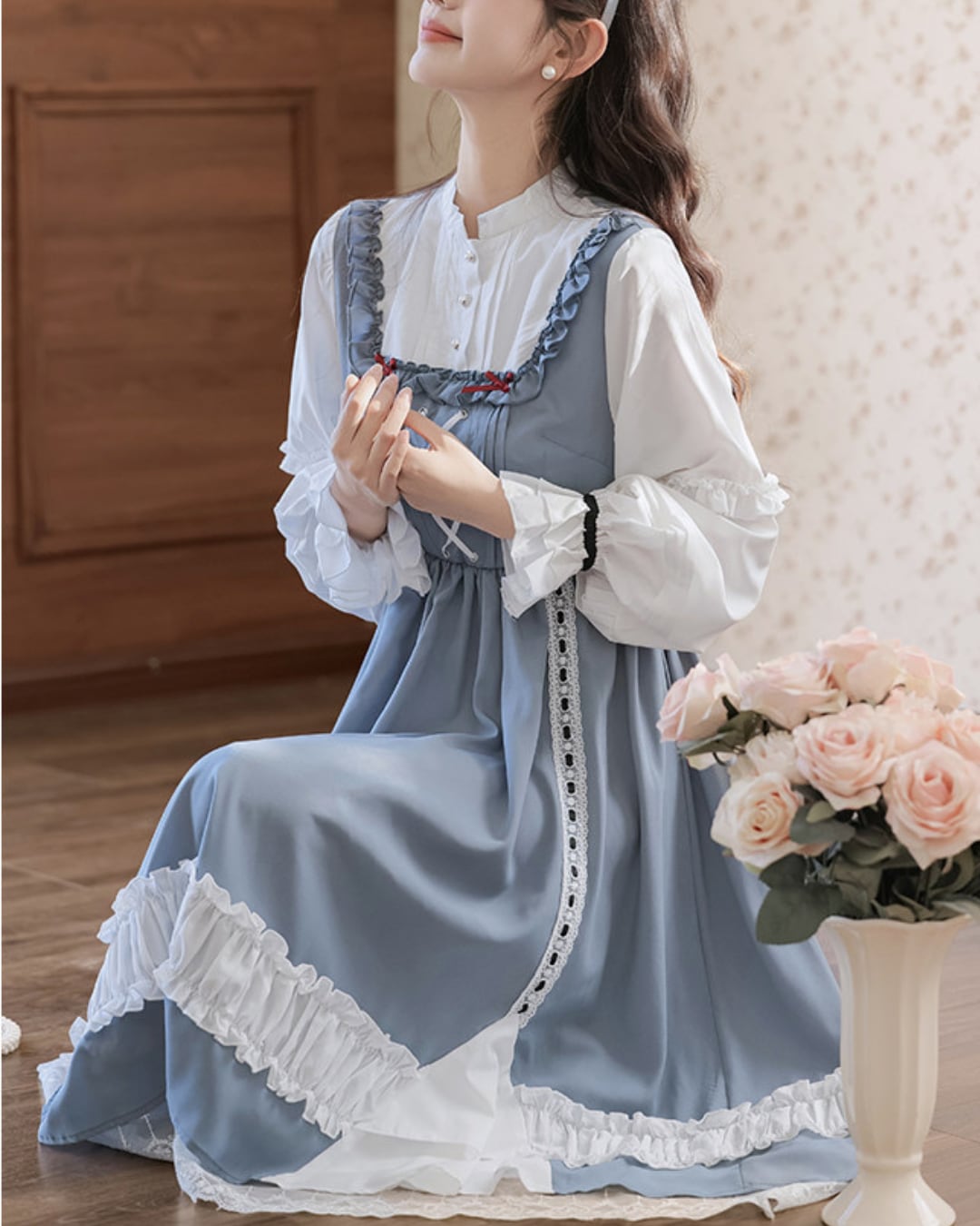 フロントのレースアップと胸元のレッドカラーのリボンがアクセントになり、上品で可憐な印象を演出してくれます*・゜゜
