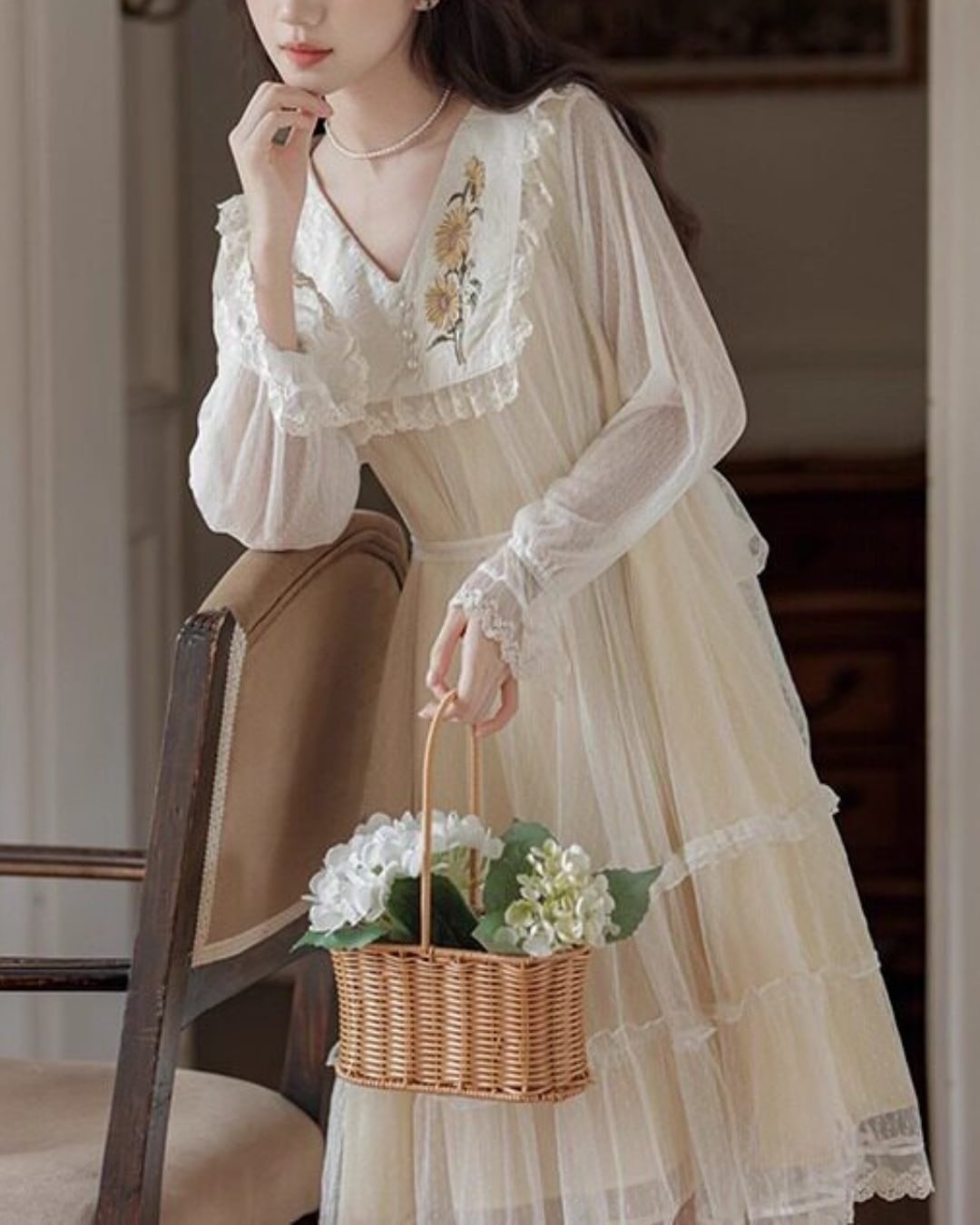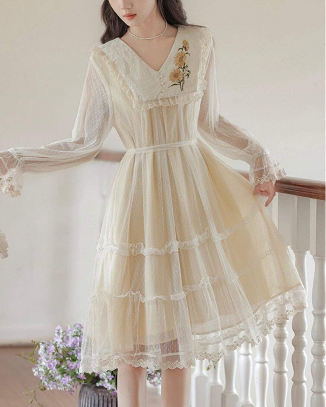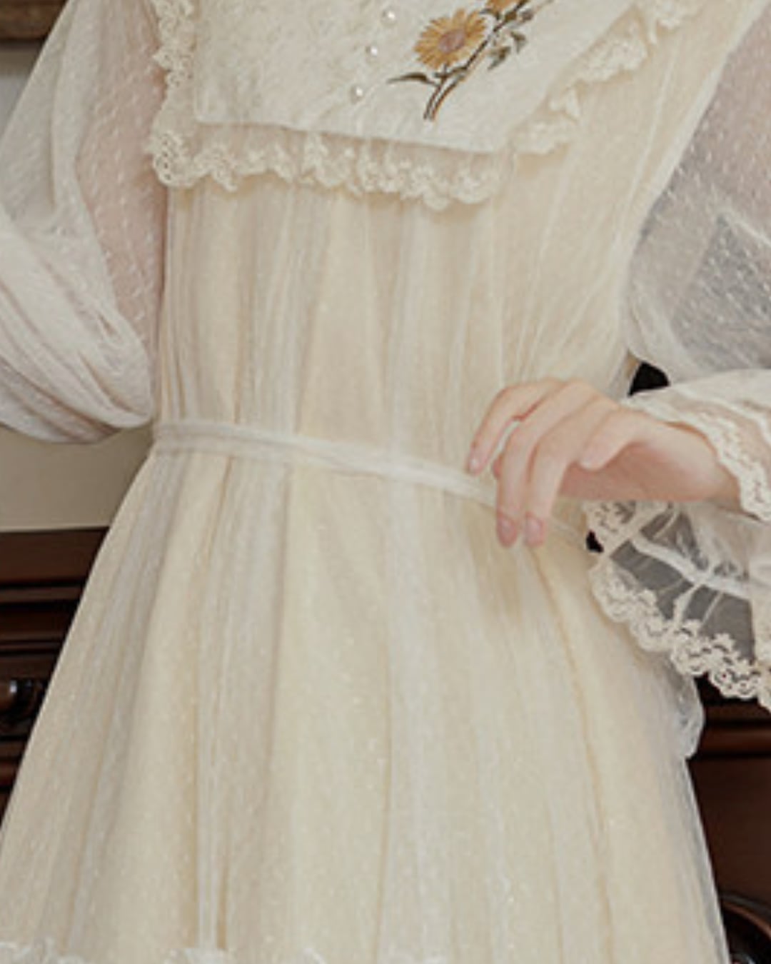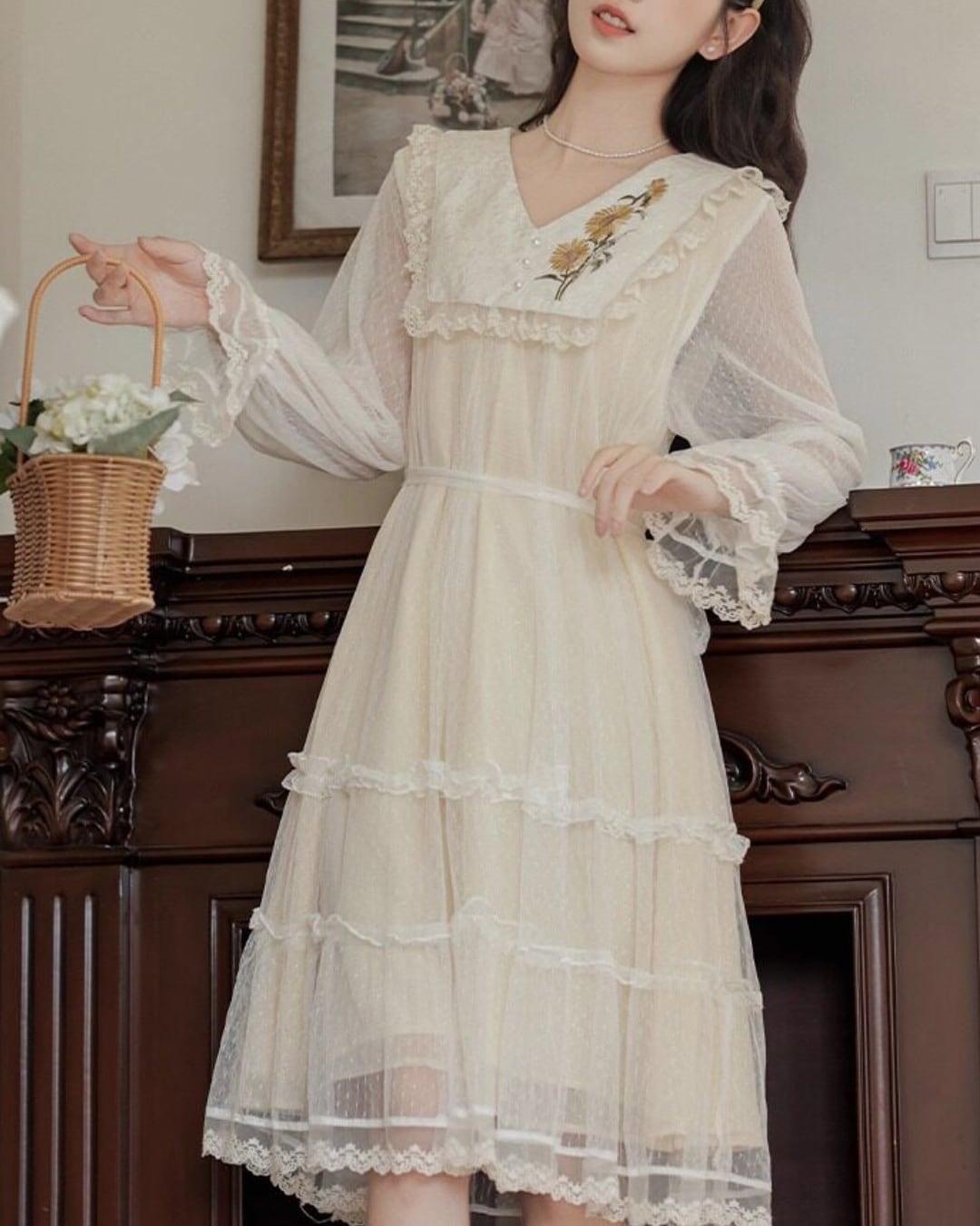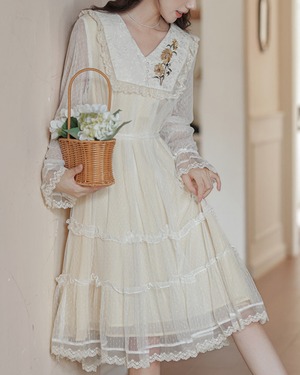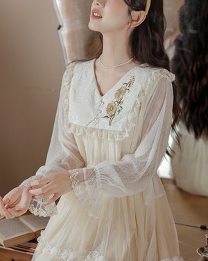 胸元にフラワー刺繍をあしらったシアーレースが魅力のワンピース♡
