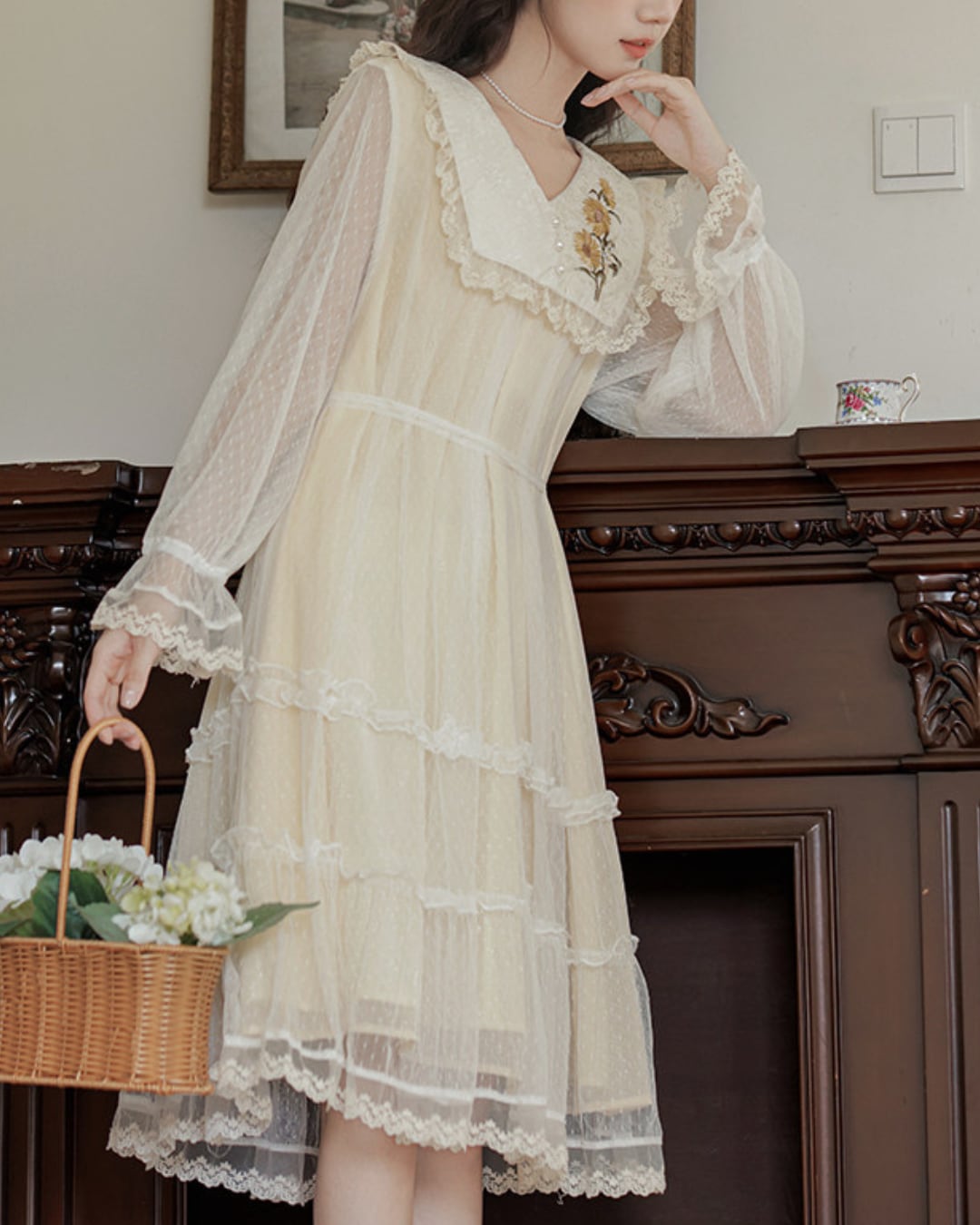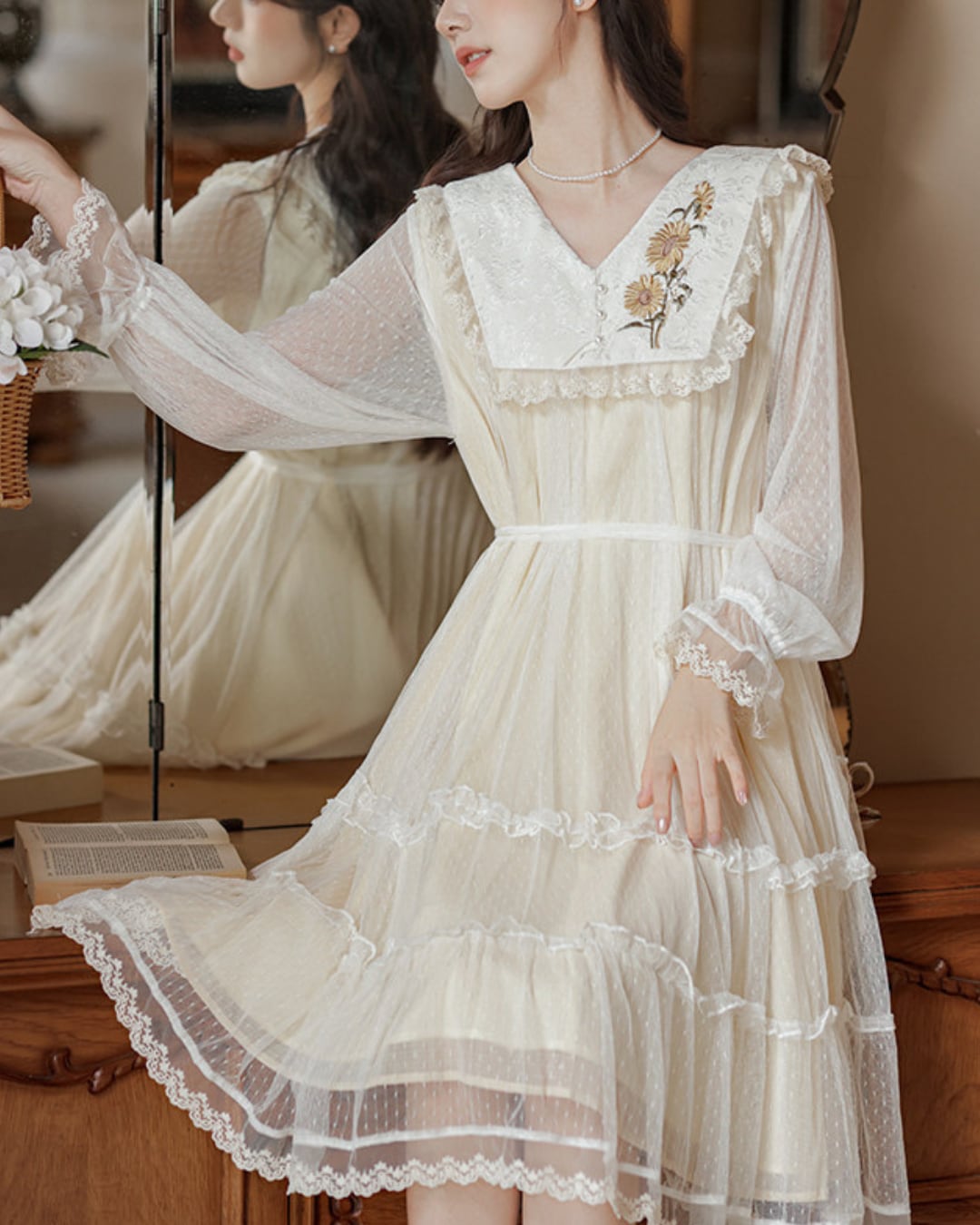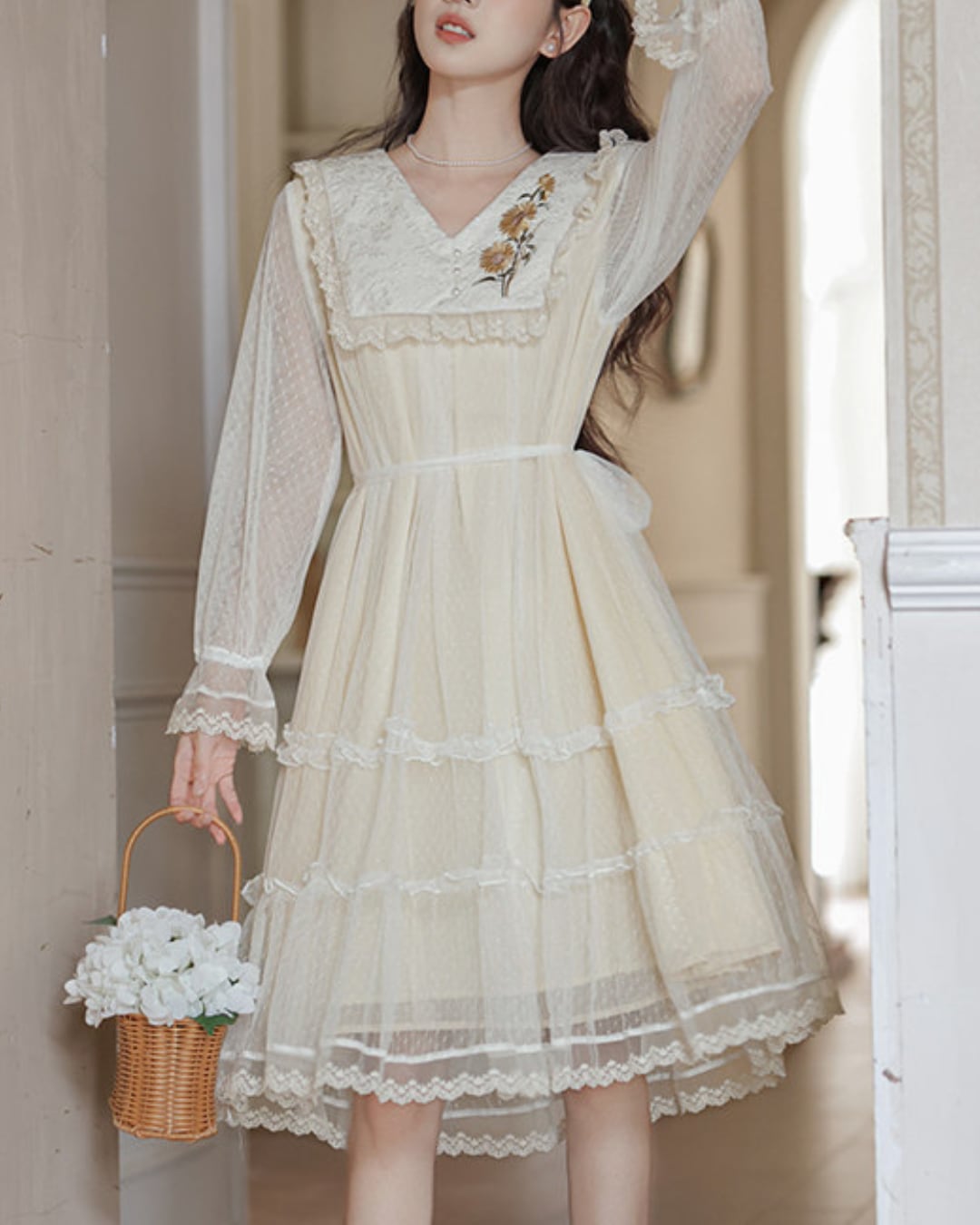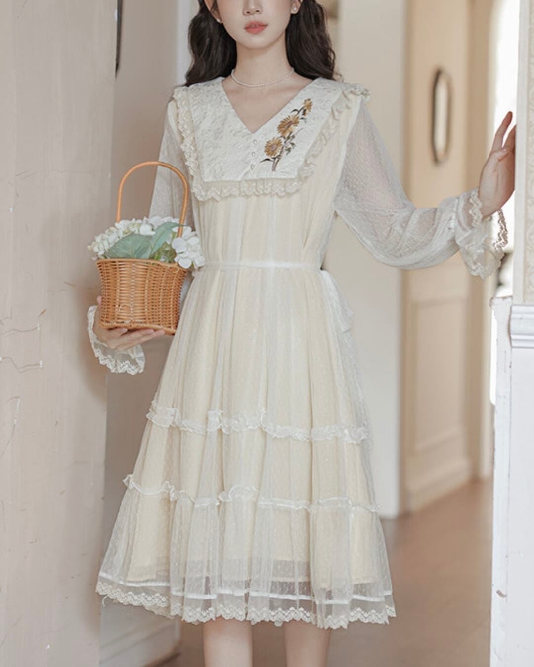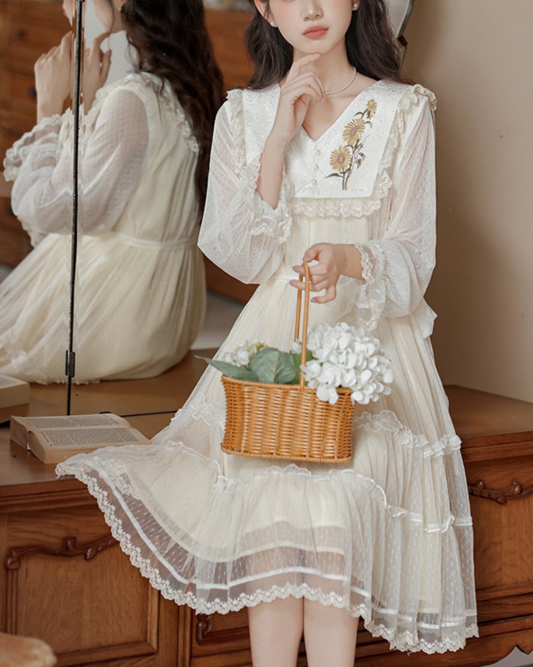 胸元にフラワー刺繍をあしらったシアーレースが魅力のワンピース♡