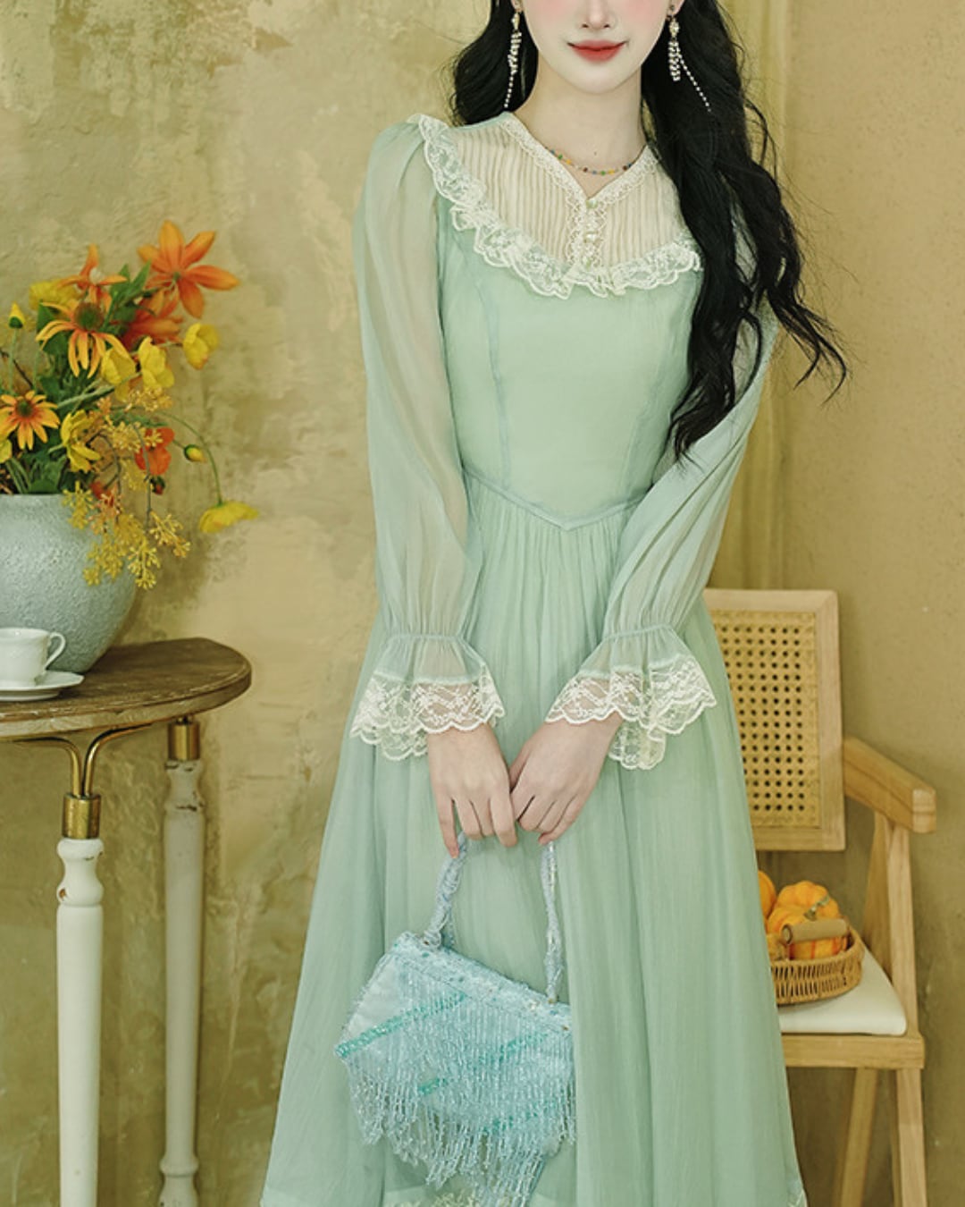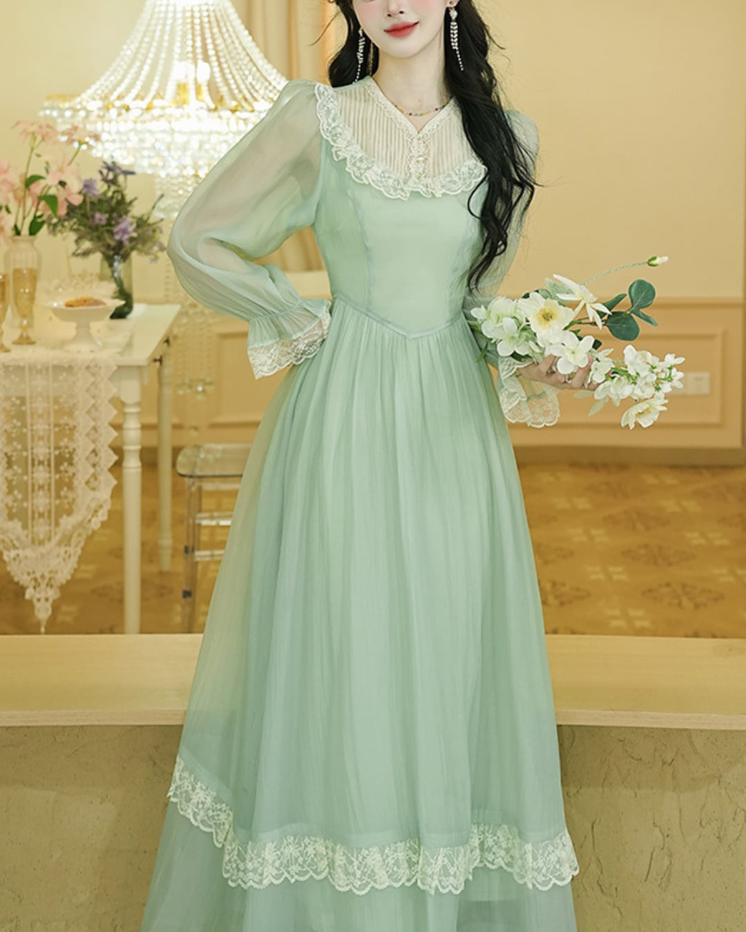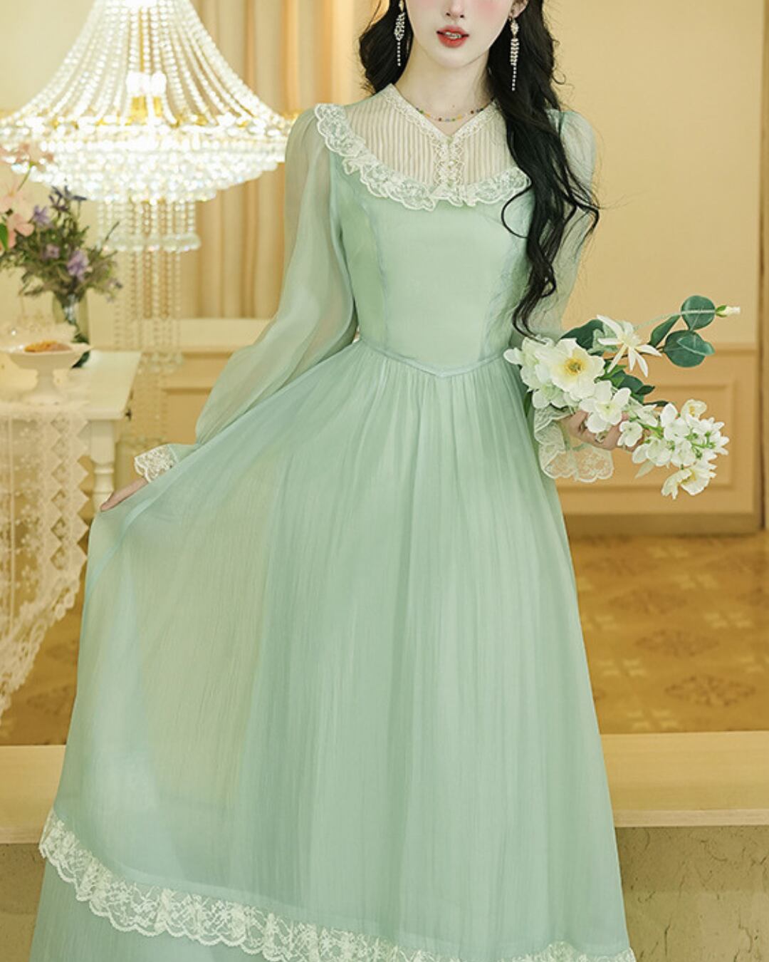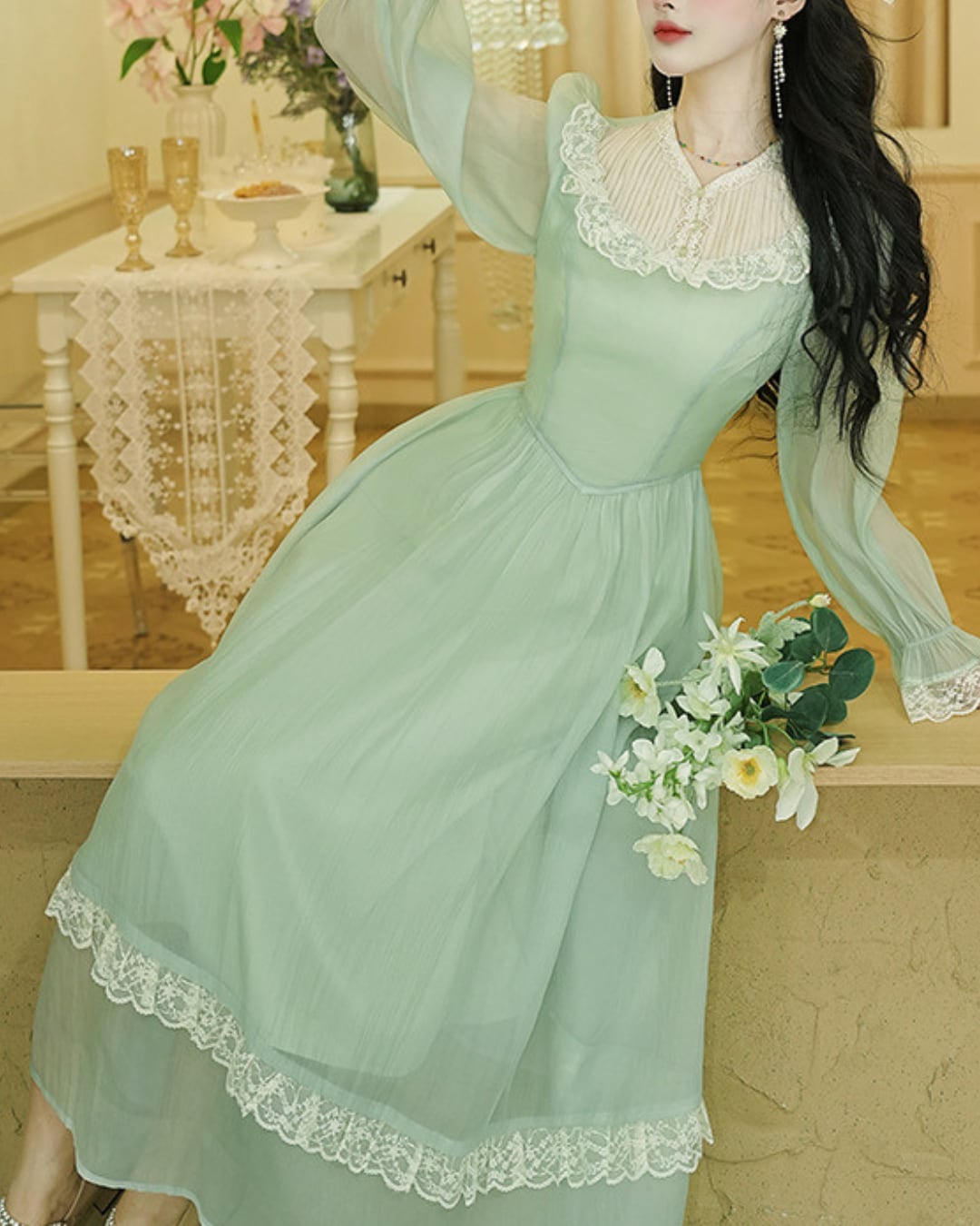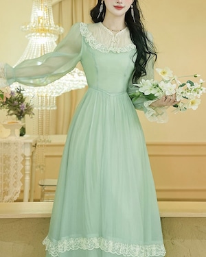 ミントグリーンにレースをあしらった上品なロングワンピース♡