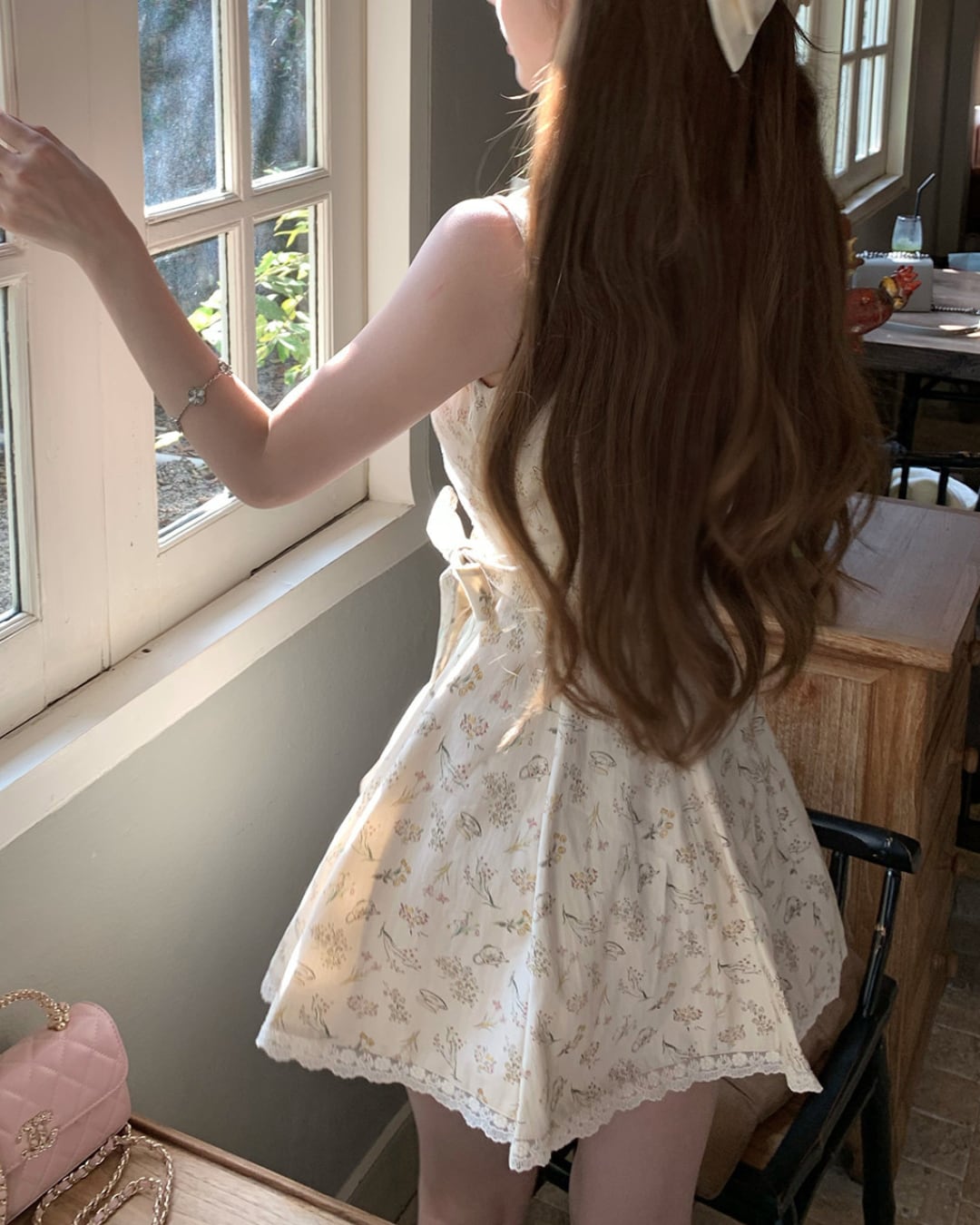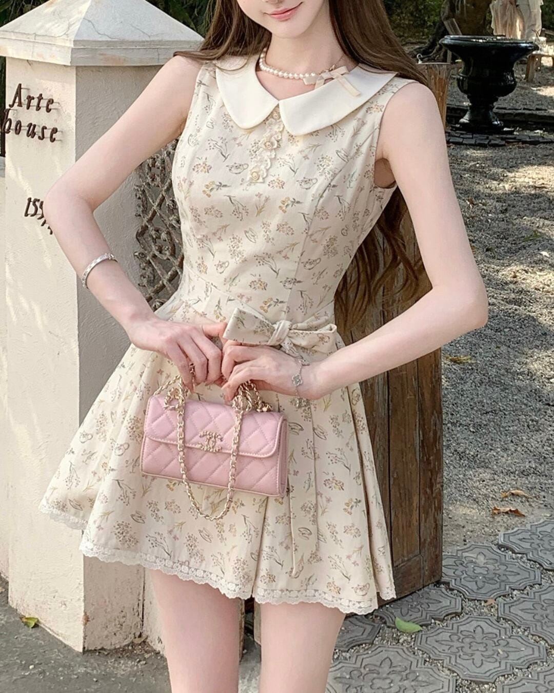 小花柄を散りばめたやさしい雰囲気のワンピース♡