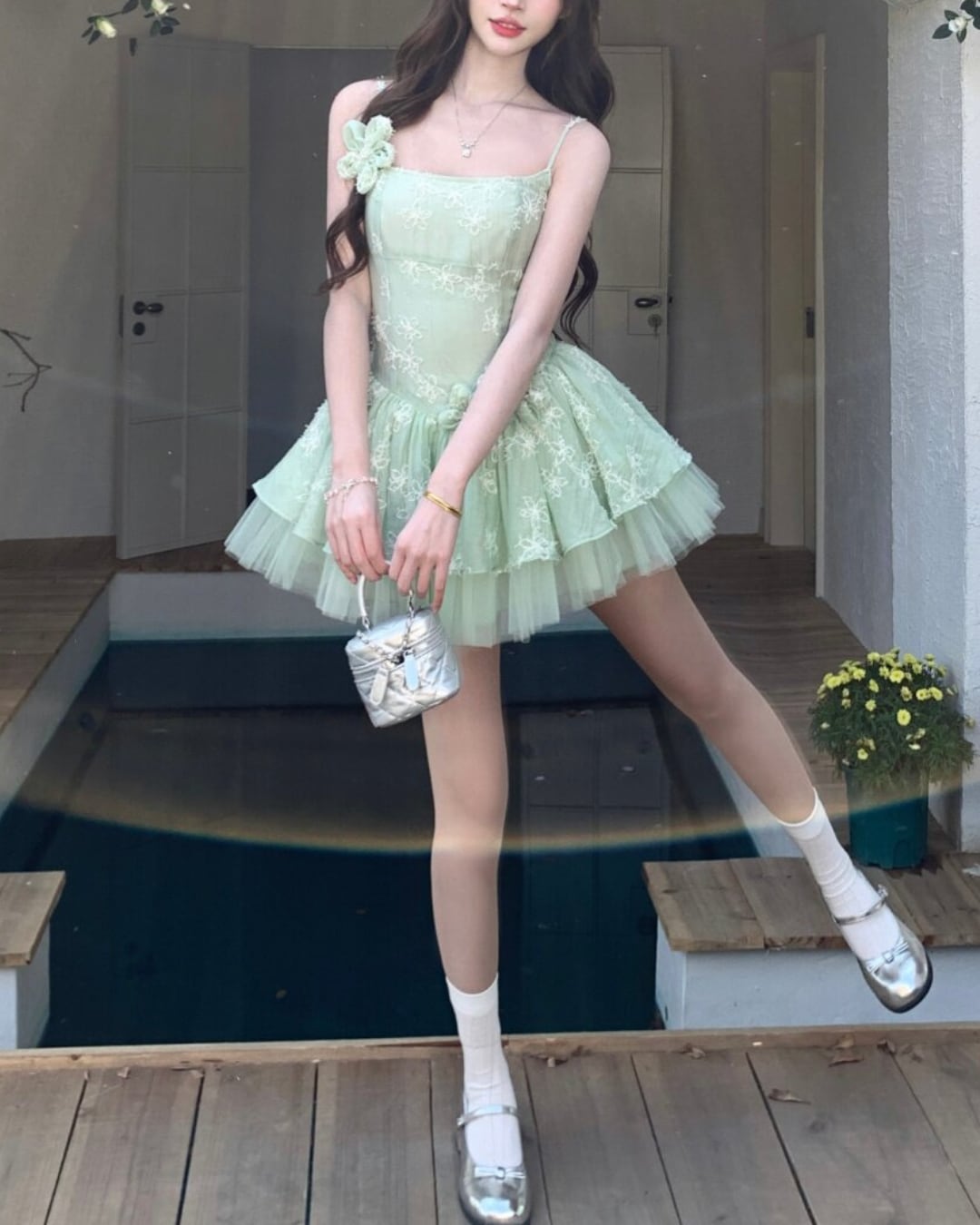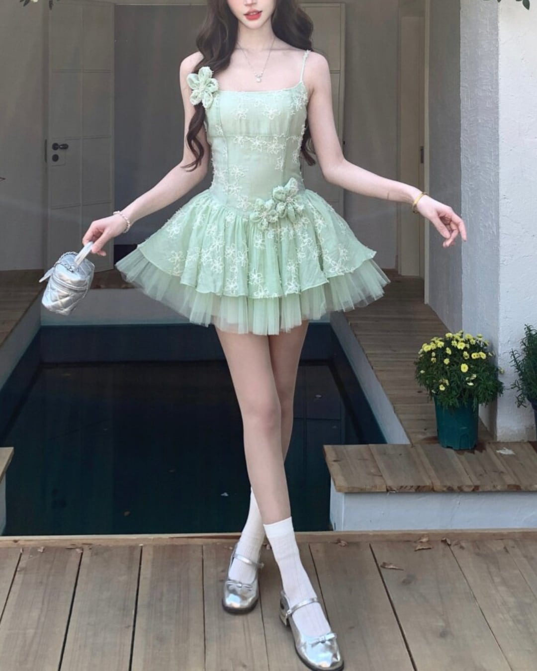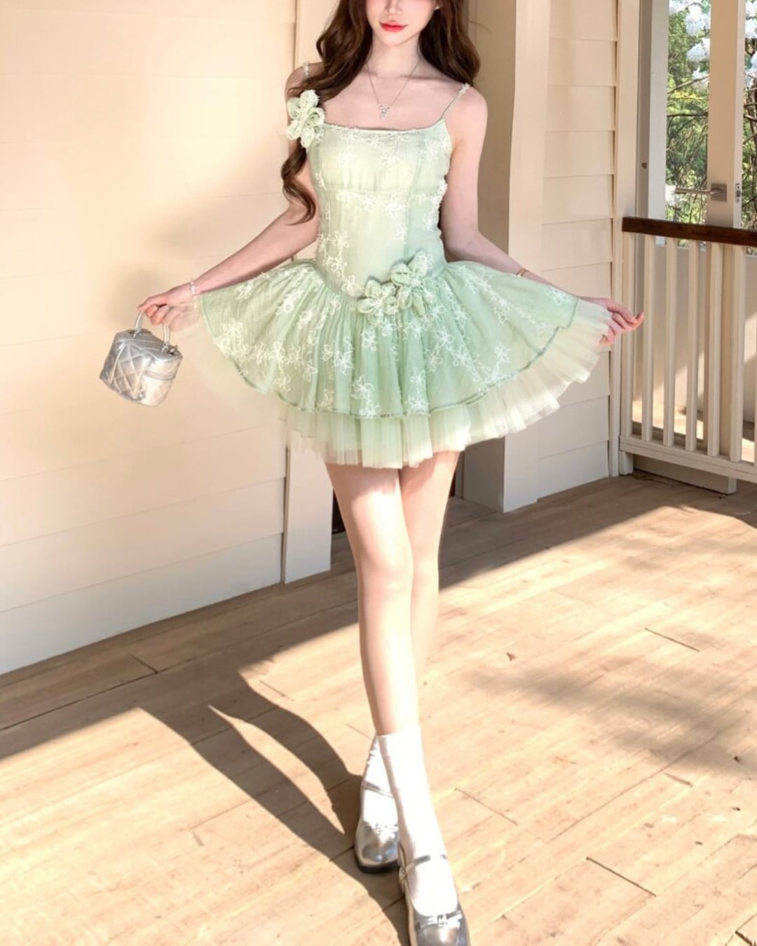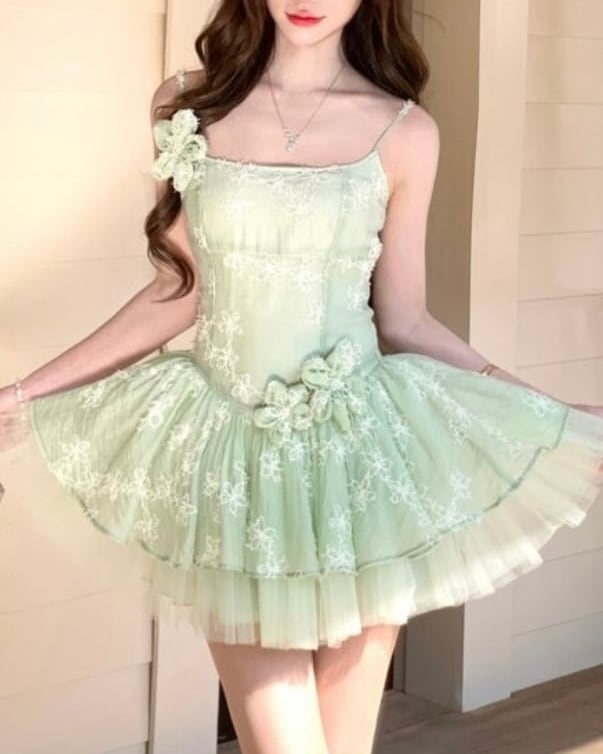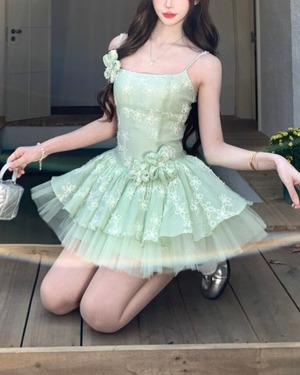 フェアリーチュチュグリーンフラワーワンピース 25W08486