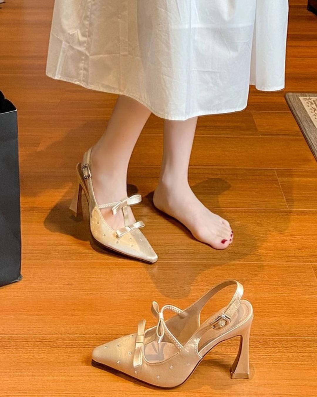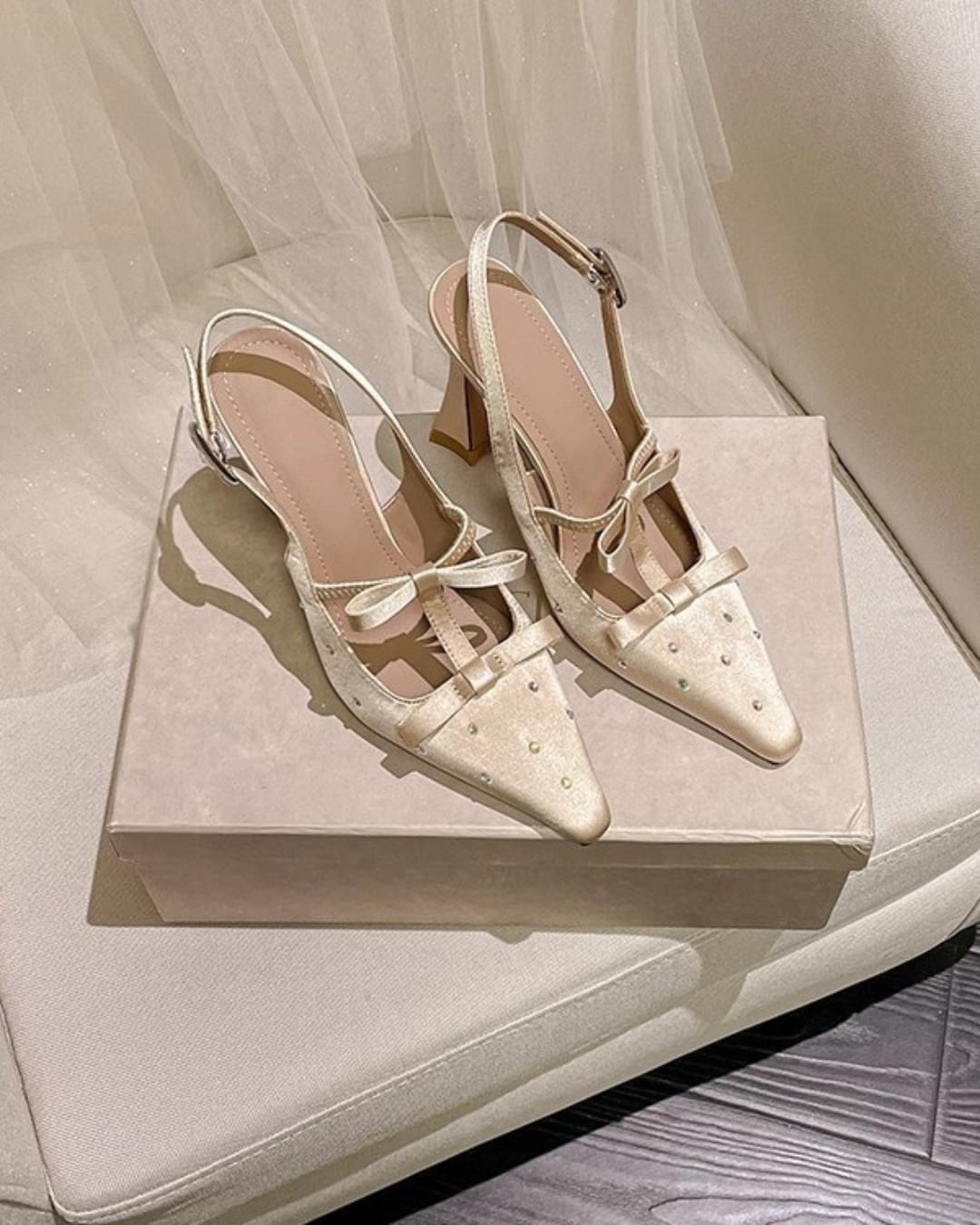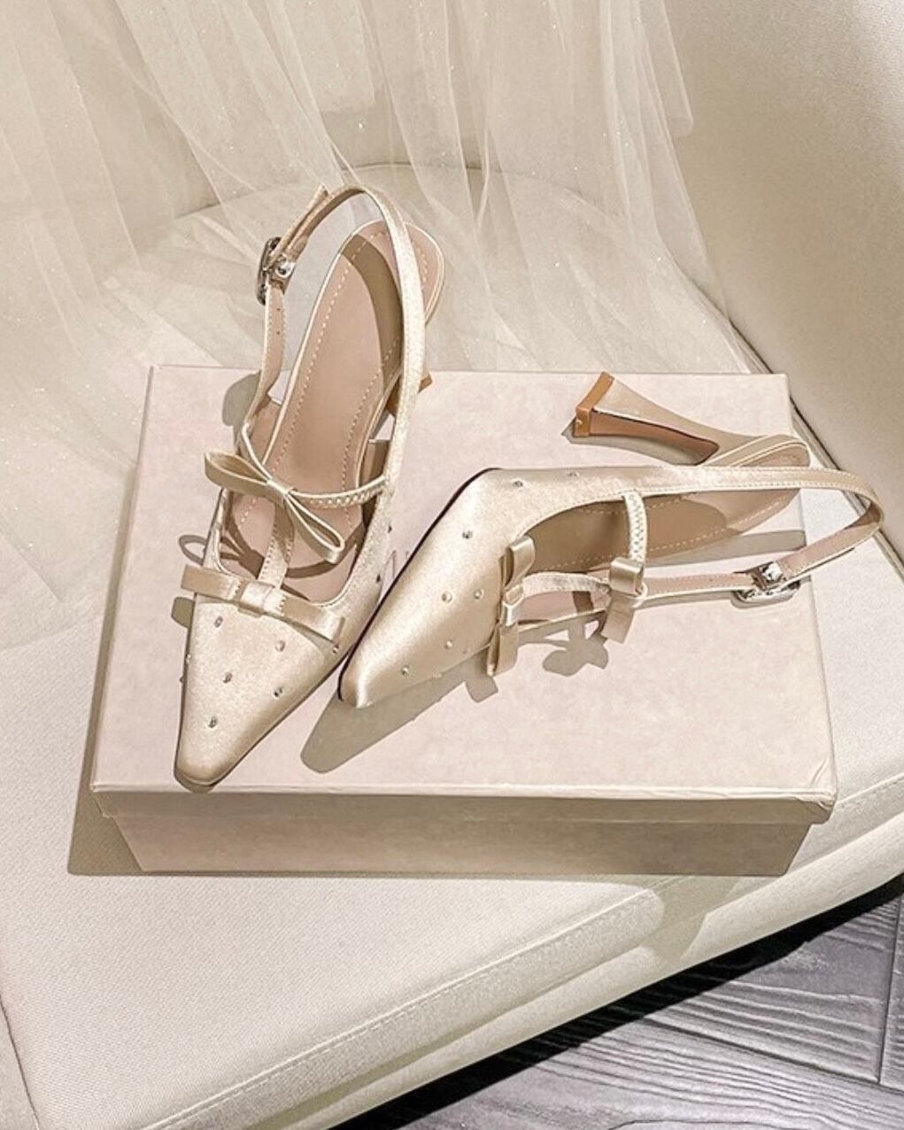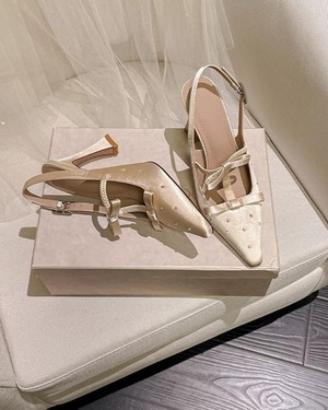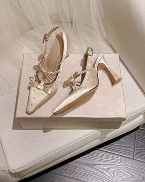 ダブルリボンサテンヒールパンプス 2508491