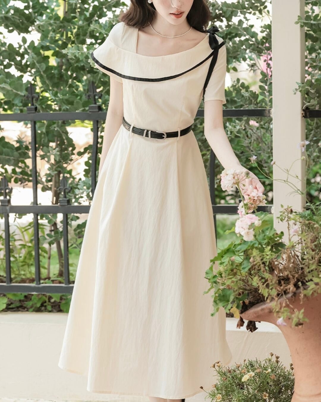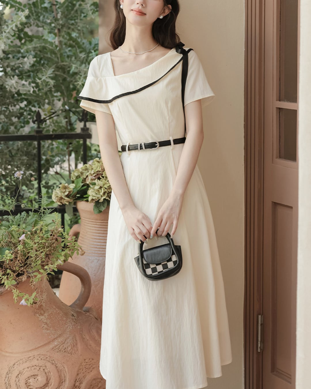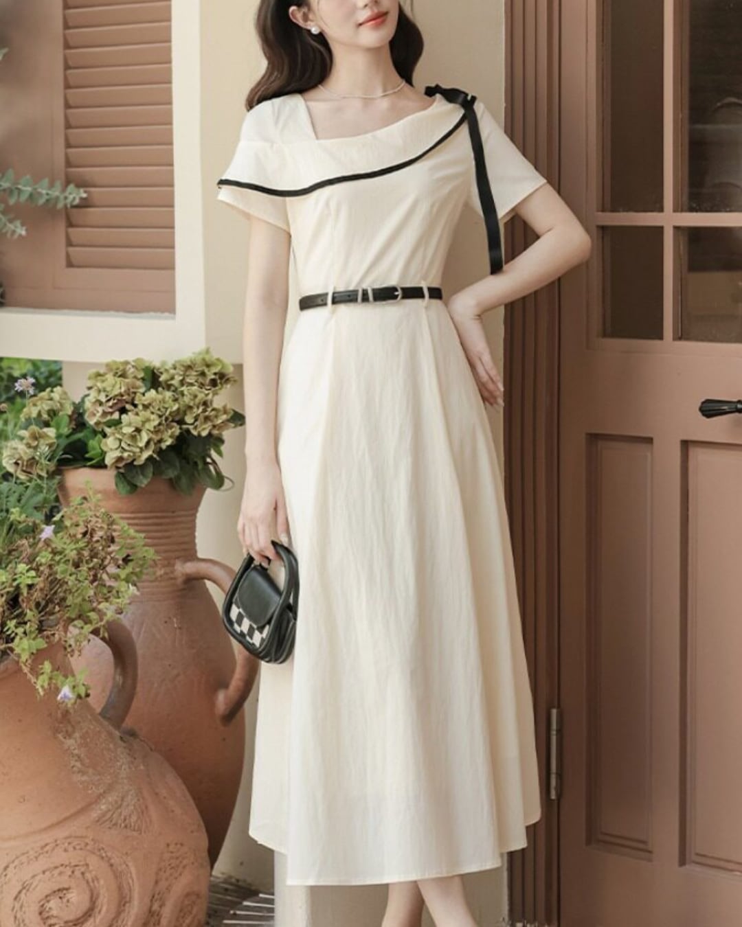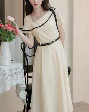 片側にあるショルダーリボンがアクセントのワンピース♡
