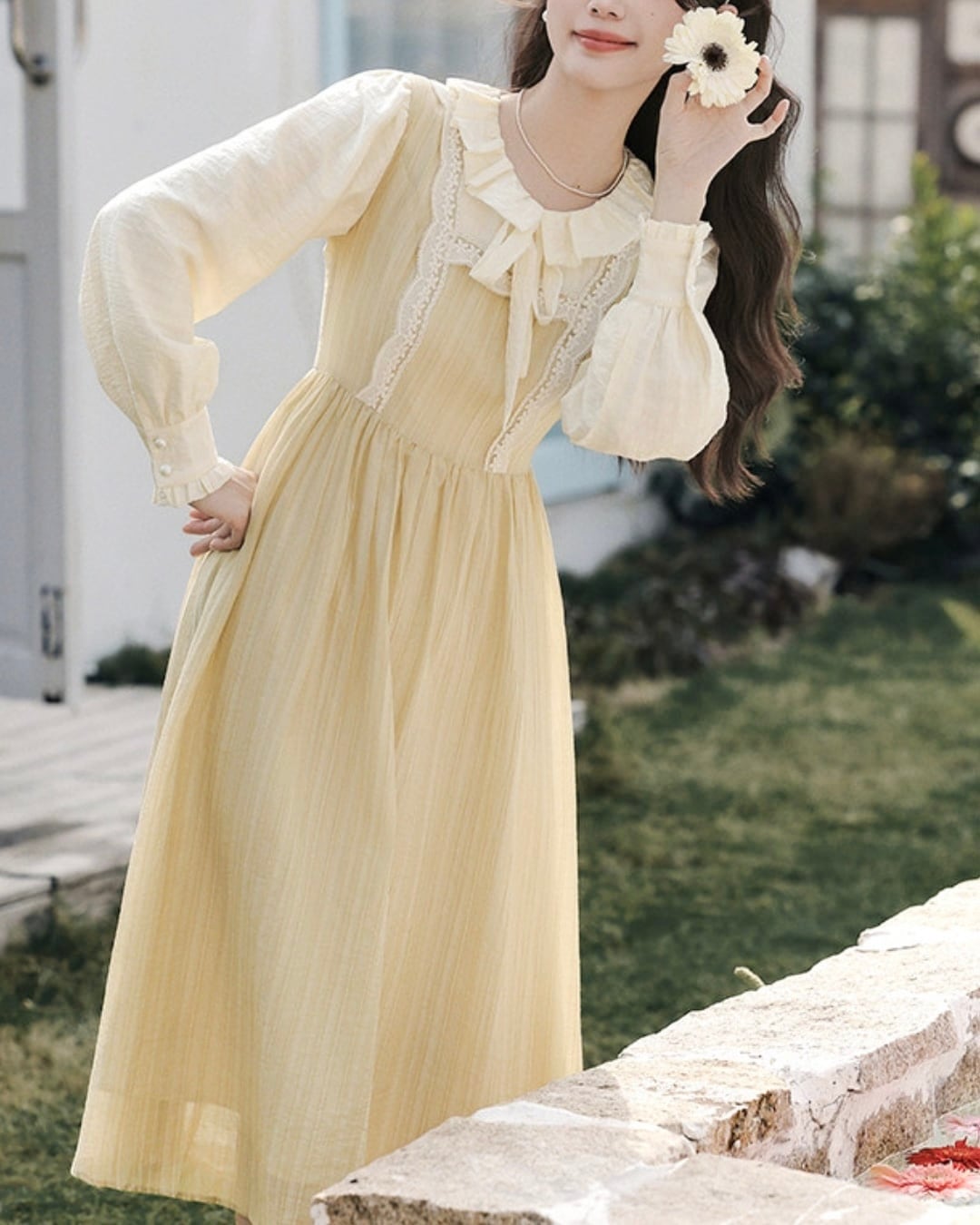 フレンチレースフリルネックワンピース 2508495