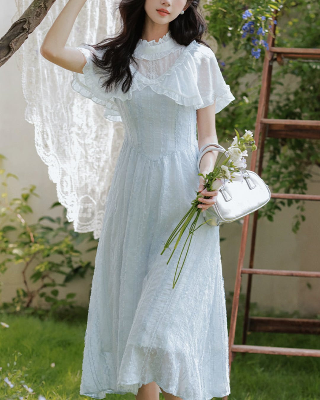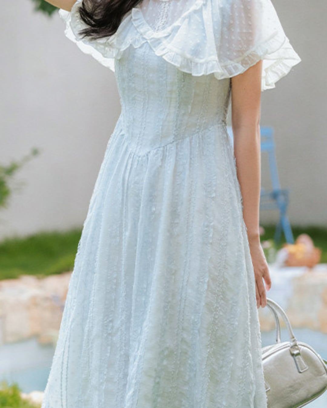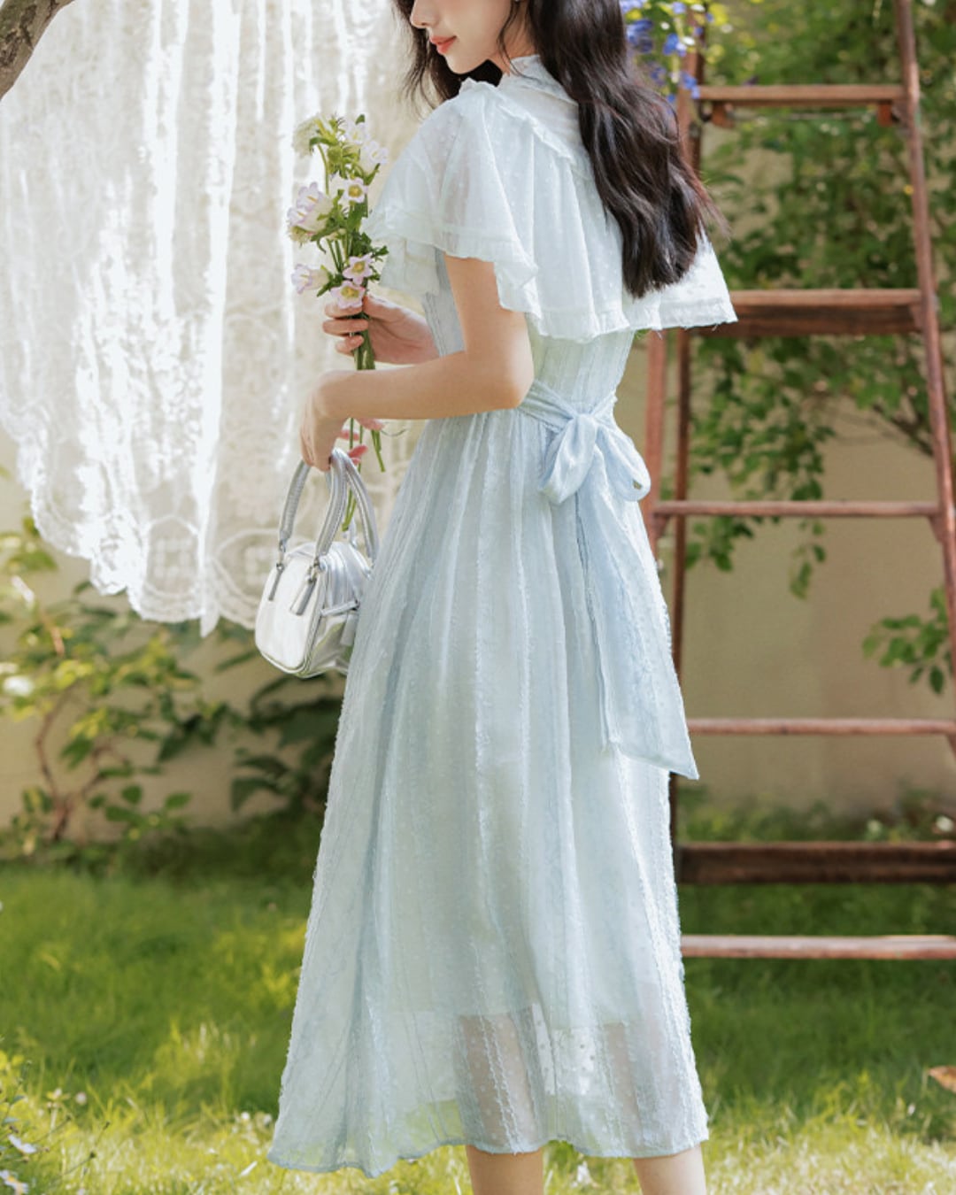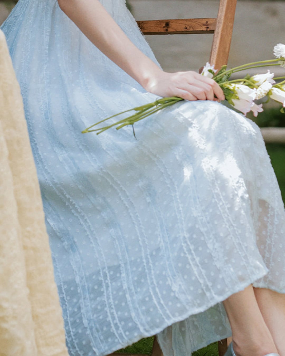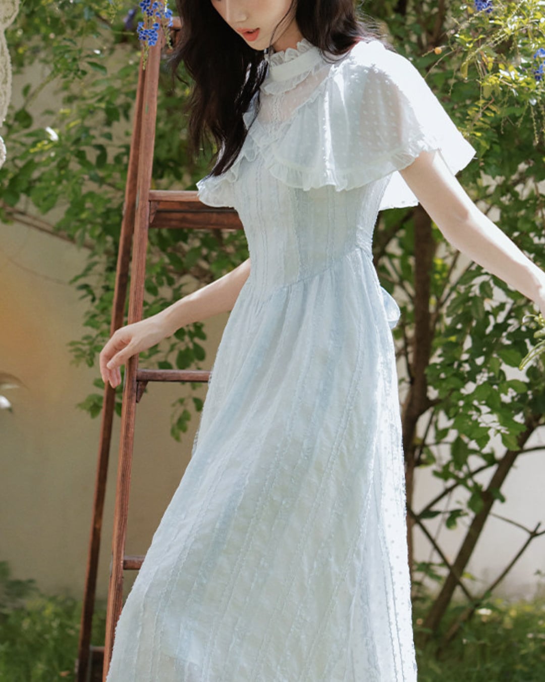 軽やかな雰囲気と爽やかなブルーが春夏の装いにぴったりな一着です*.゜