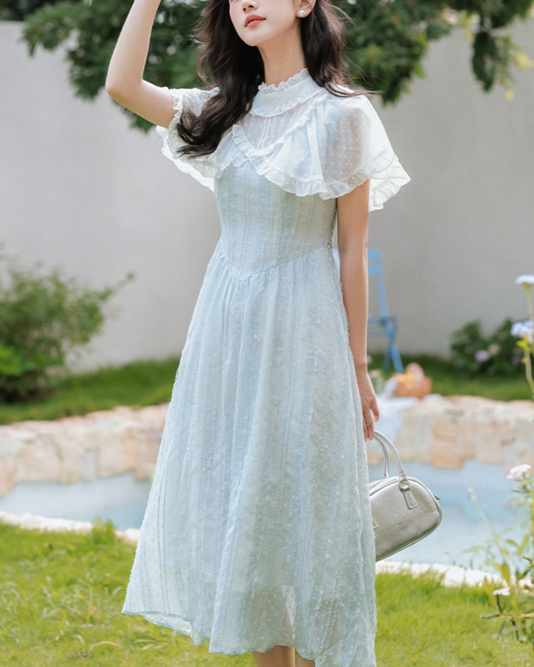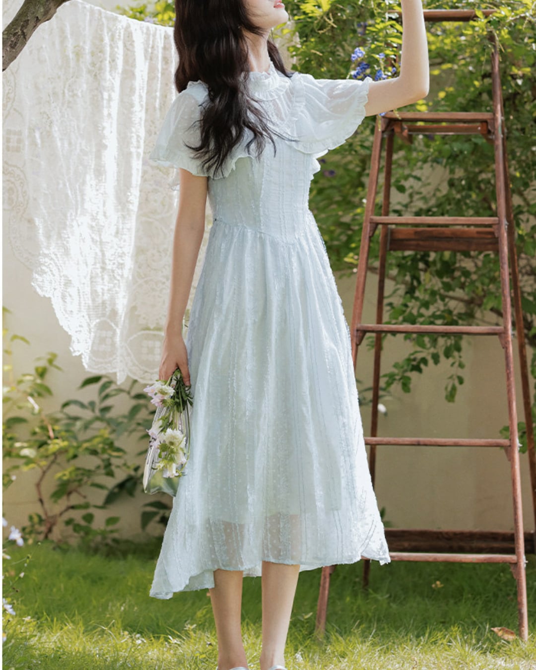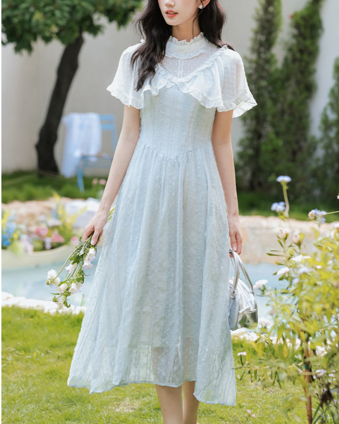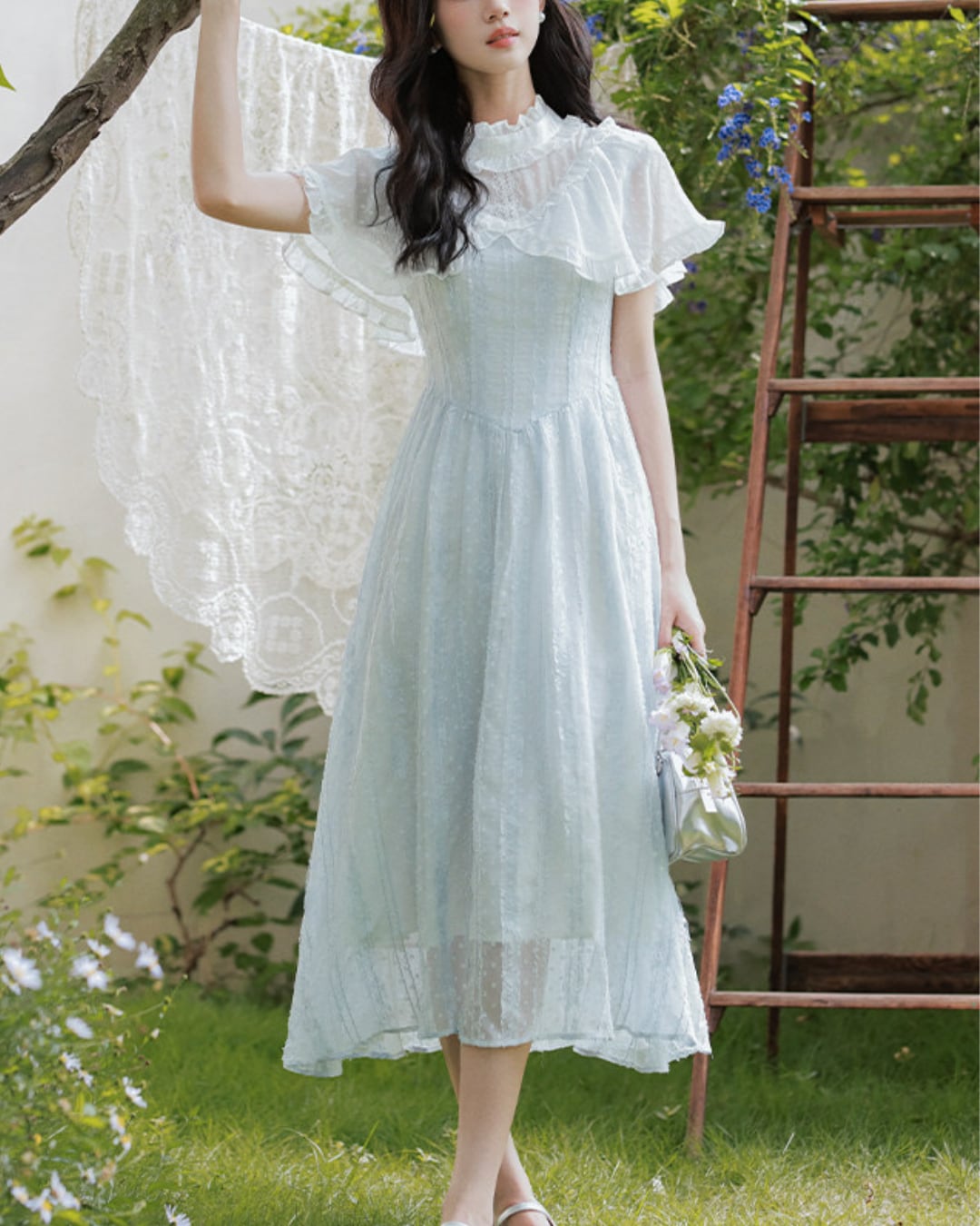 軽やかな雰囲気と爽やかなブルーが春夏の装いにぴったりな一着です*.゜