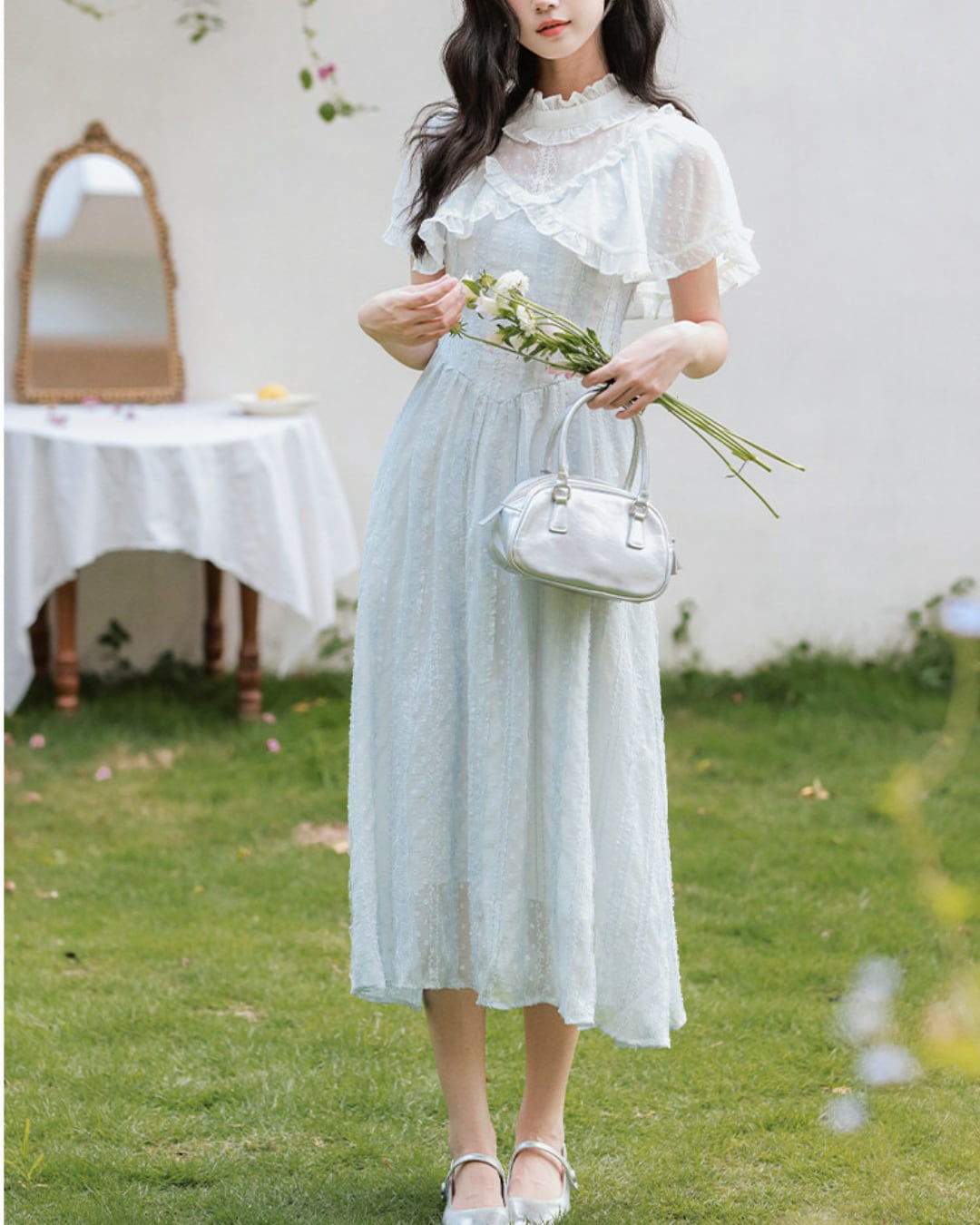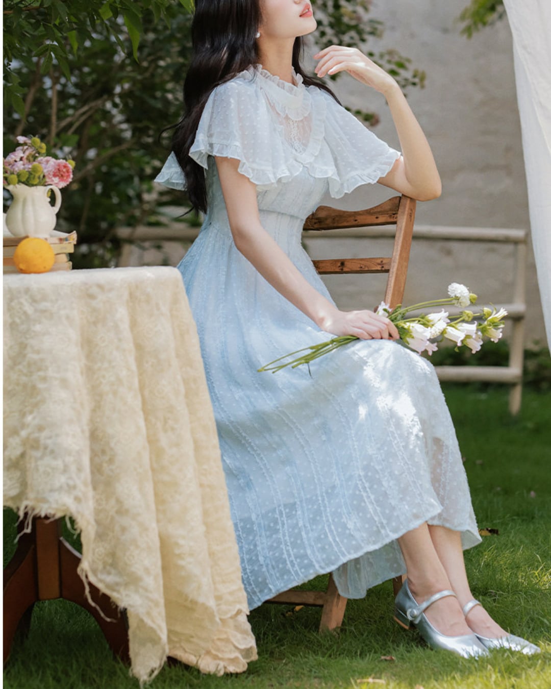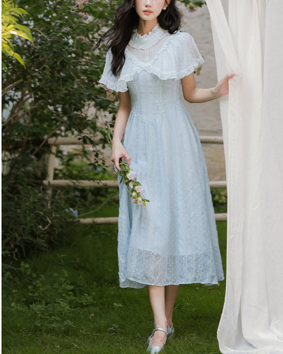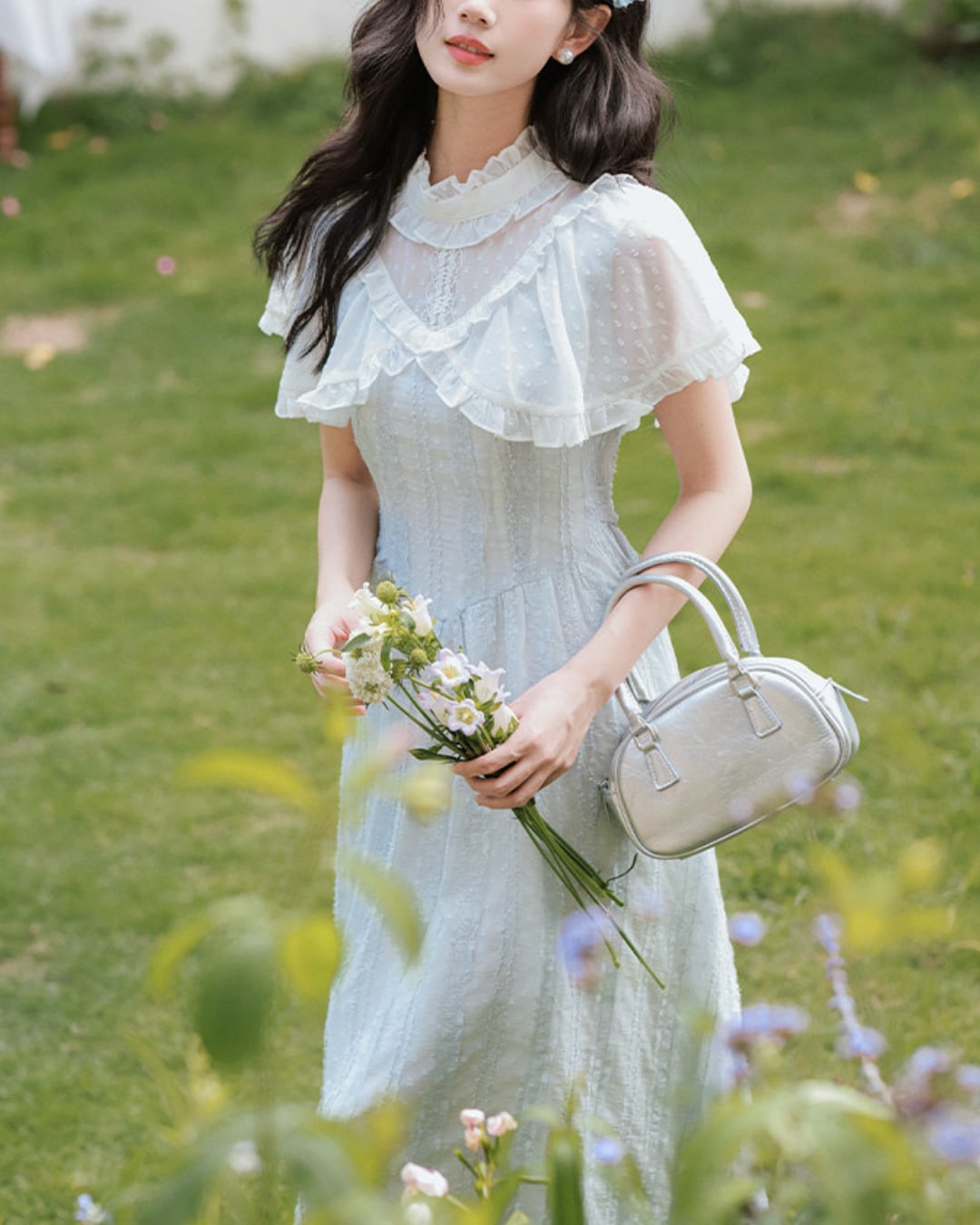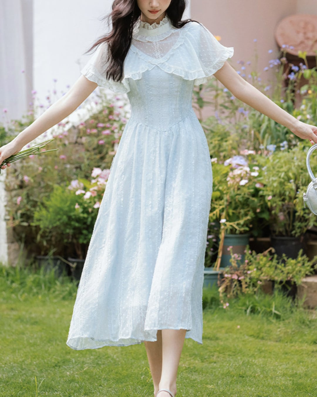 軽やかな雰囲気と爽やかなブルーが春夏の装いにぴったりな一着です*.゜