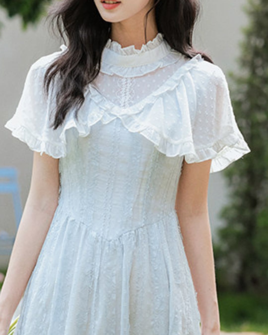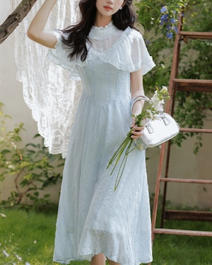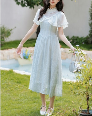シアーなケープ風フリル袖をあしらったデザインがポイントのワンピース♡