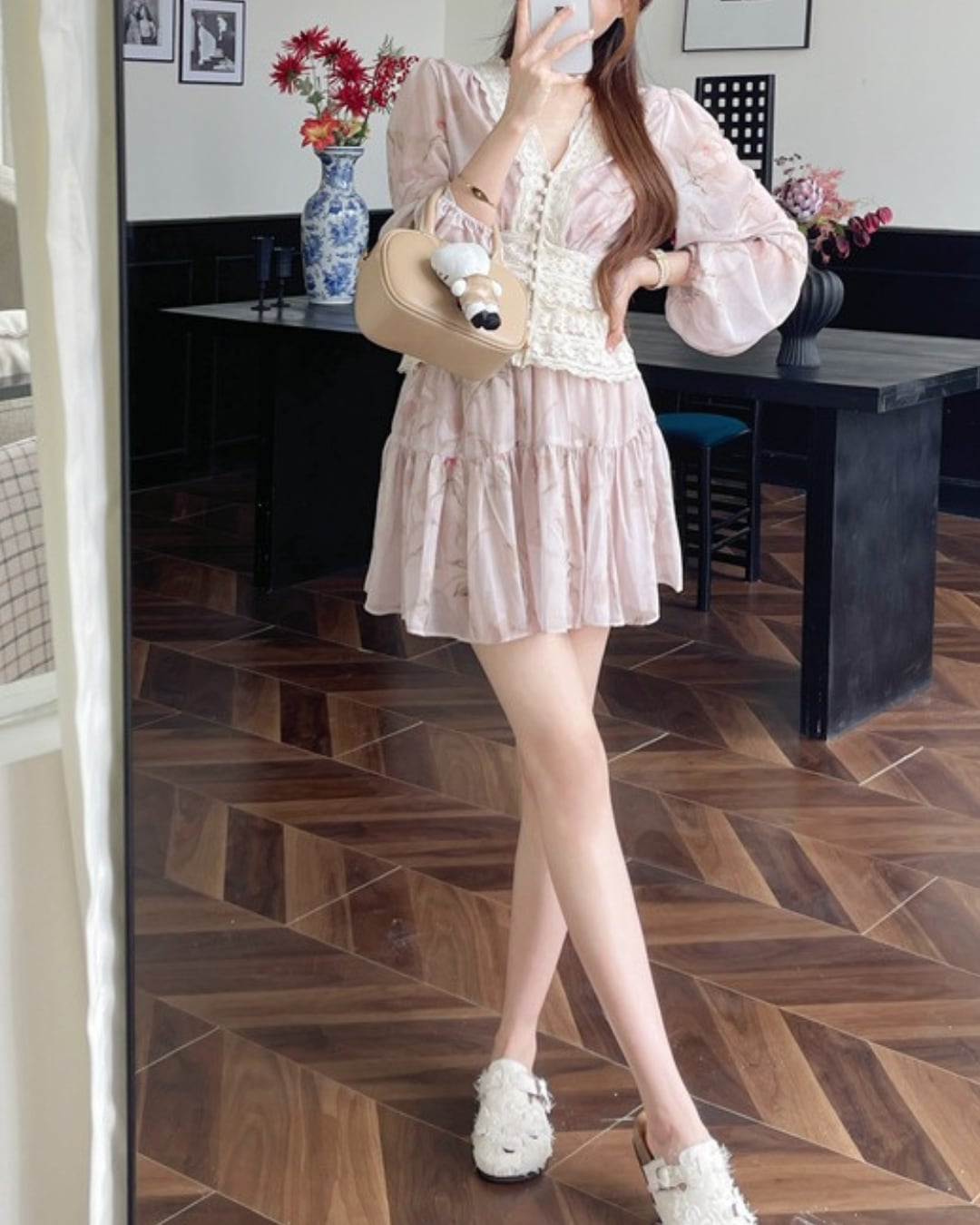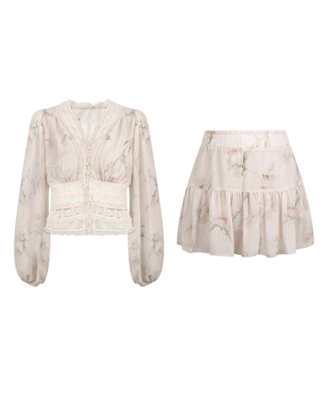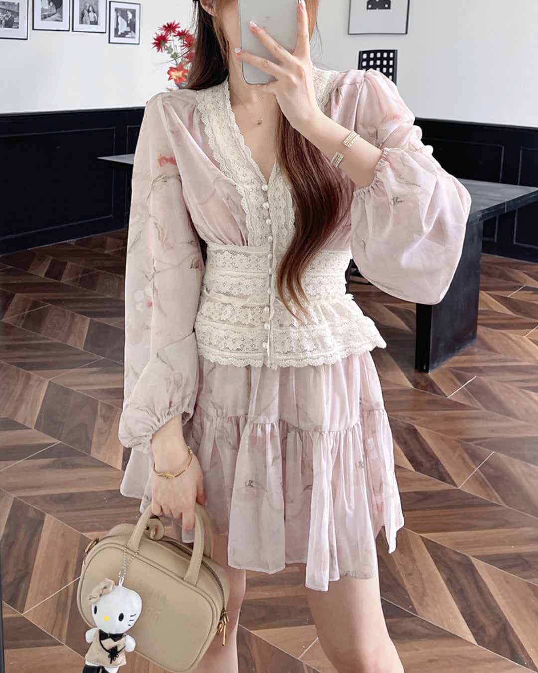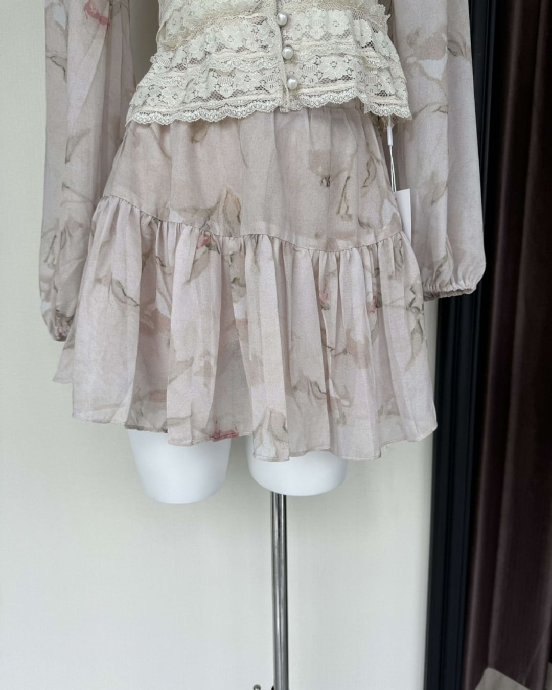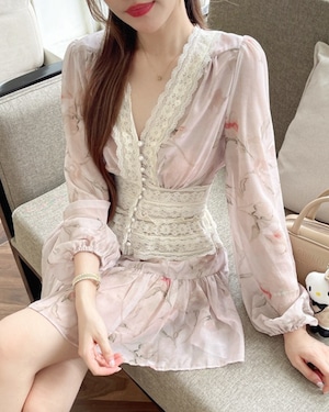 フラワー柄のシフォンにレースを上品にあしらったセットアップ♡