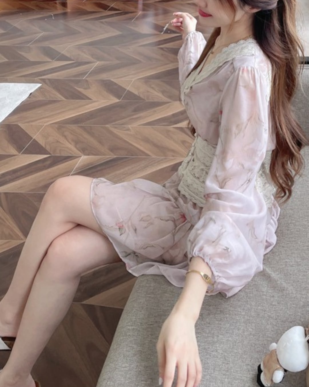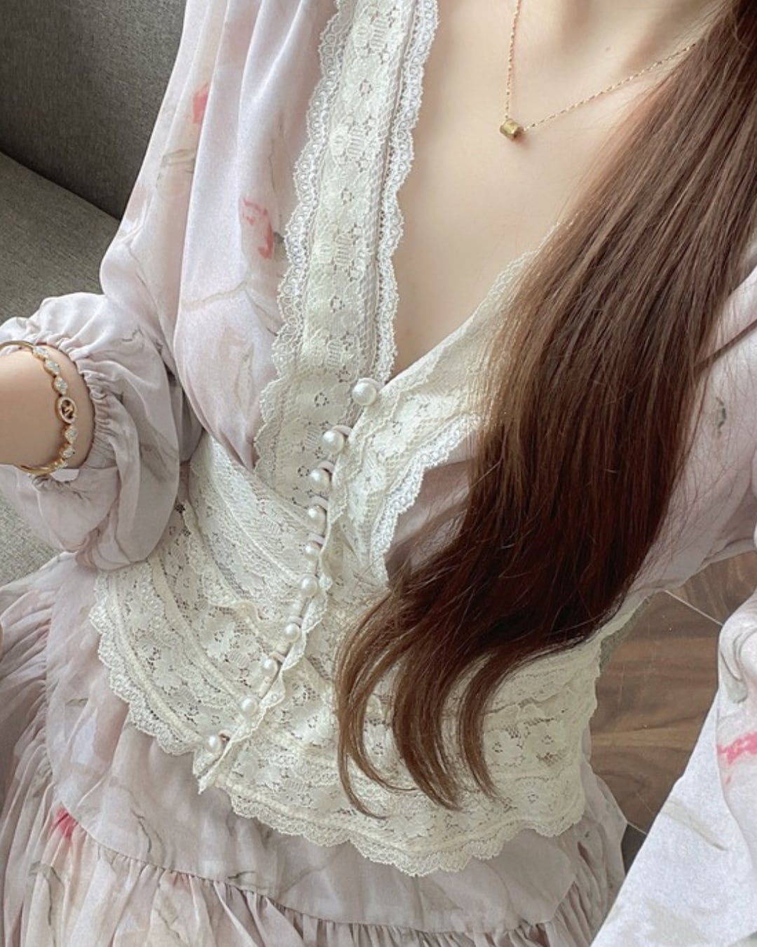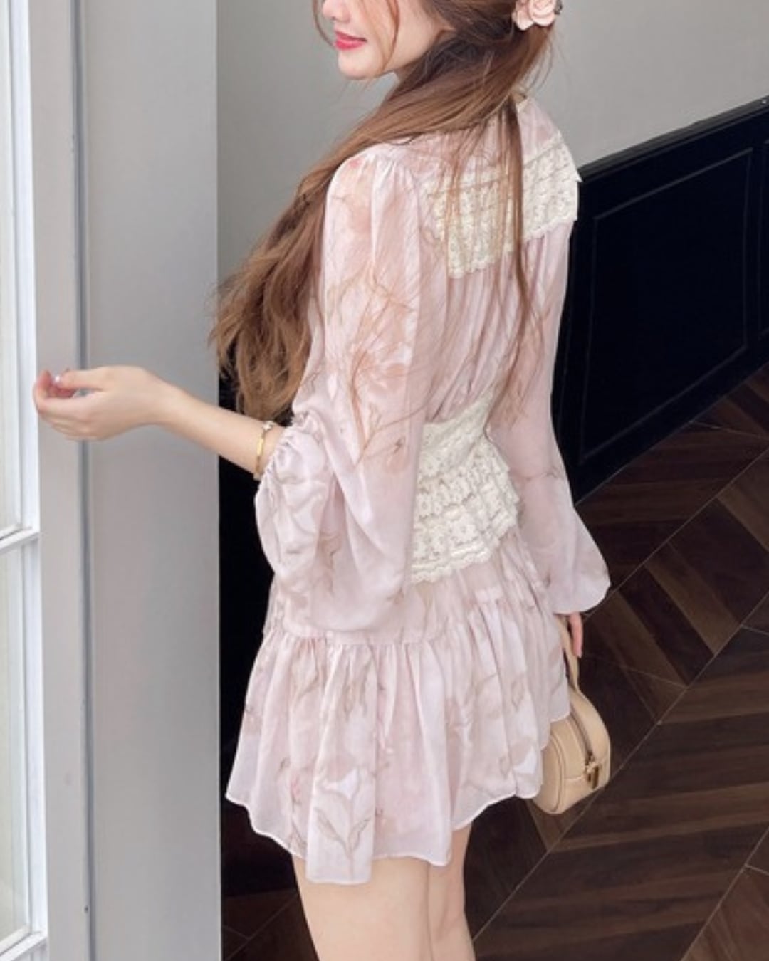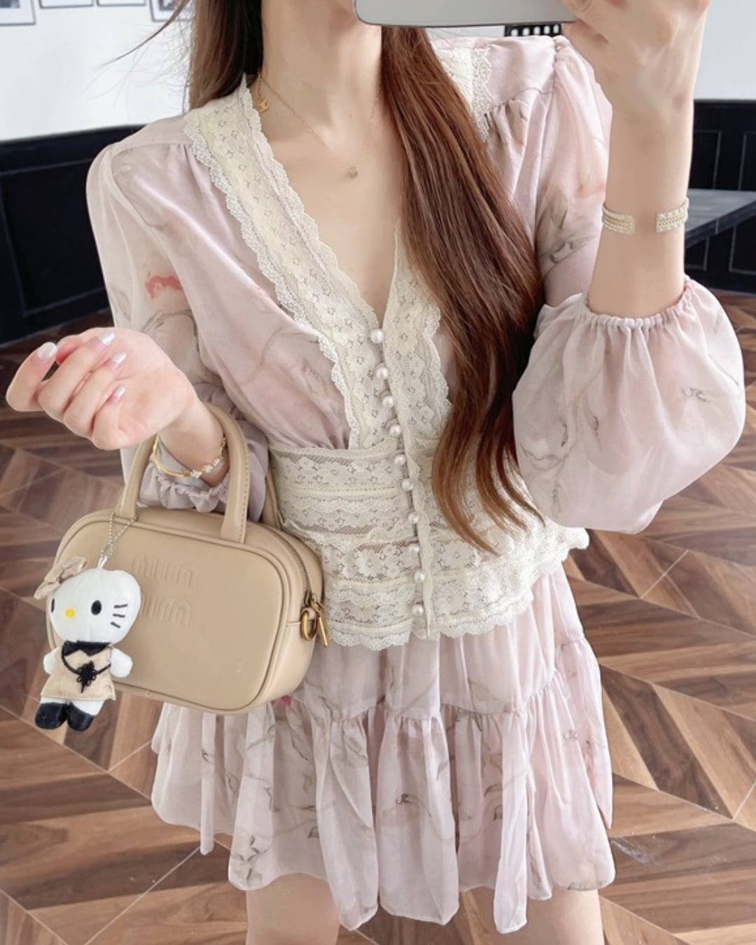 フラワー柄のシフォンにレースを上品にあしらったセットアップ♡