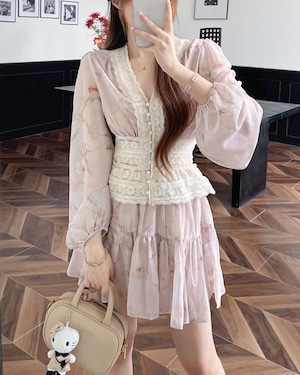 ふんわりとした袖とウエストレースが上品でガーリーな印象を演出します⑅⃛